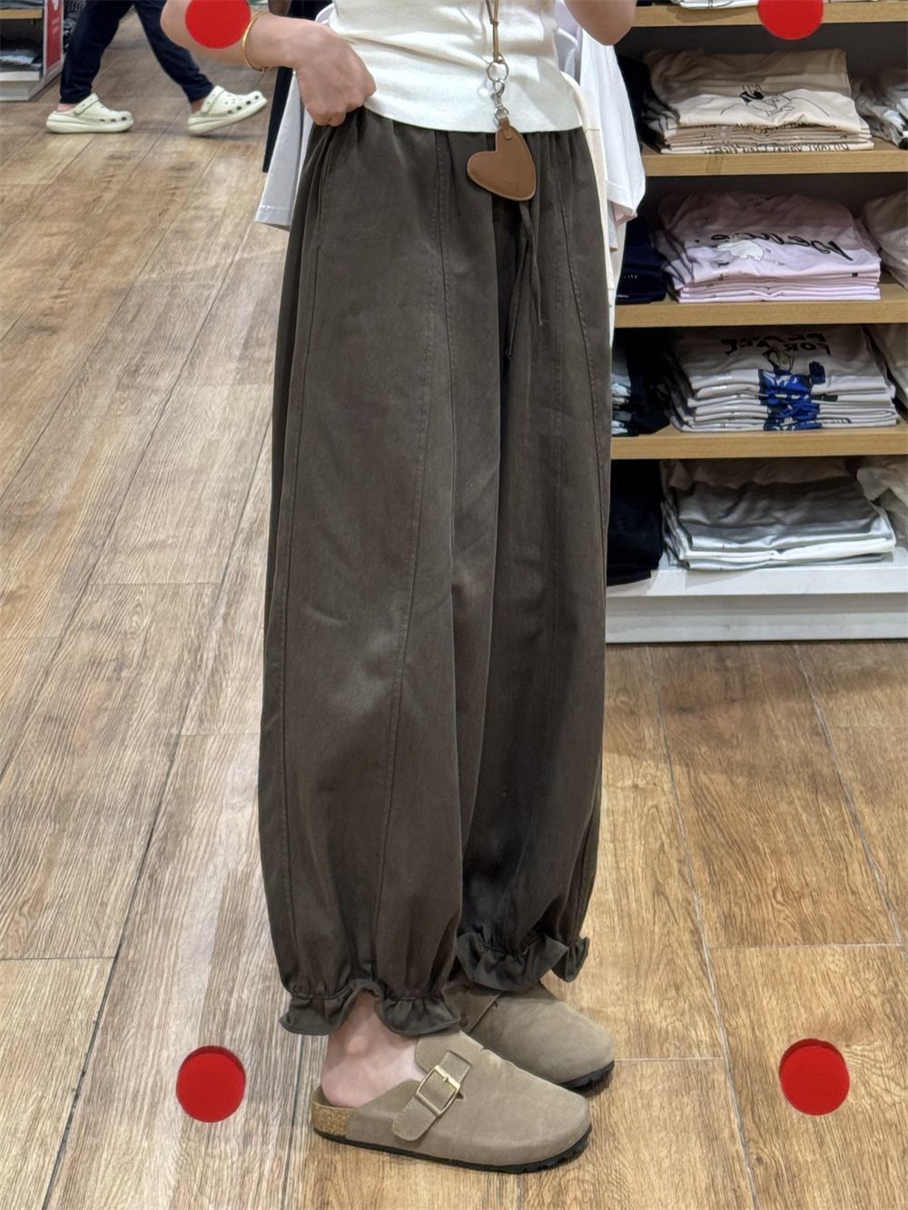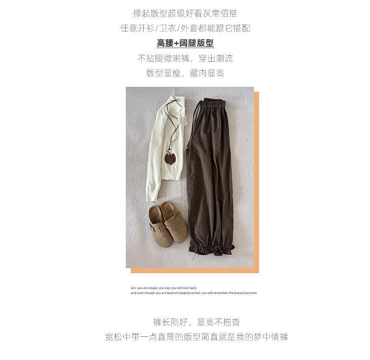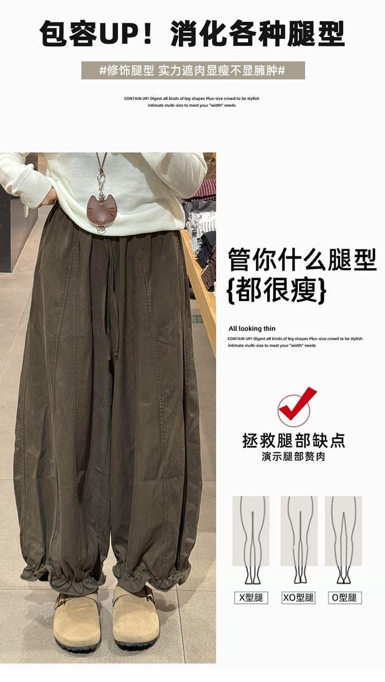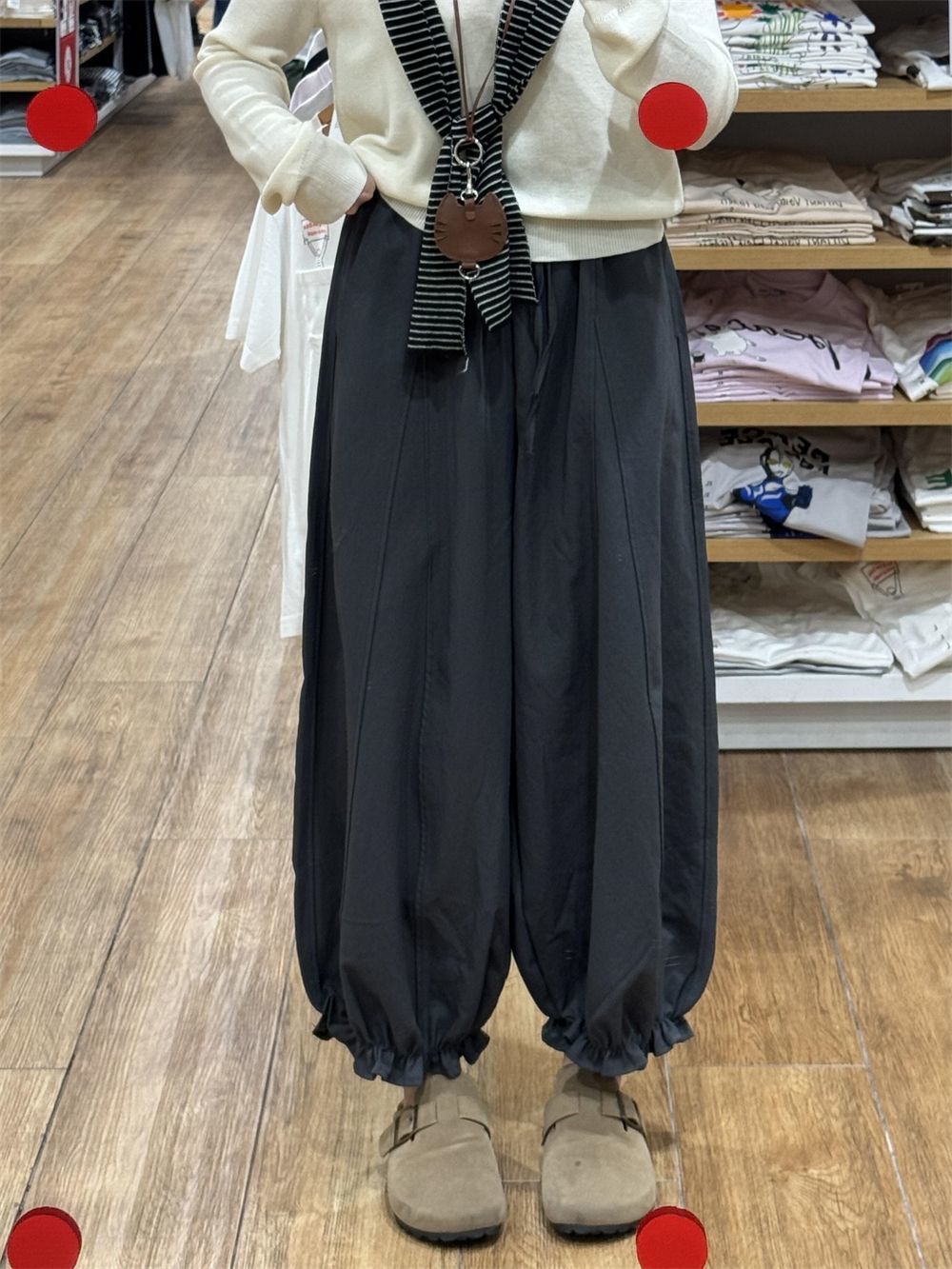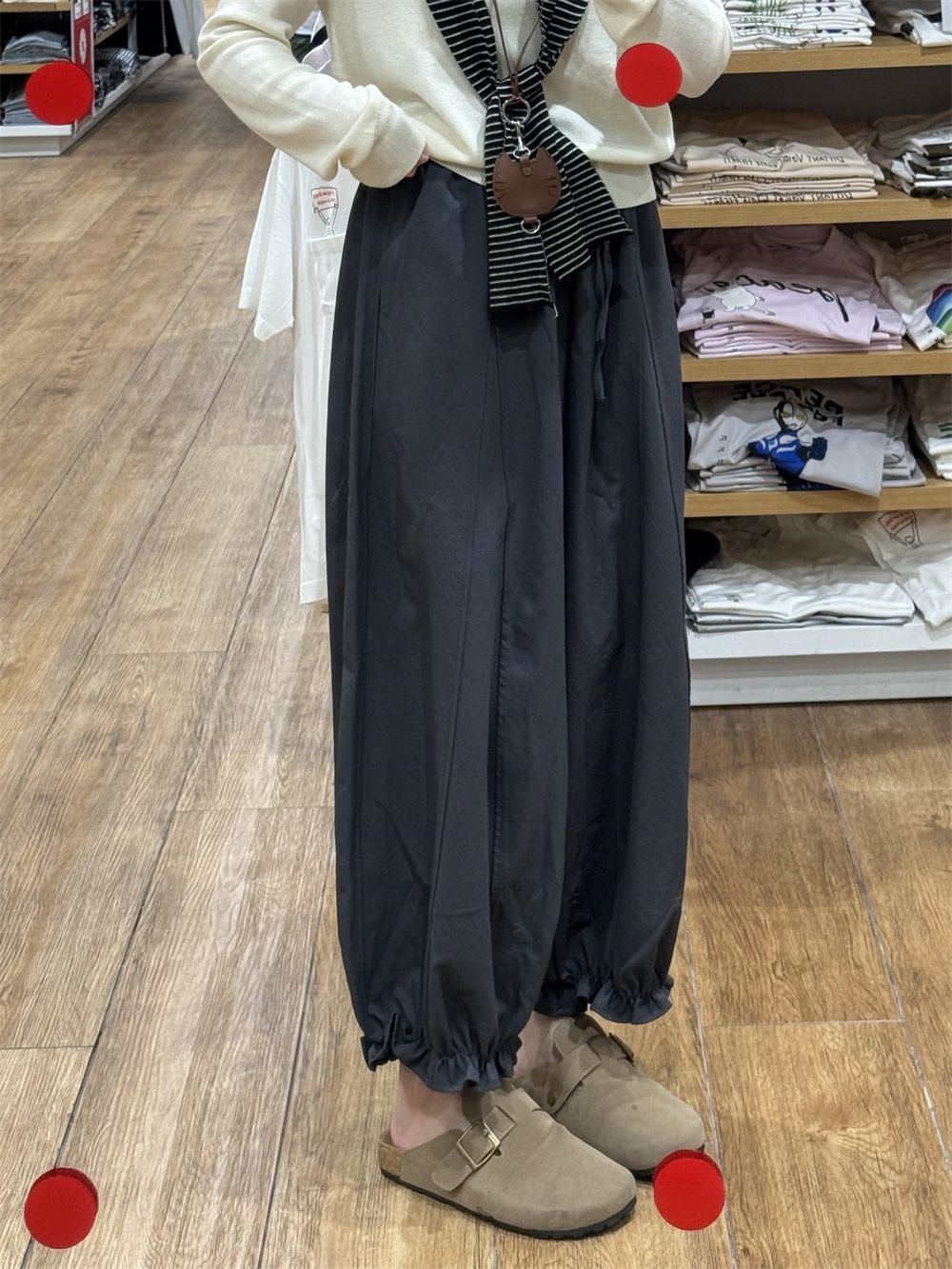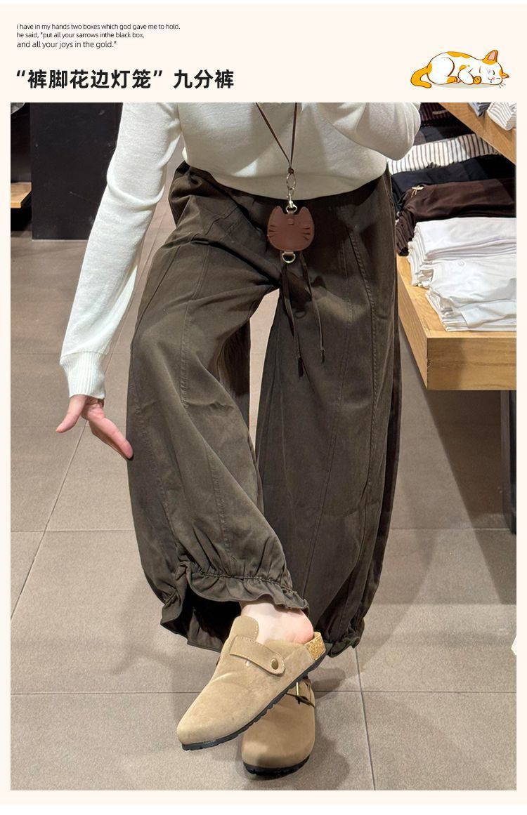 高腰花苞阔腿休闲裤女2025秋季新款显瘦小个子休闲宽松九分灯笼裤