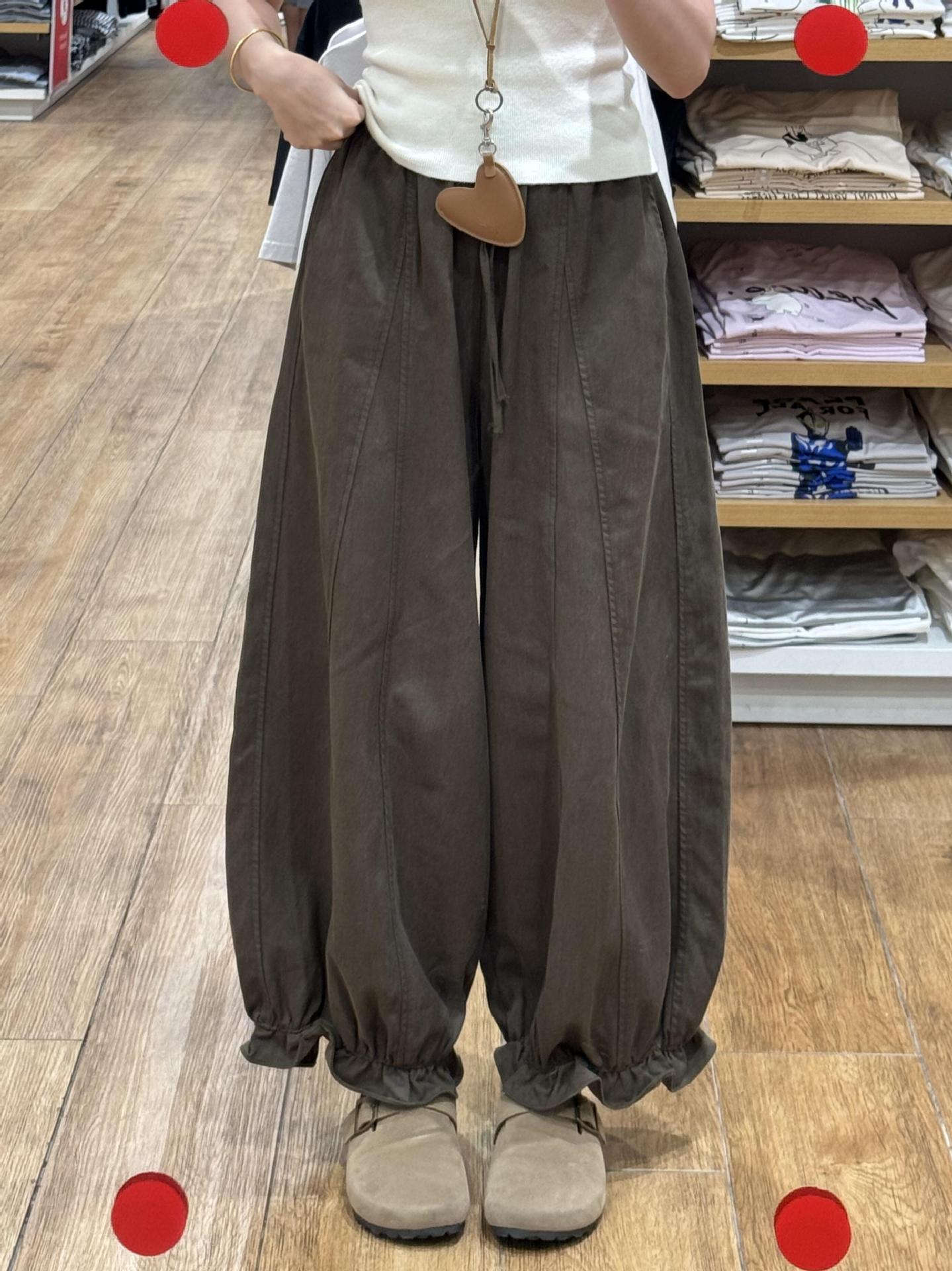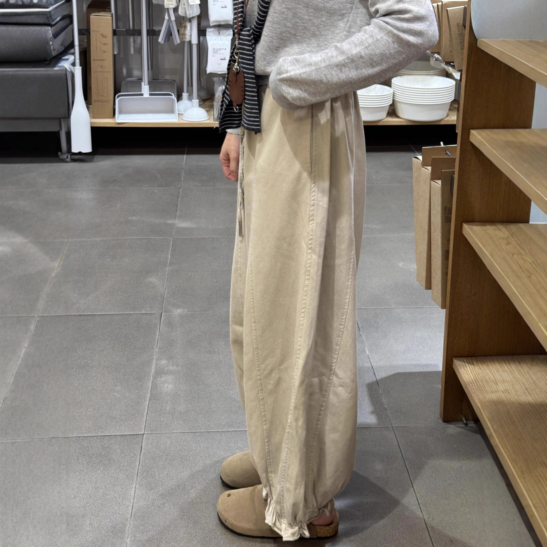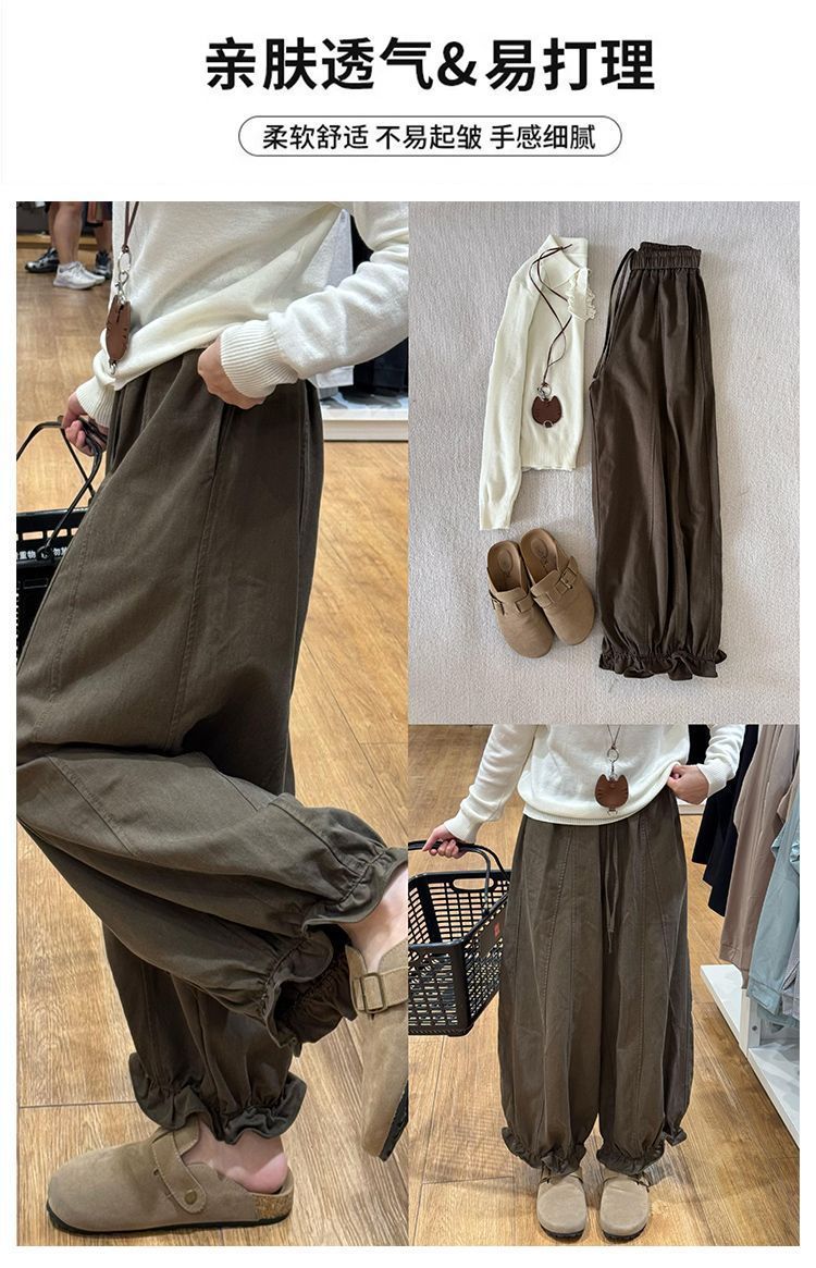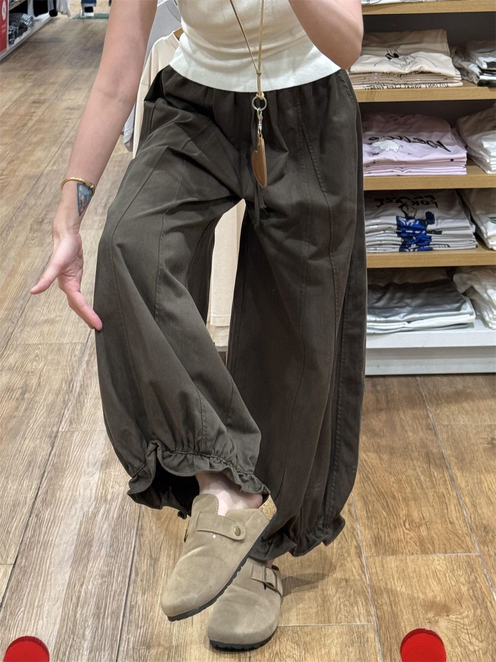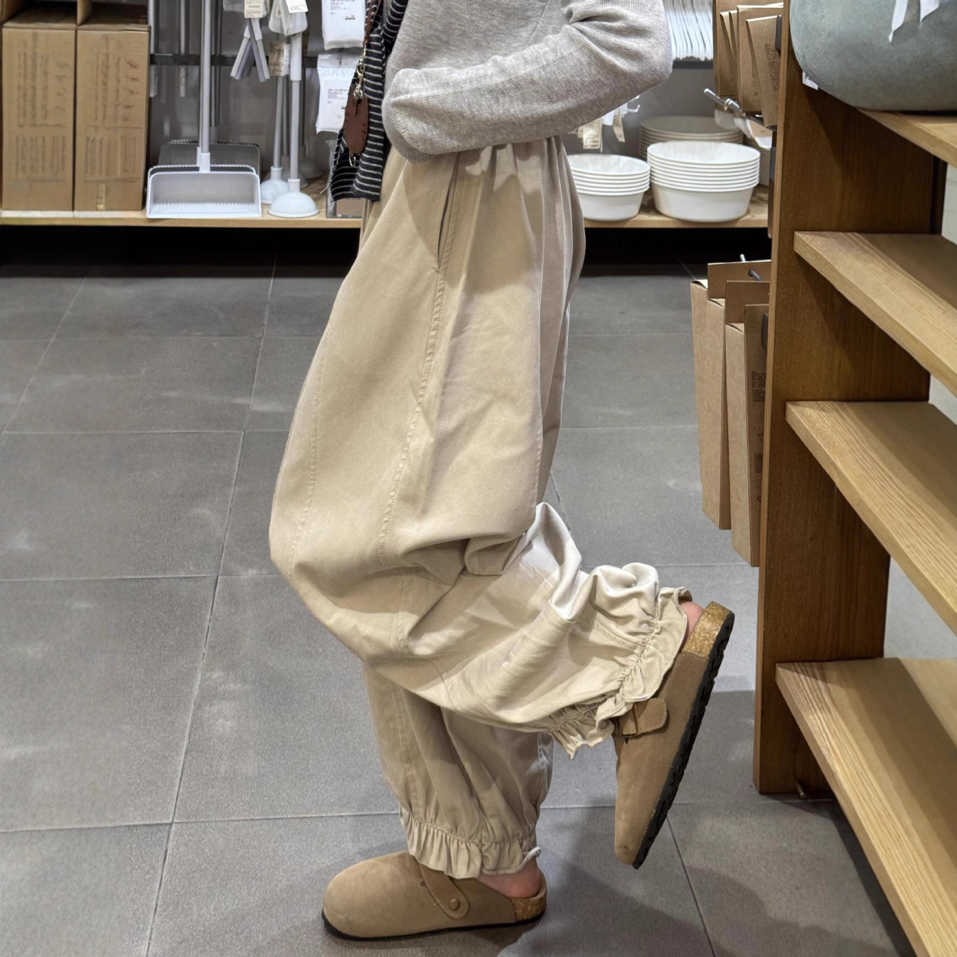 高腰花苞阔腿休闲裤女2025秋季新款显瘦小个子休闲宽松九分灯笼裤