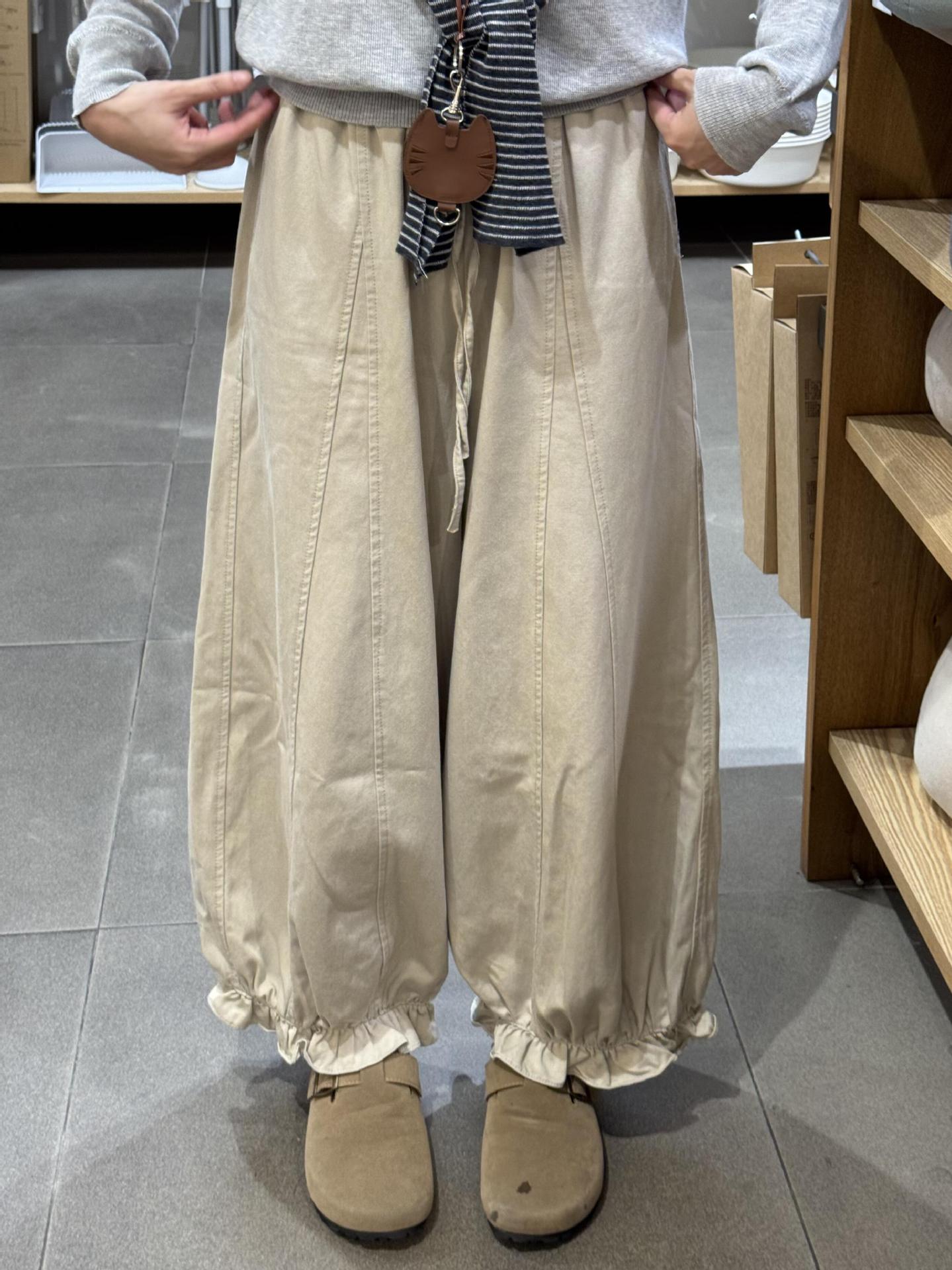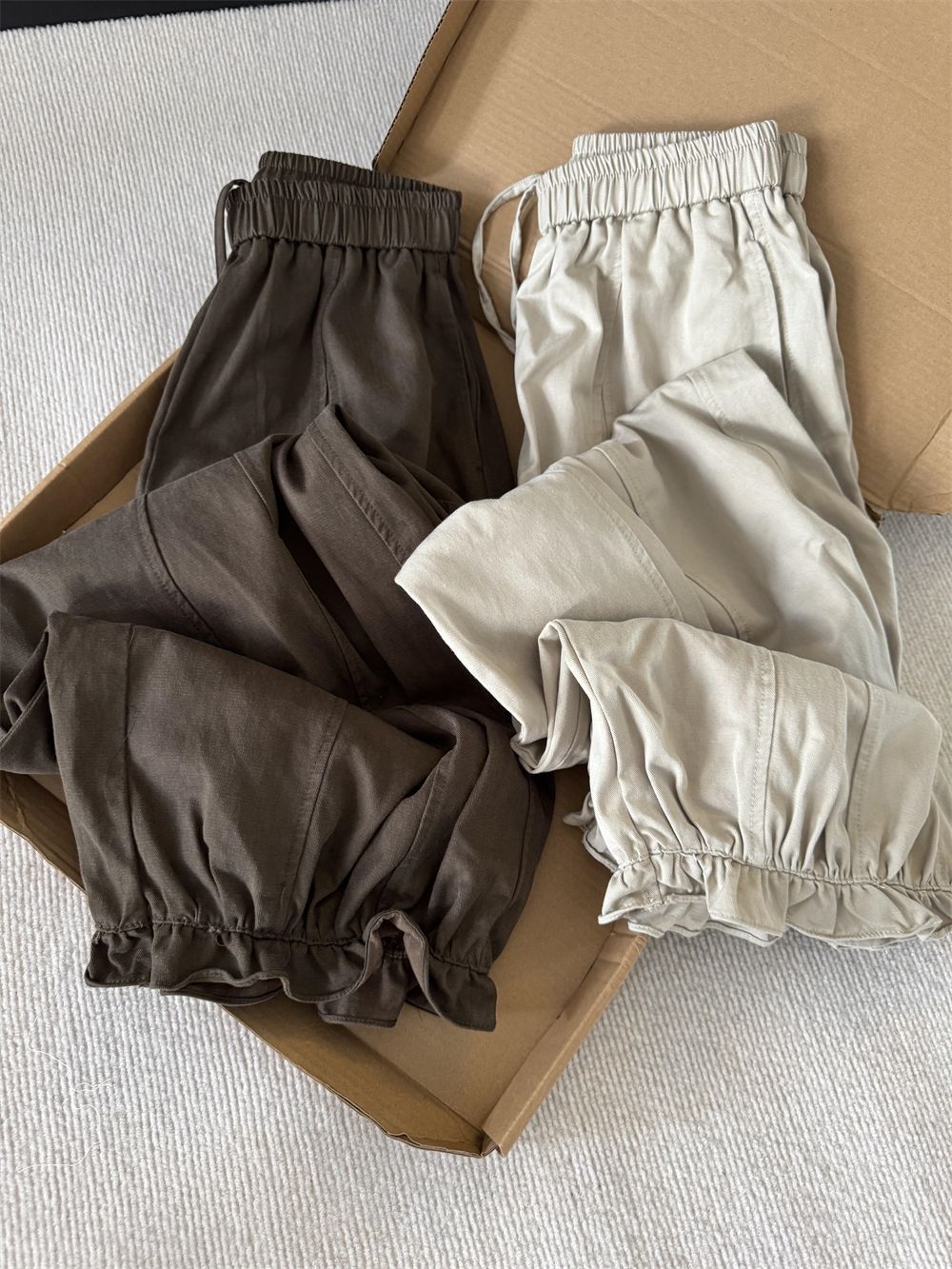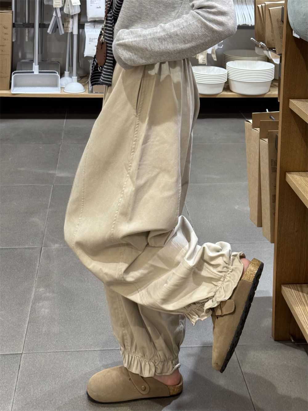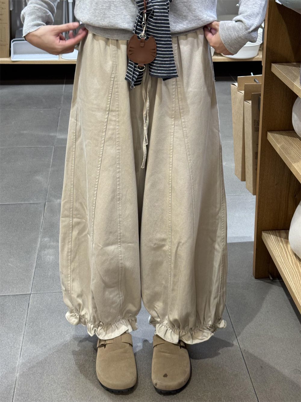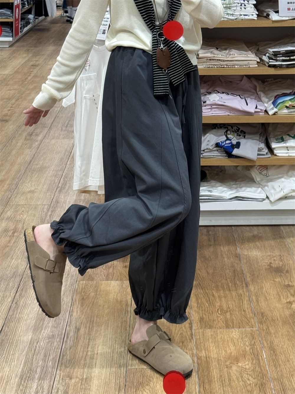高腰花苞阔腿休闲裤女2025秋季新款显瘦小个子休闲宽松九分灯笼裤
