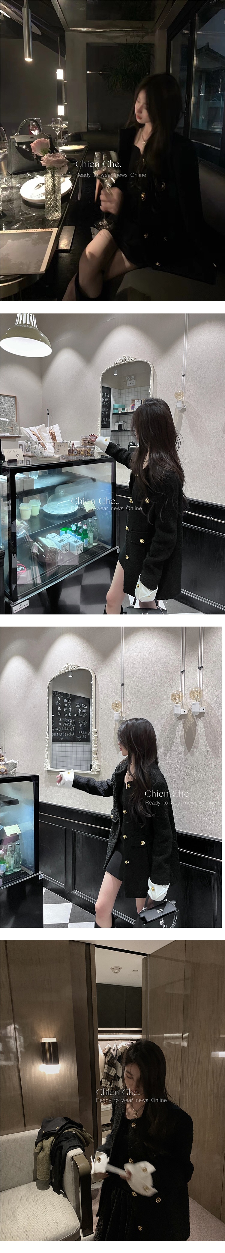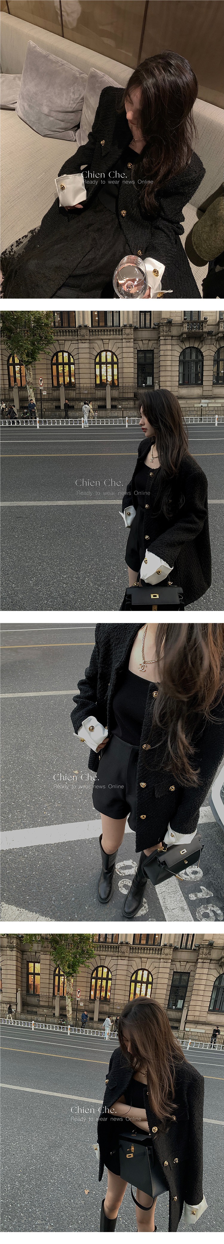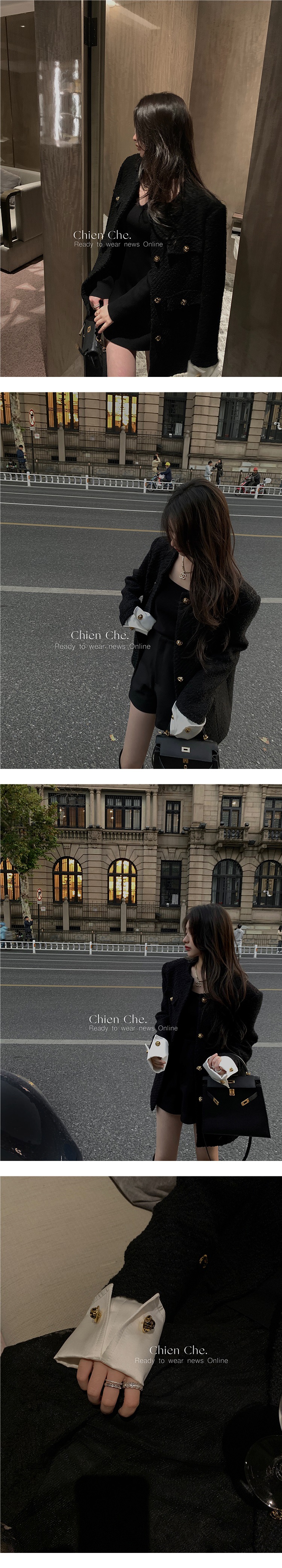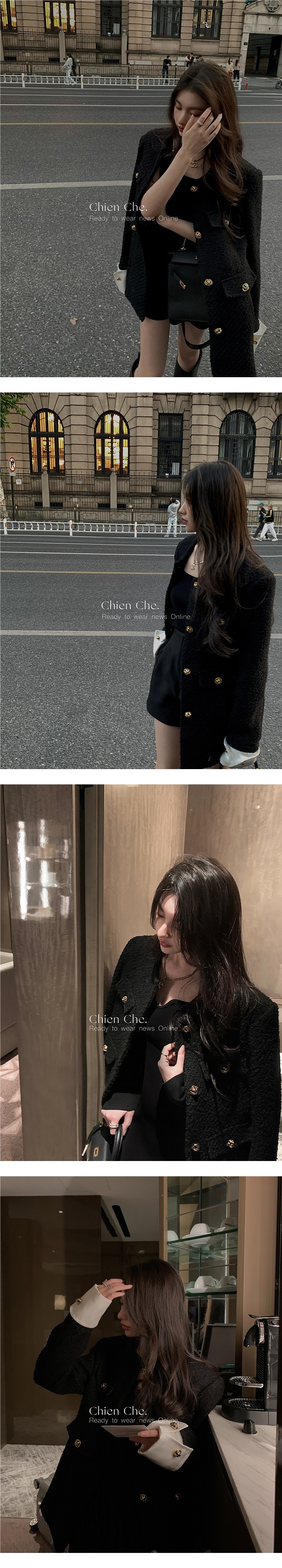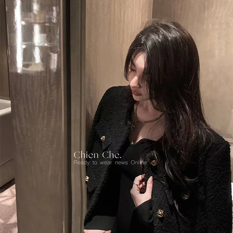 车迟恩Chien 车氏千金别致黑色羊毛上衣秋冬感小香风厚外套女