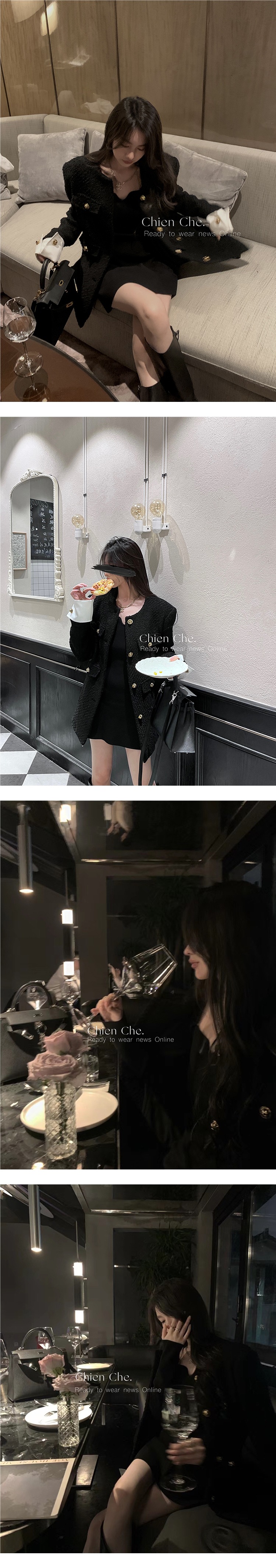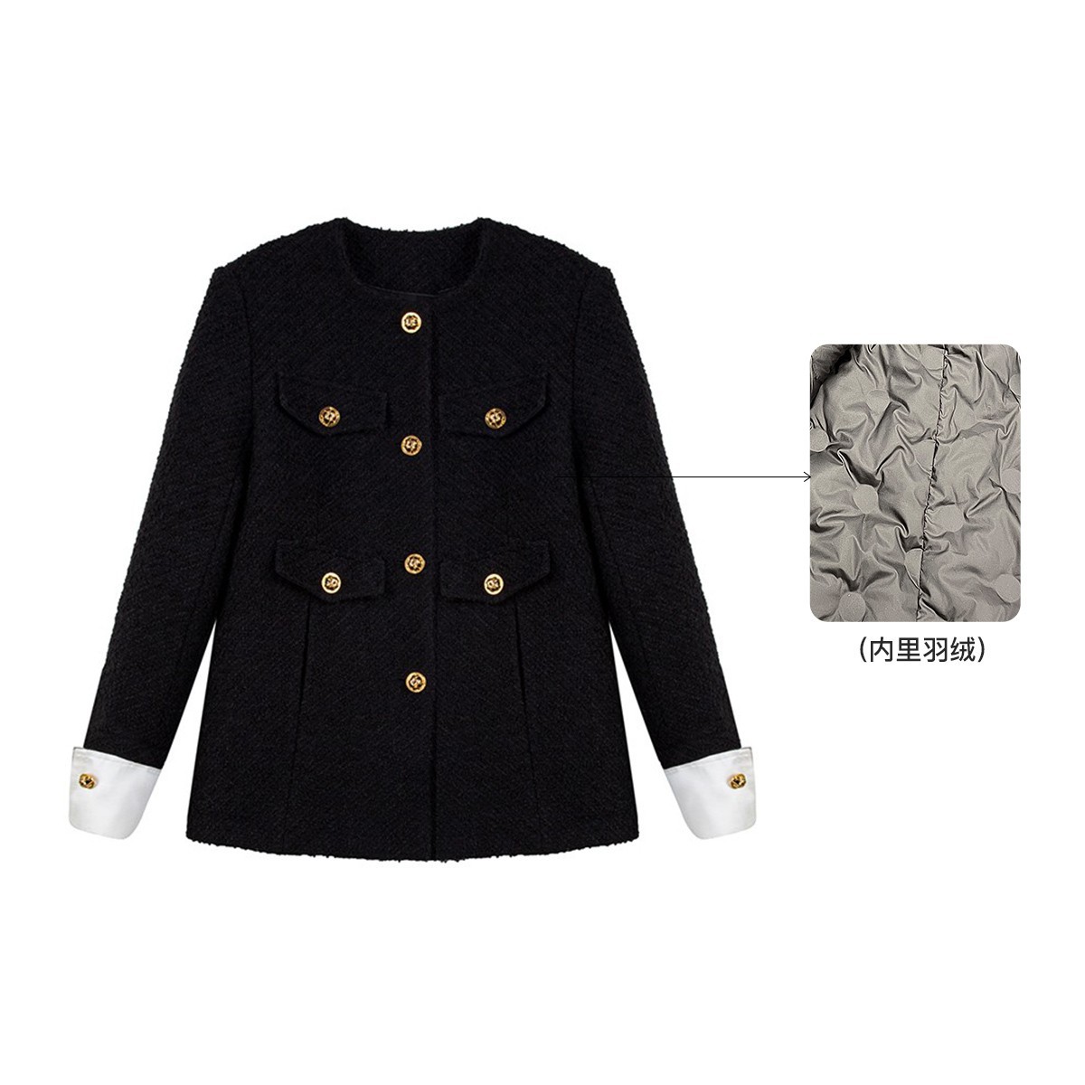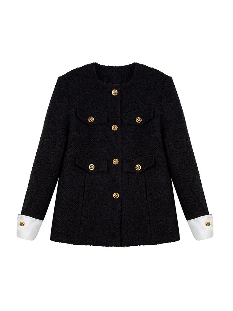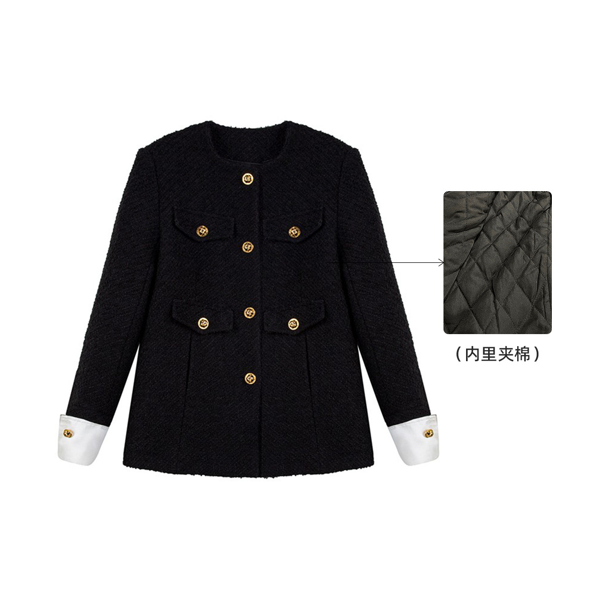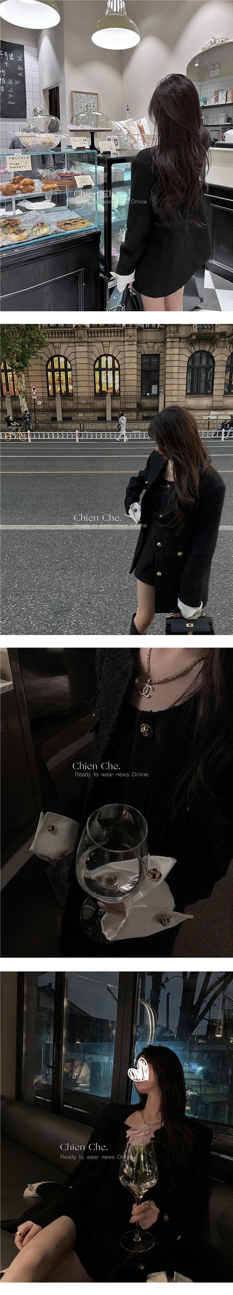 车迟恩Chien 车氏千金别致黑色羊毛上衣秋冬感小香风厚外套女