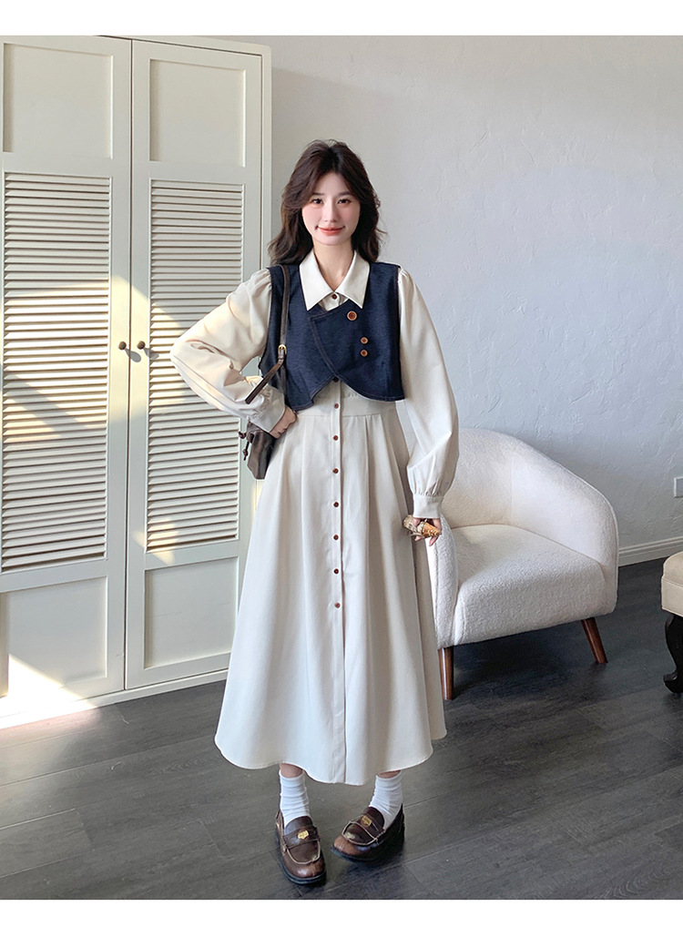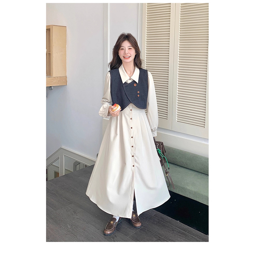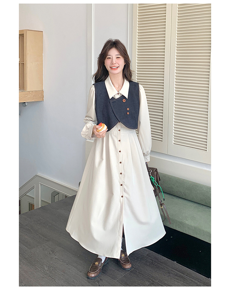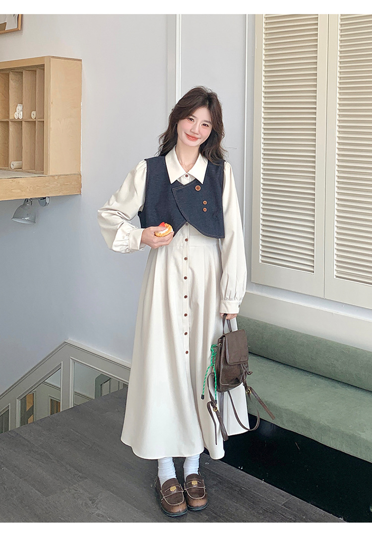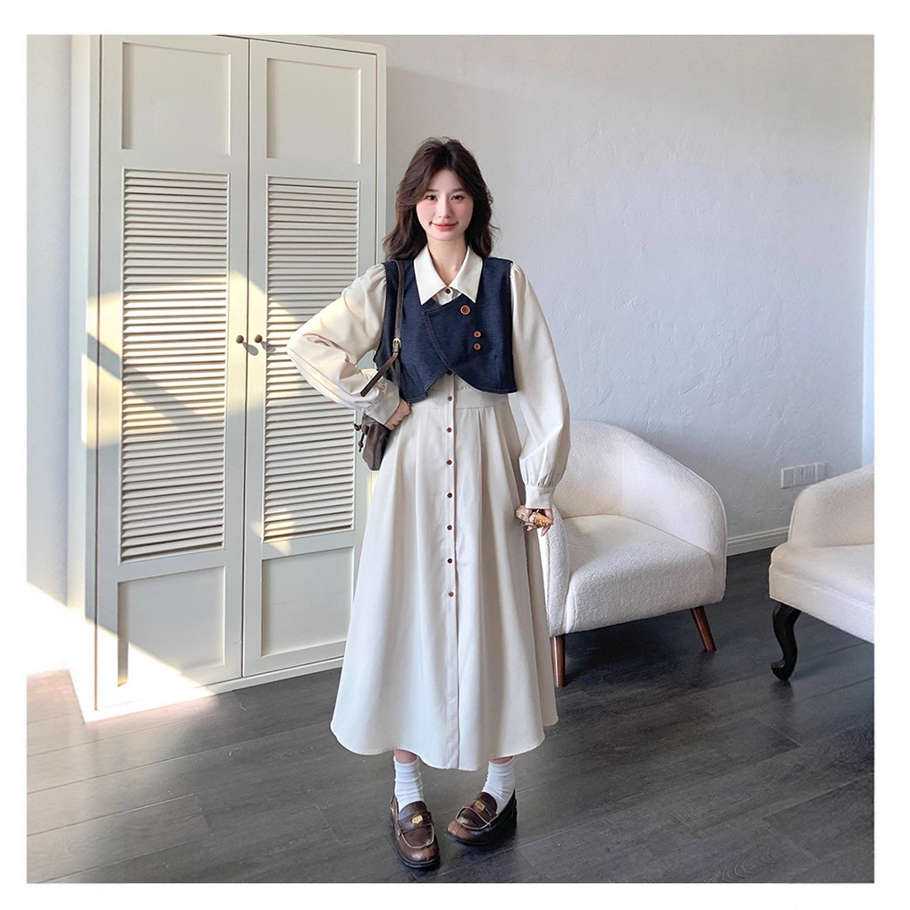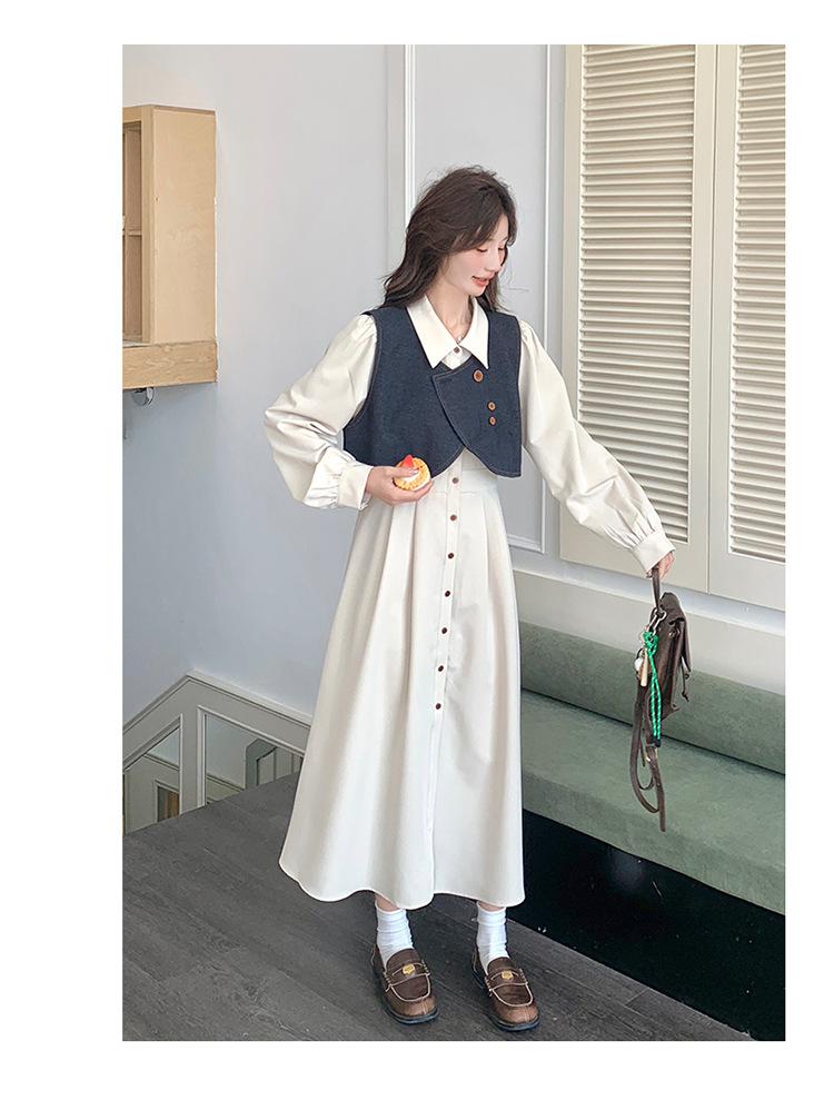 法式气质穿搭牛仔马甲连衣裙套装女2025秋季新款衬衫裙超火两件套