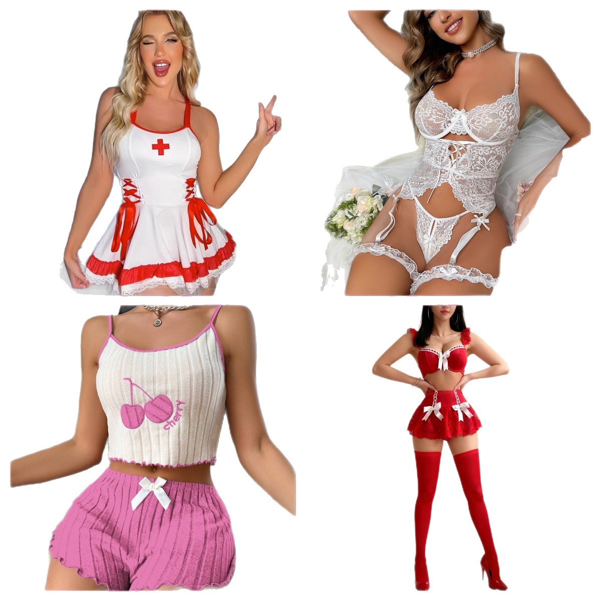 现货欧美调情性趣内衣跨境吊带蕾丝网纱性感睡衣女角色扮演女装