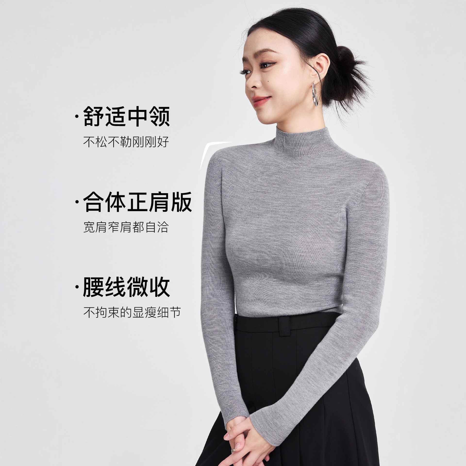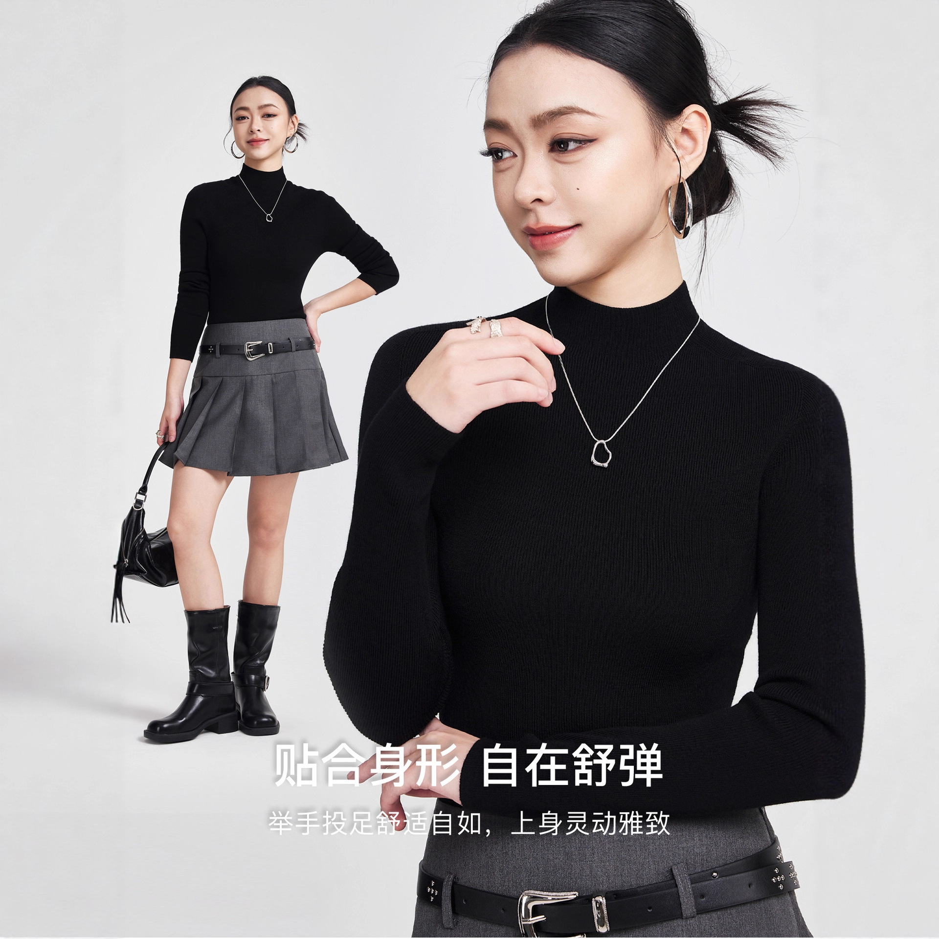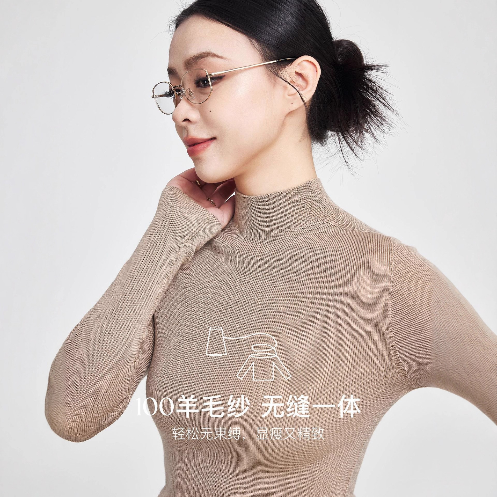 她展 女装纯羊毛无缝一体打底衫2025冬新款内搭毛衣女10052.