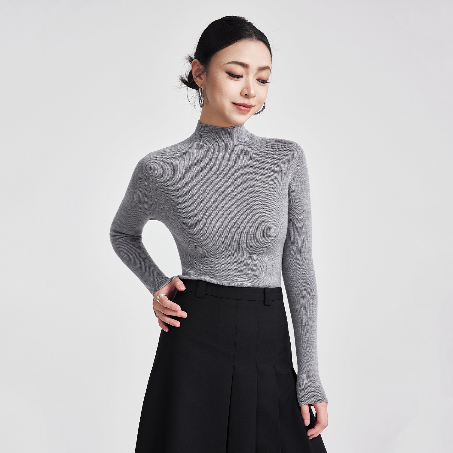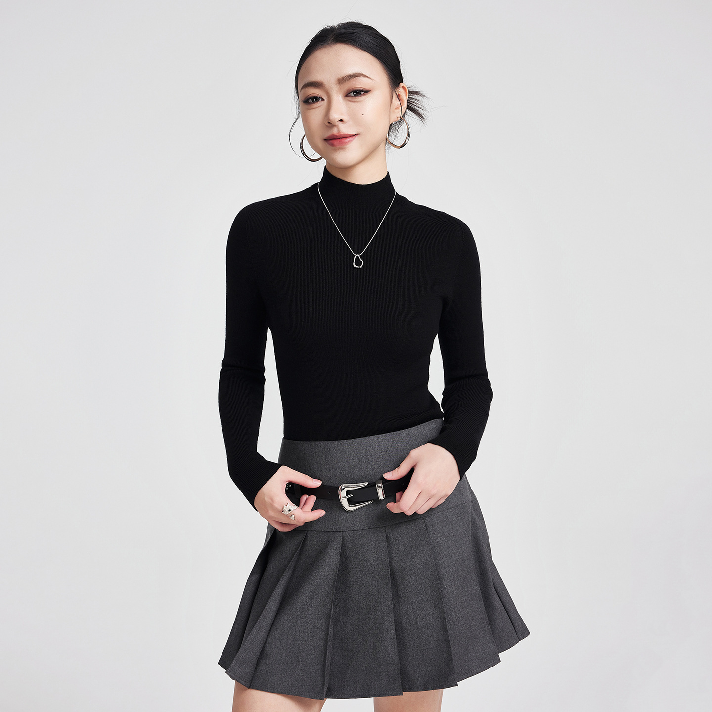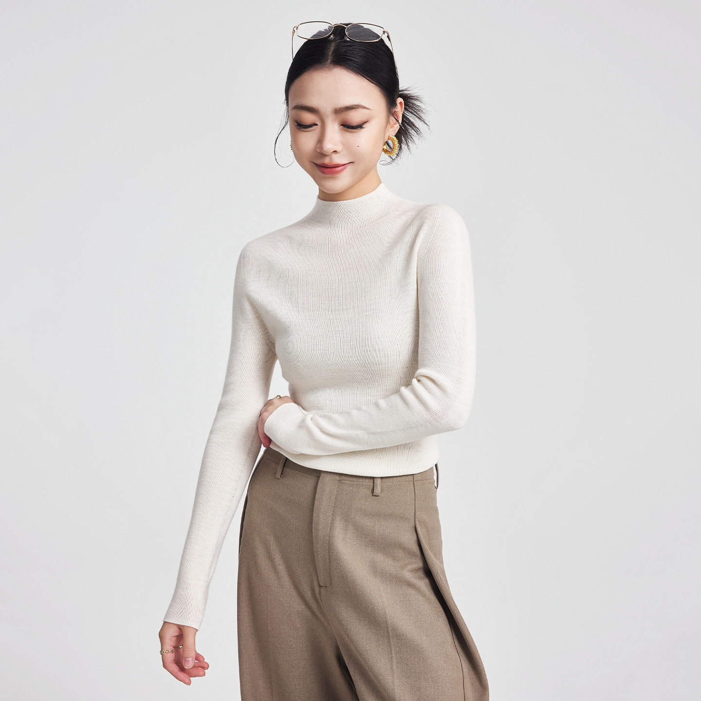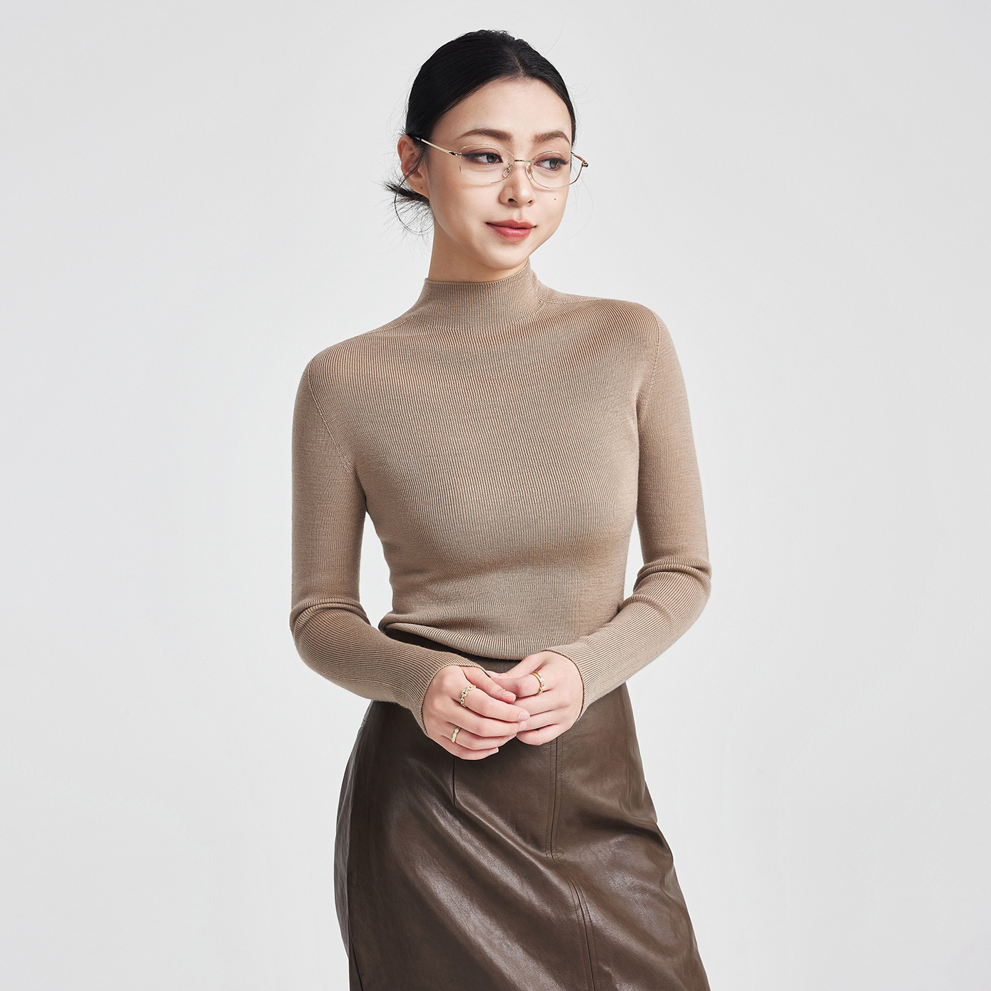 她展 女装纯羊毛无缝一体打底衫2025冬新款内搭毛衣女10052.