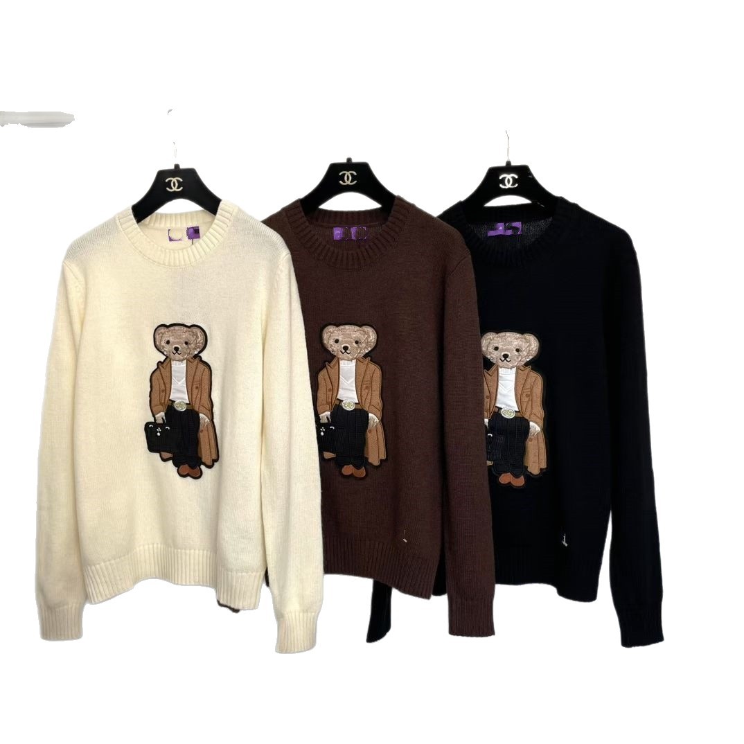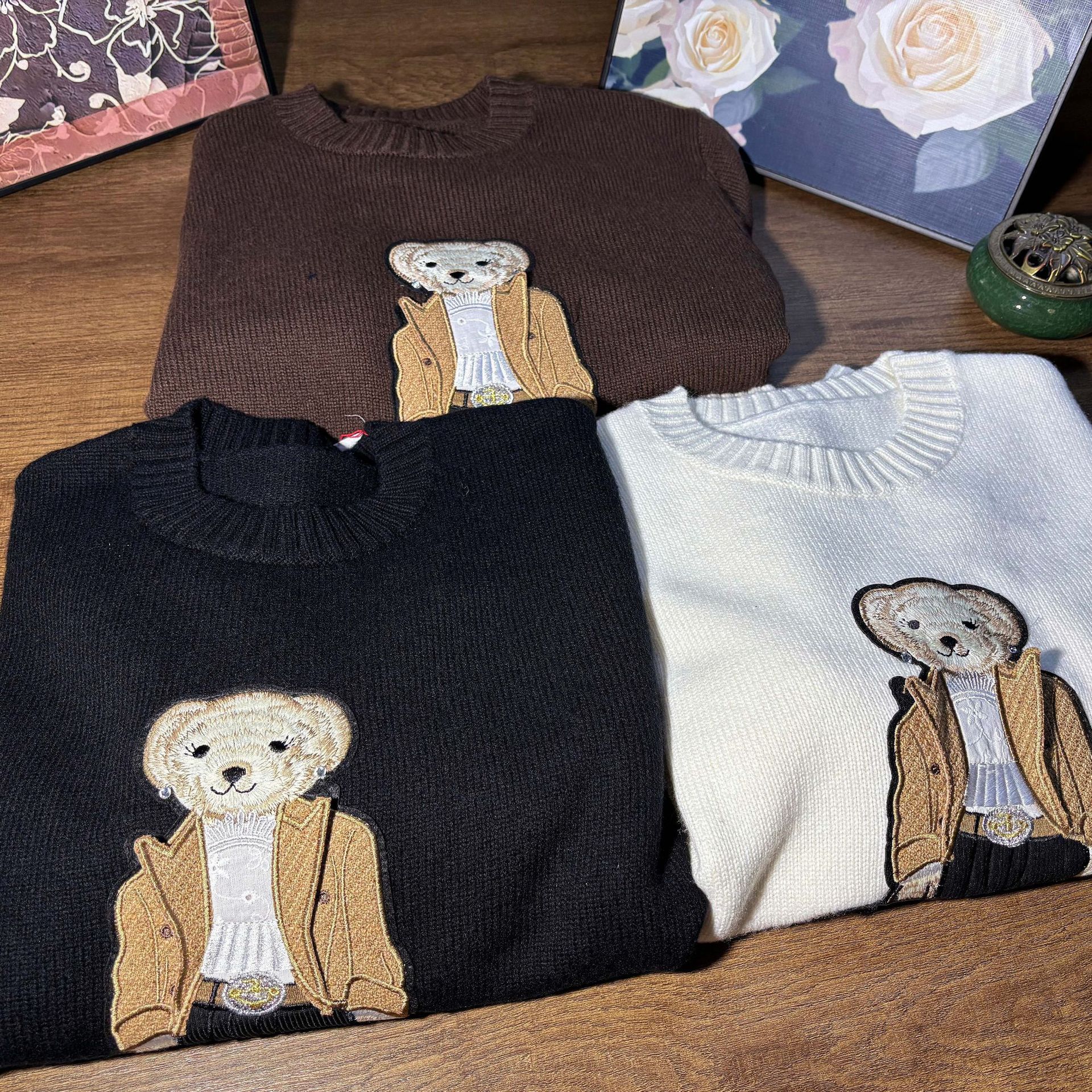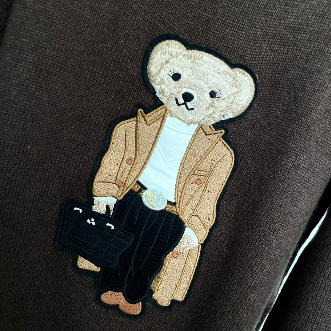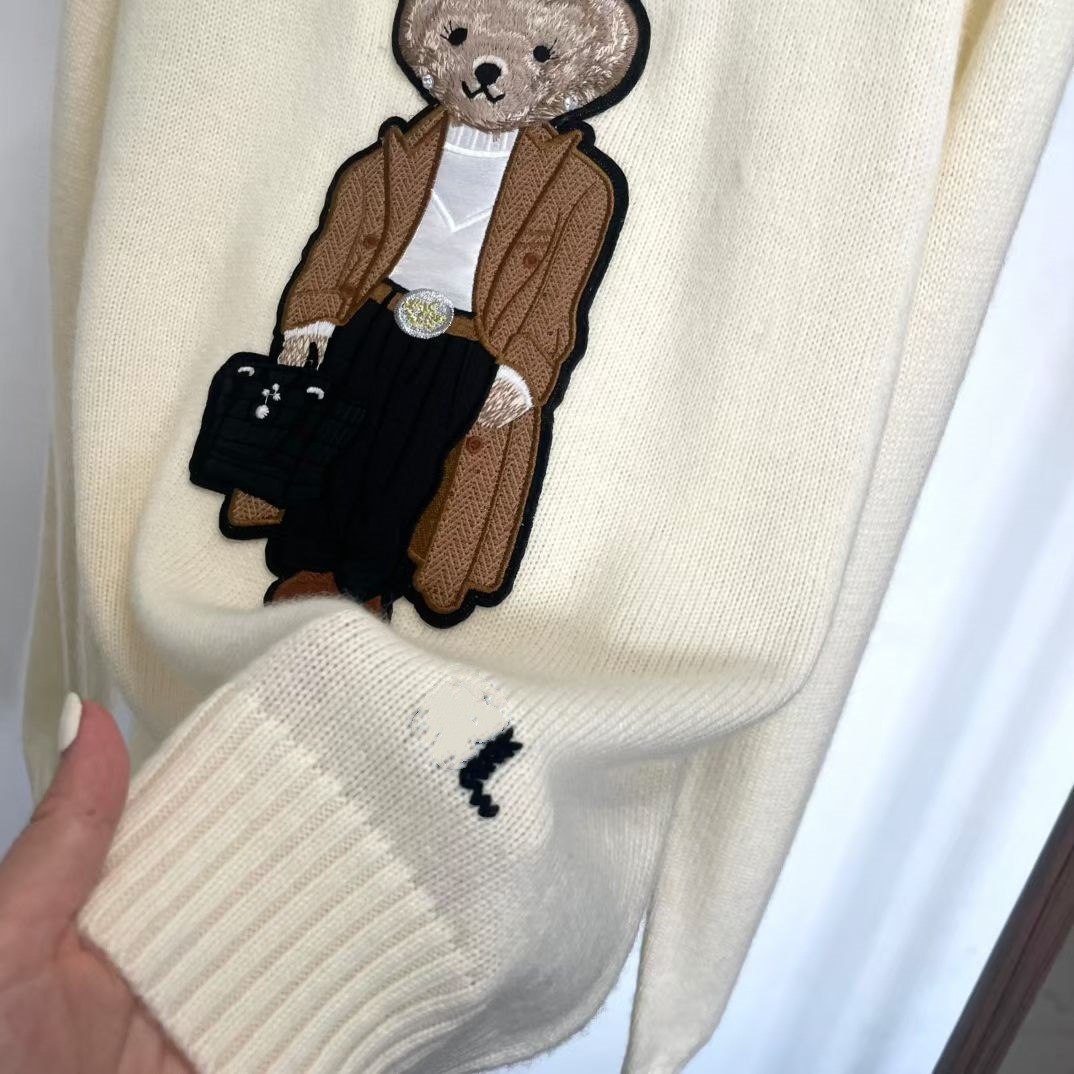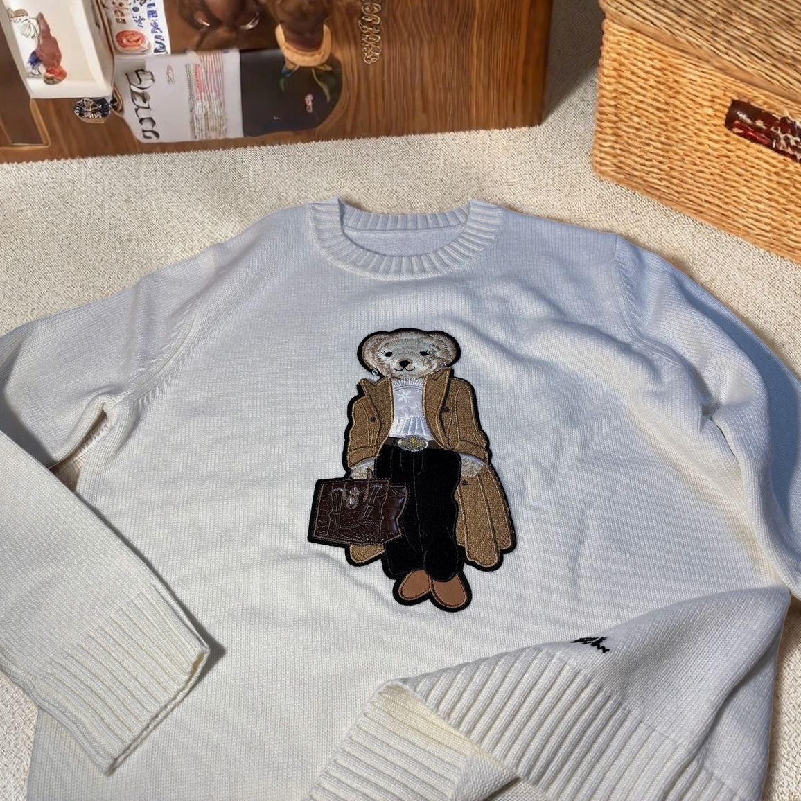 RL拉夫 圆领休闲宽松气质特色长装外套小熊刺绣圆领针织套头衫女