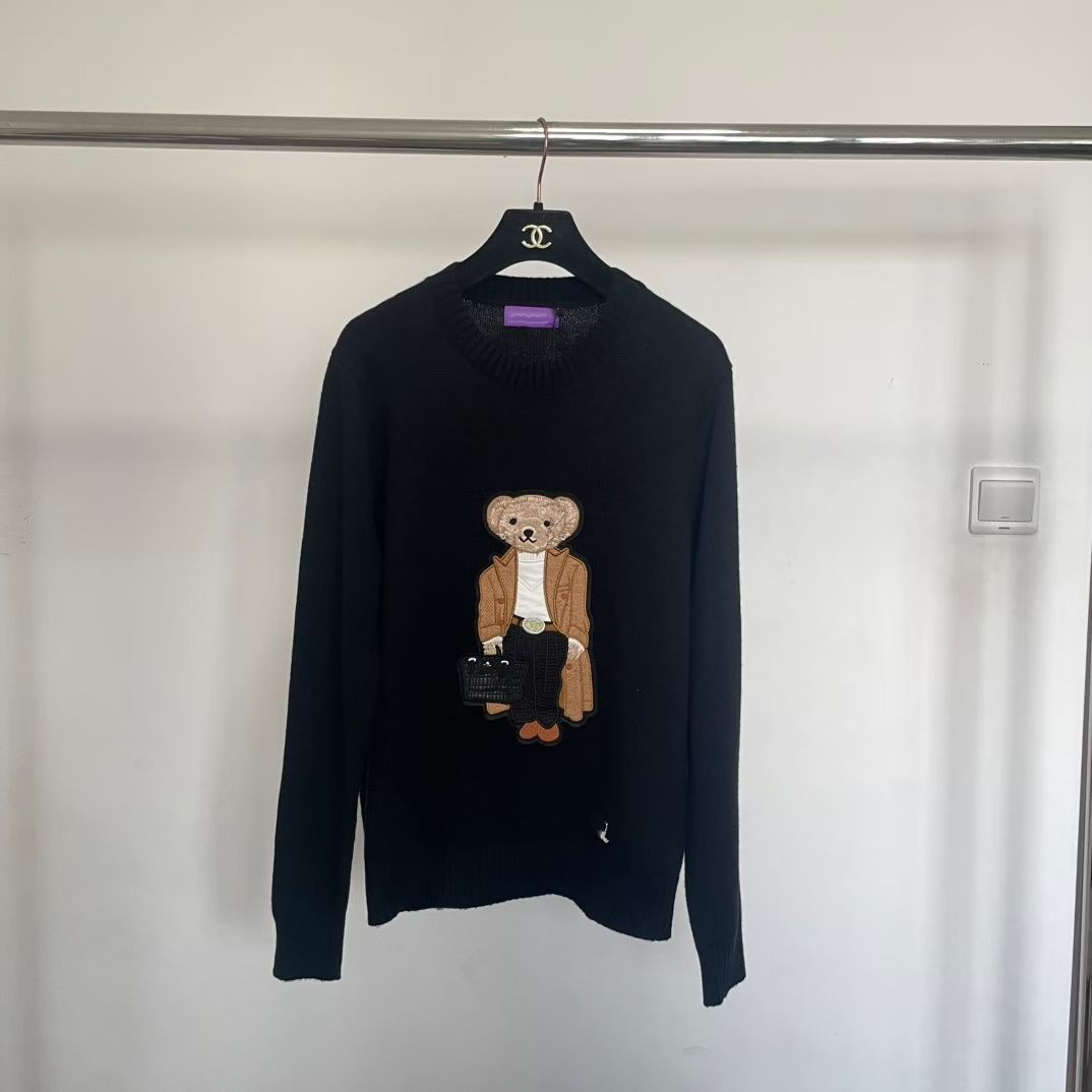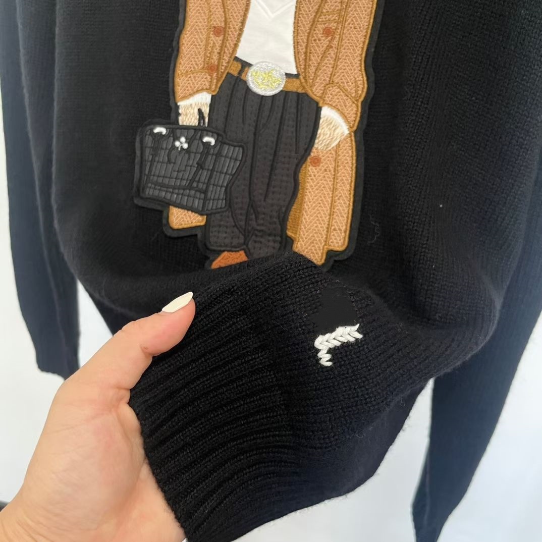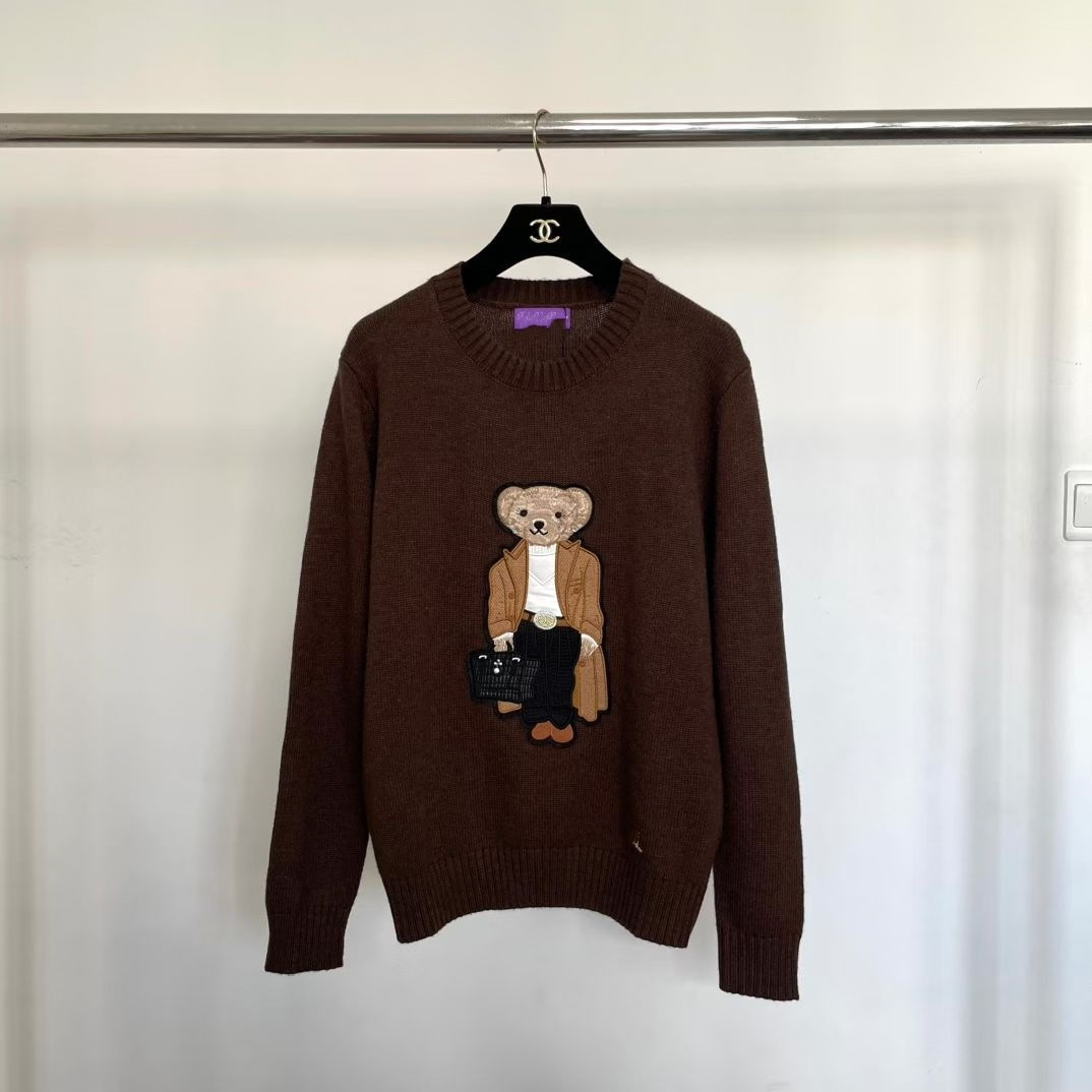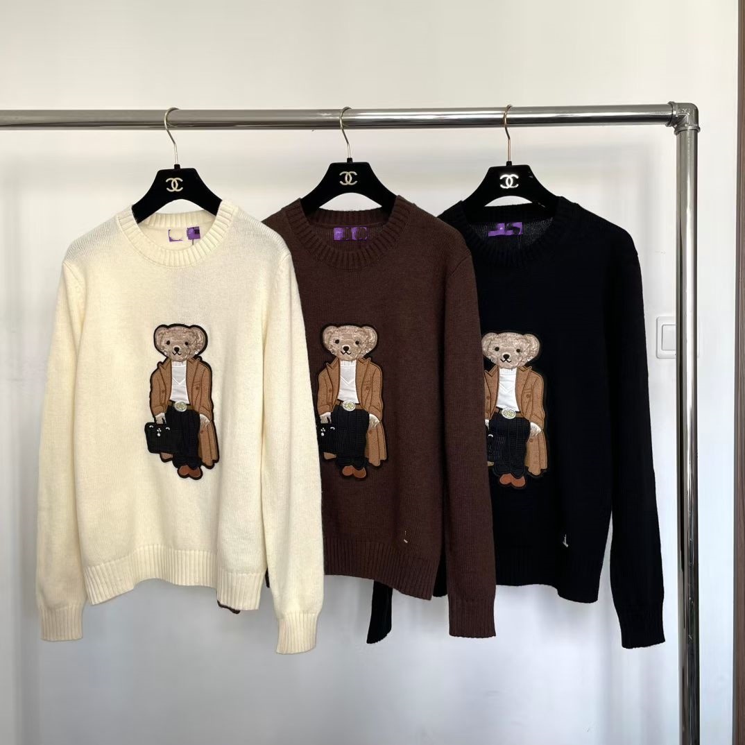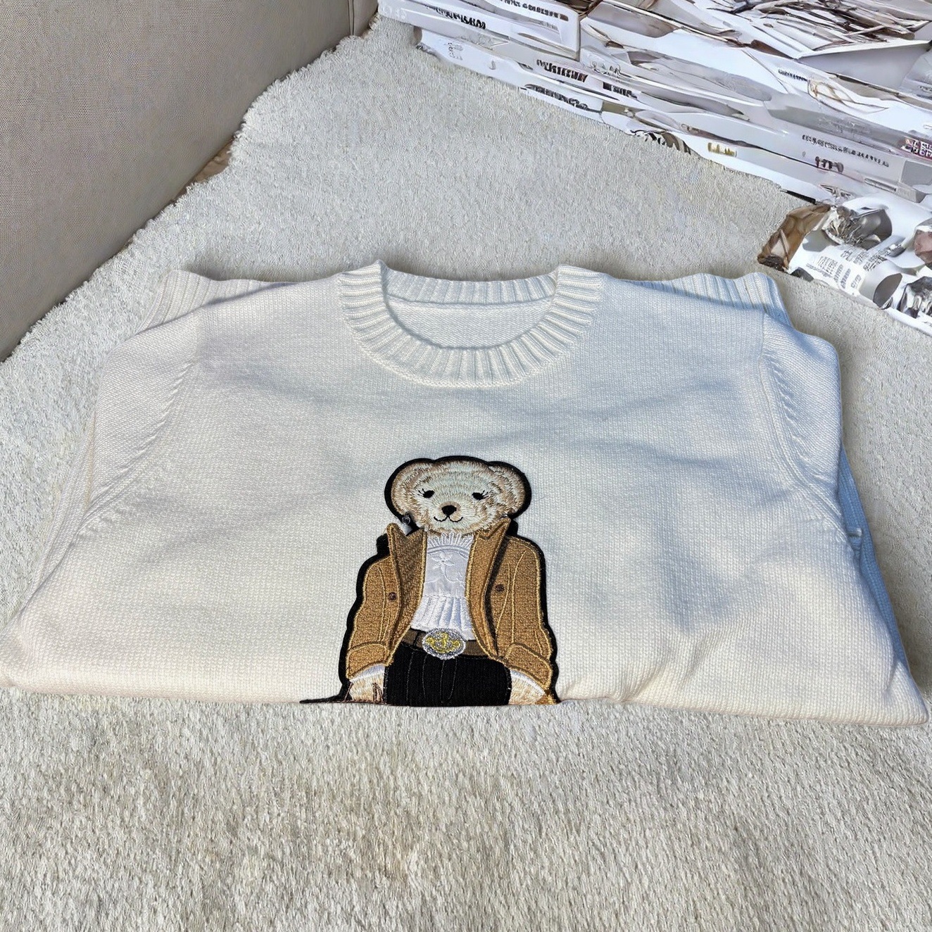 RL拉夫 圆领休闲宽松气质特色长装外套小熊刺绣圆领针织套头衫女