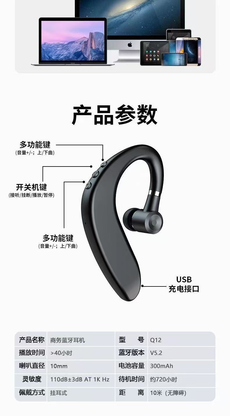 S109蓝牙耳机车载运动入耳式180度旋转可左右耳无痛佩戴耳挂式