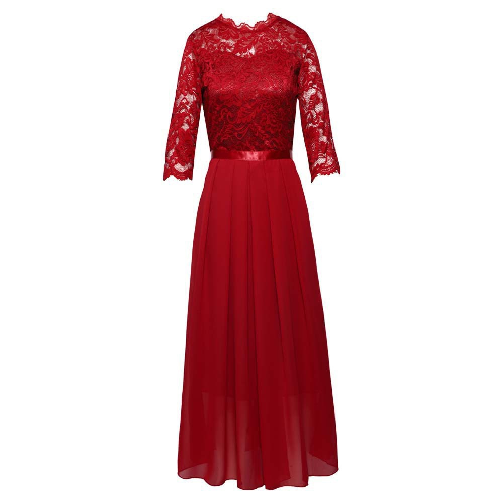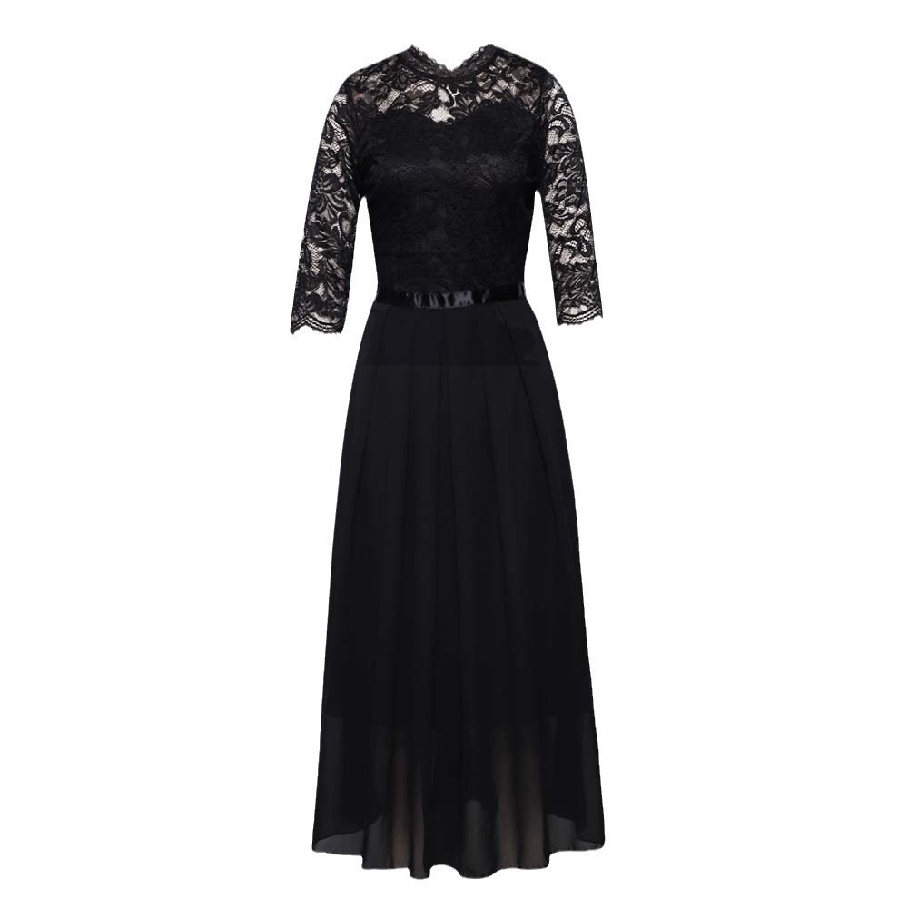 2025现货亚马逊晚礼服 欧洲站拼接连衣裙 圆领蕾丝长裙晚礼服