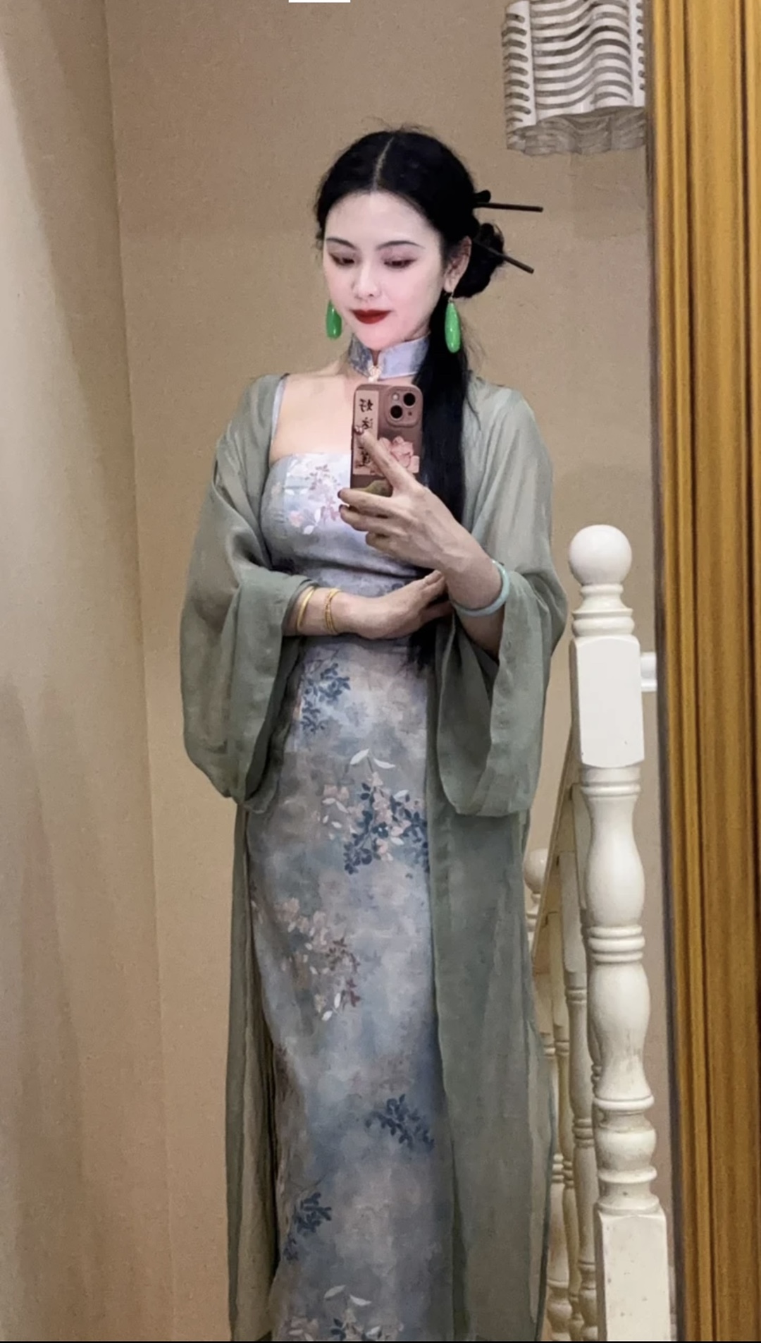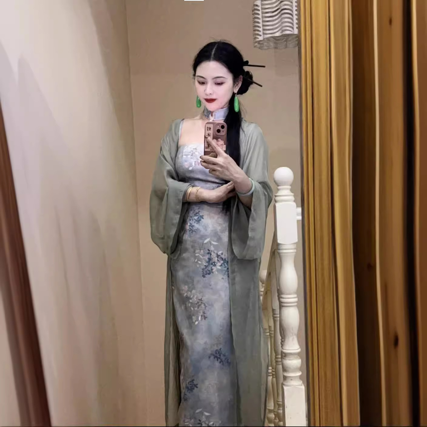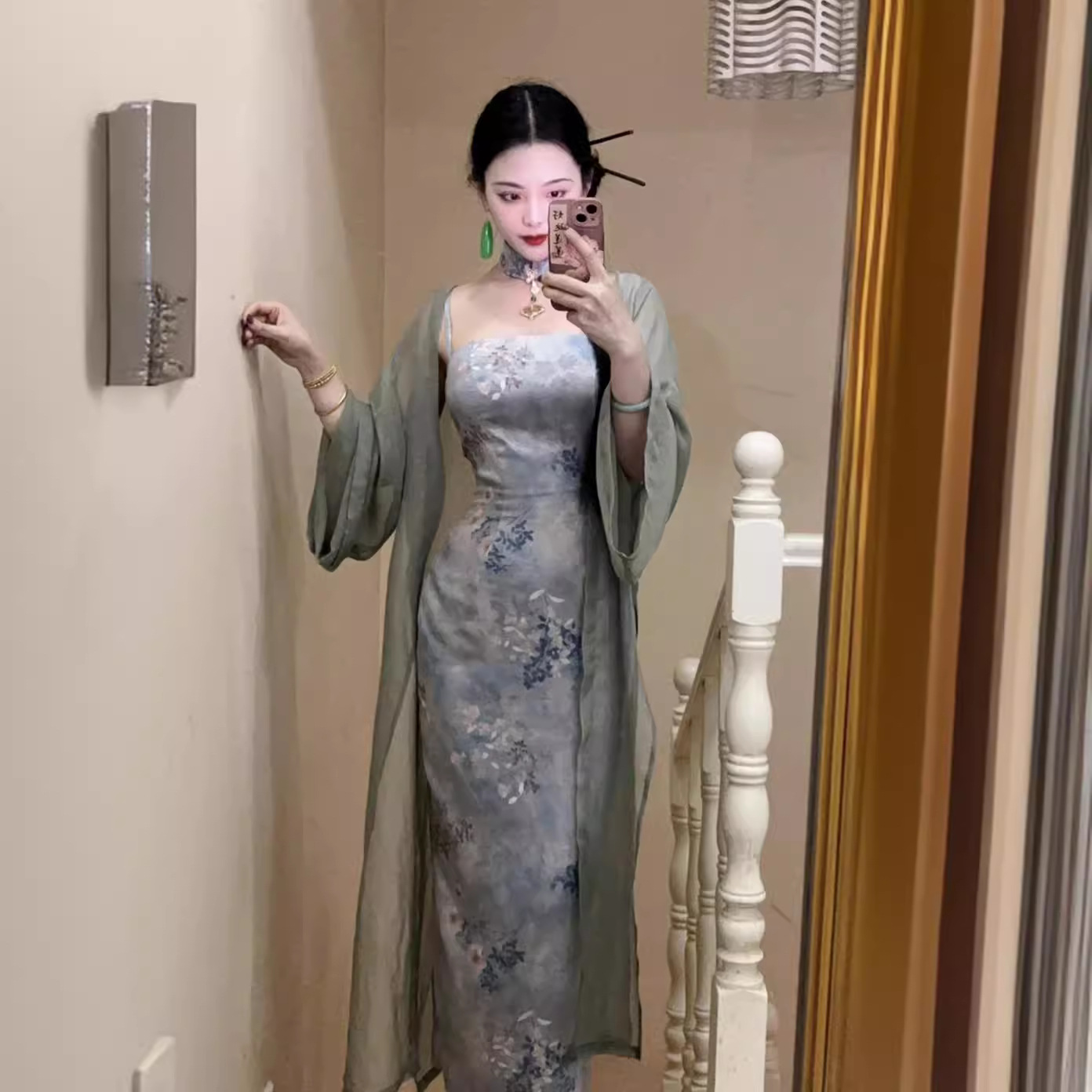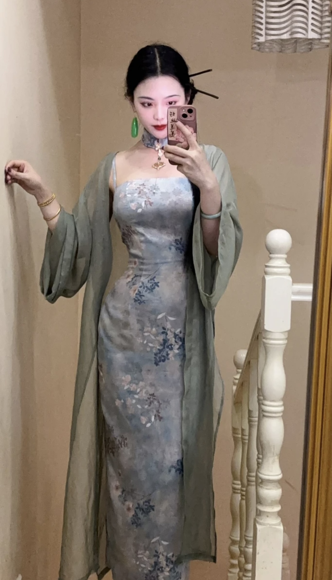 画报夫人 自制新中式国风素雅温柔清冷吊带连衣裙 蓝木桥吊带