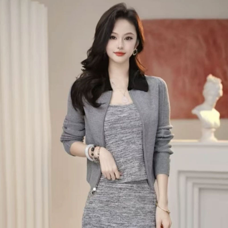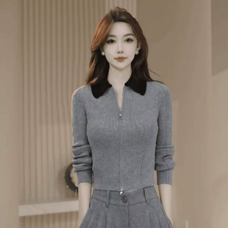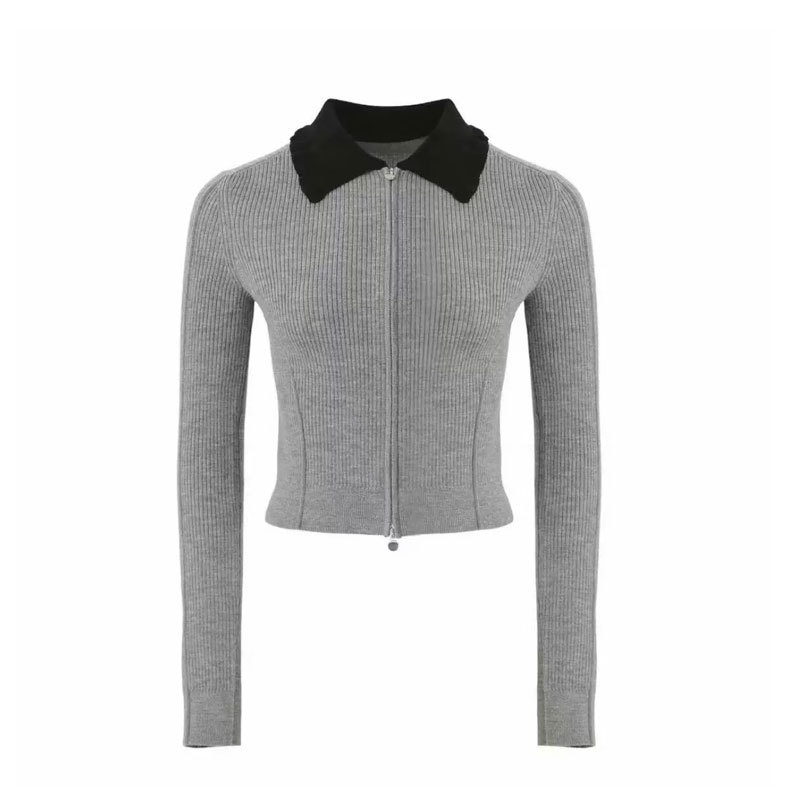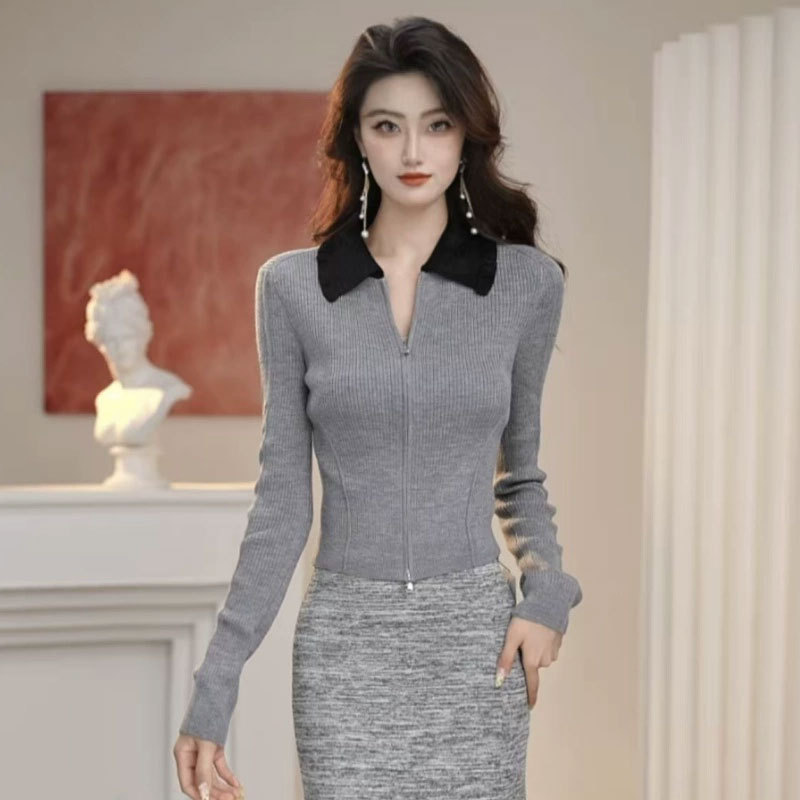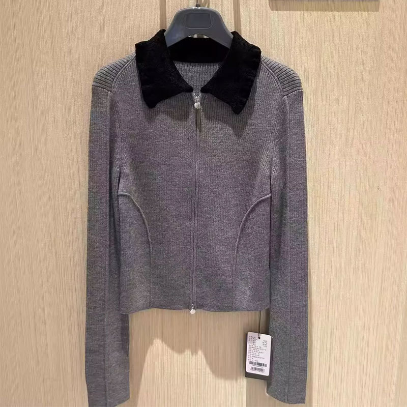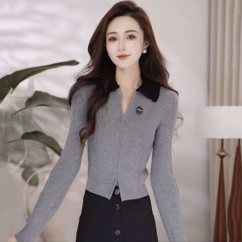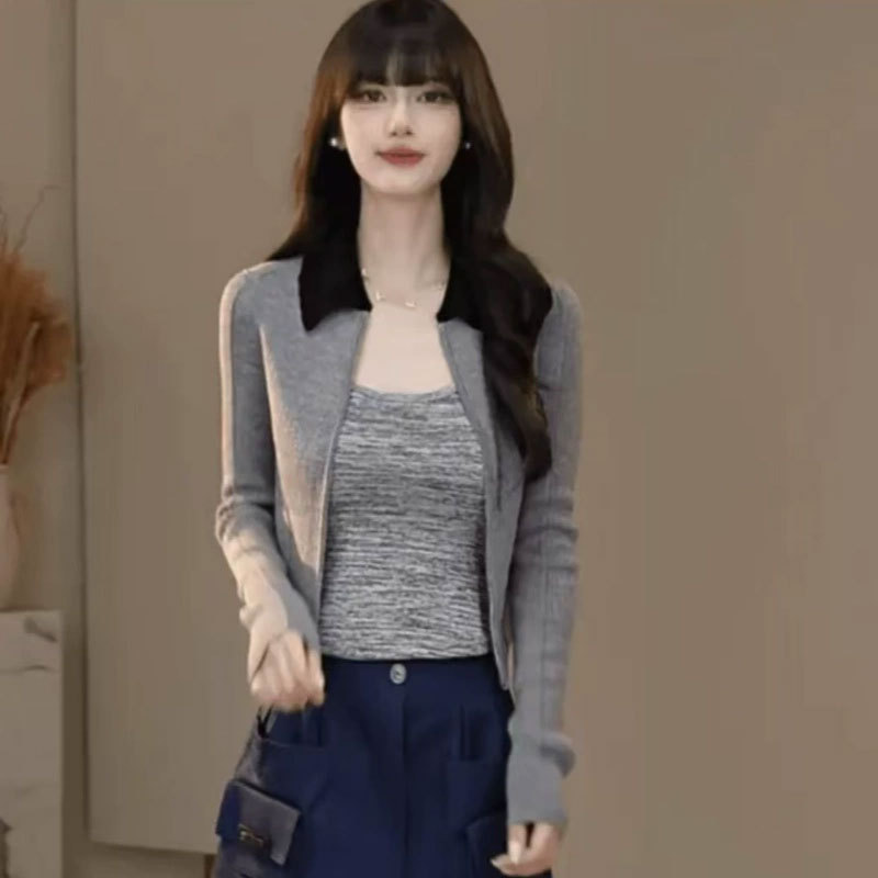 商场同款2025早秋新款百搭修身短款拼色长袖针织开衫
