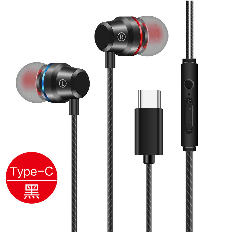 新款爆款金属耳机 Type-c有线耳机 跨境电商入耳式线控重低音耳机