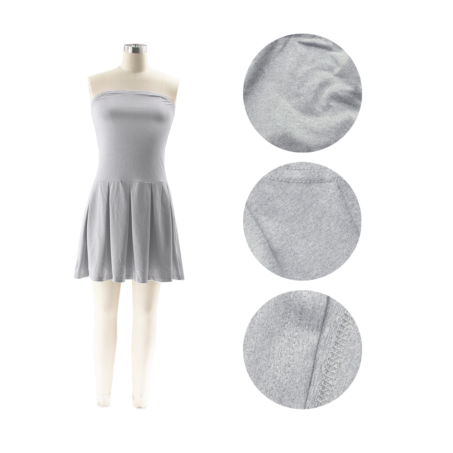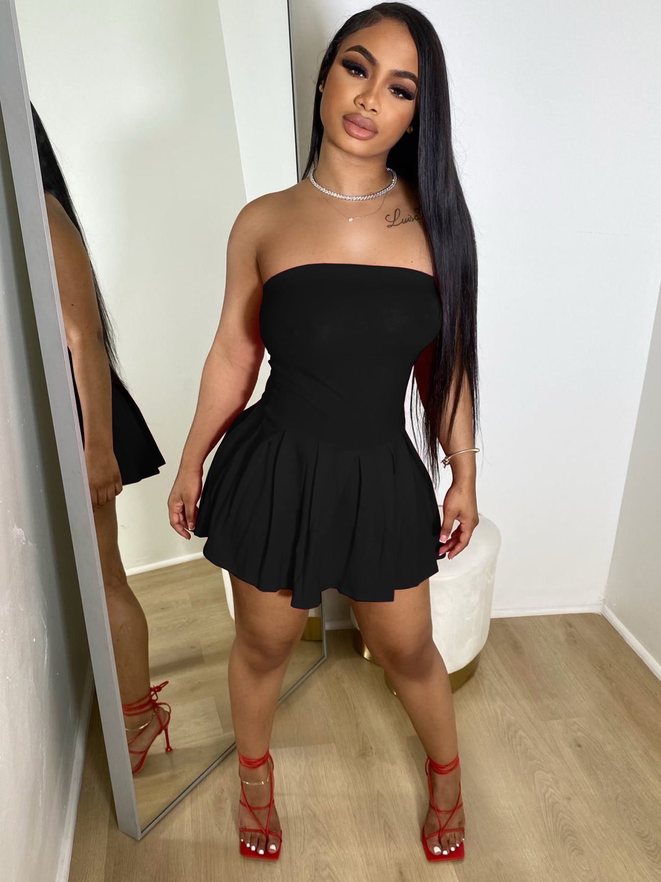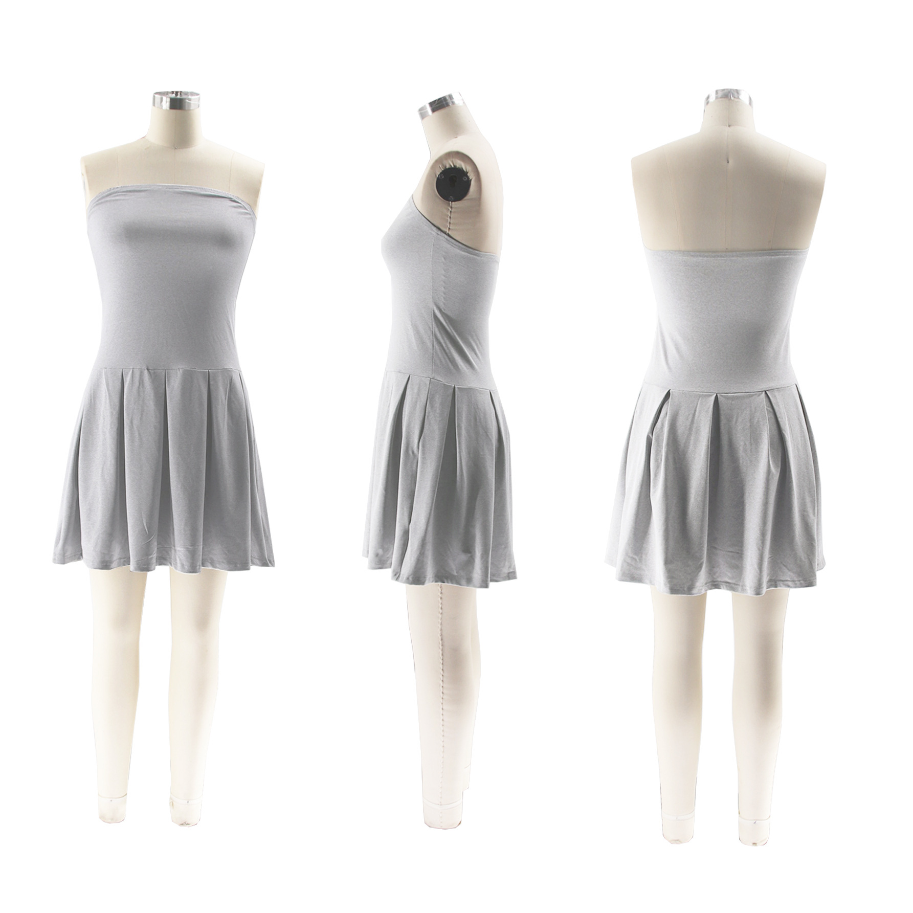 TW477欧美女装2024夏新款时尚修身高腰百褶裙纯色露肩抹胸连衣裙