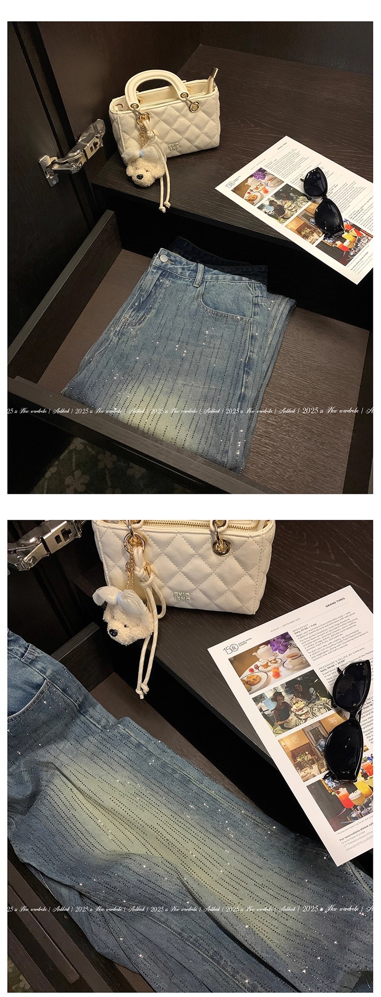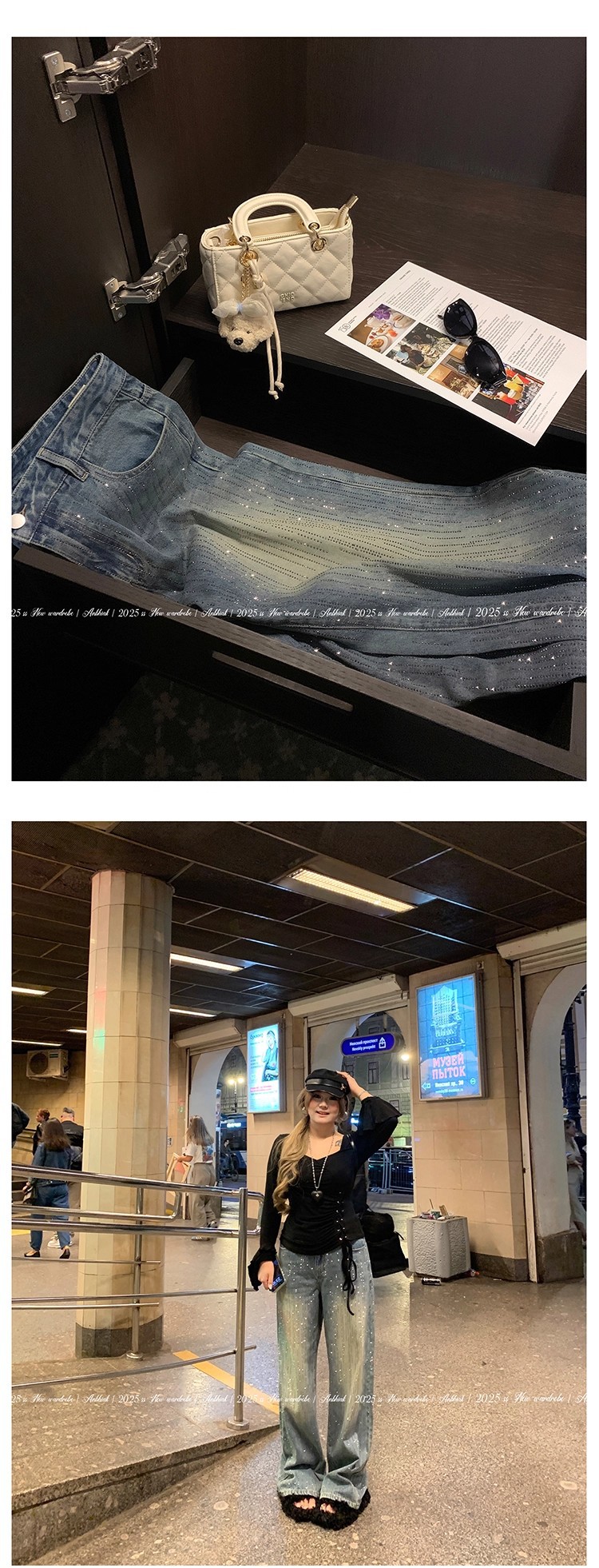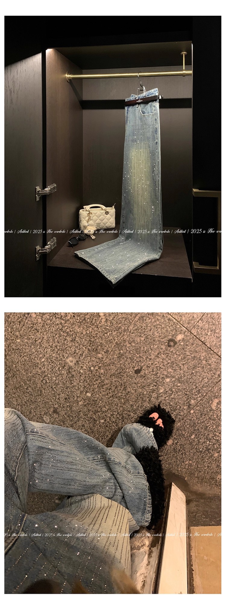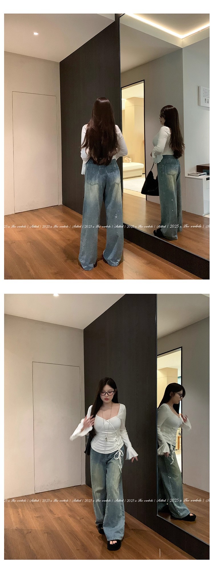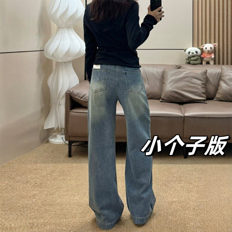 安妮不火梵高星月遮胯显腿长阔腿牛仔裤女微胖大码重工烫钻牛仔裤