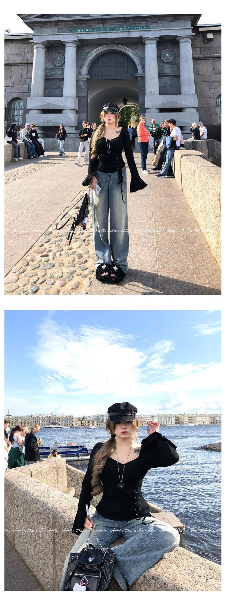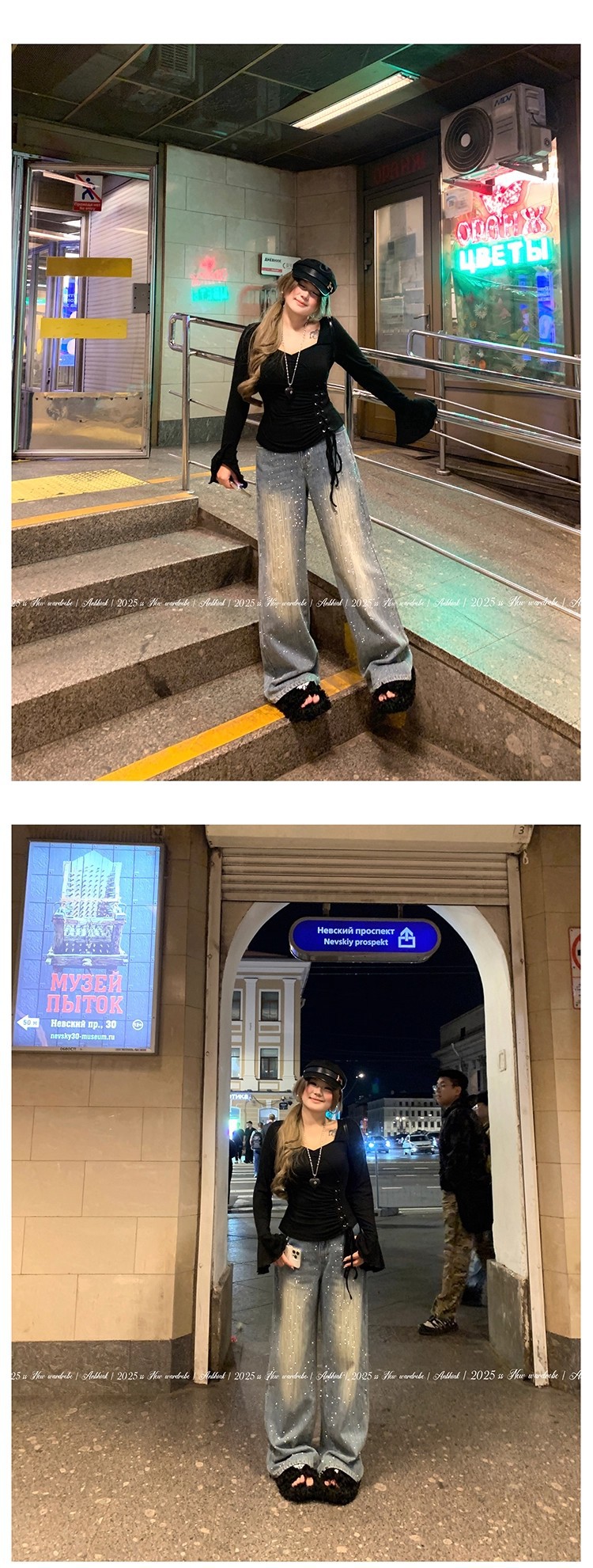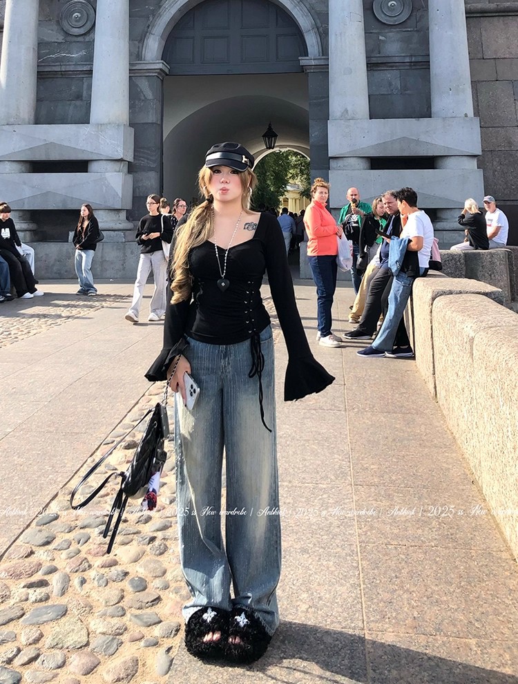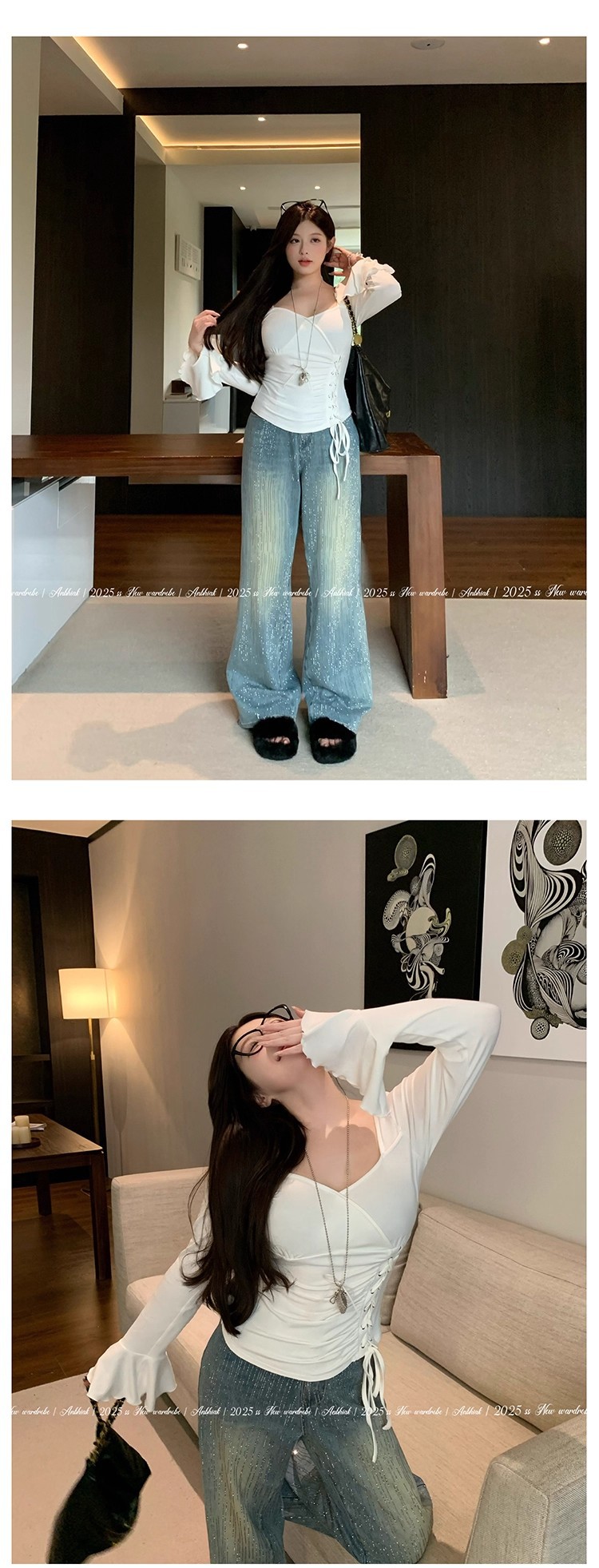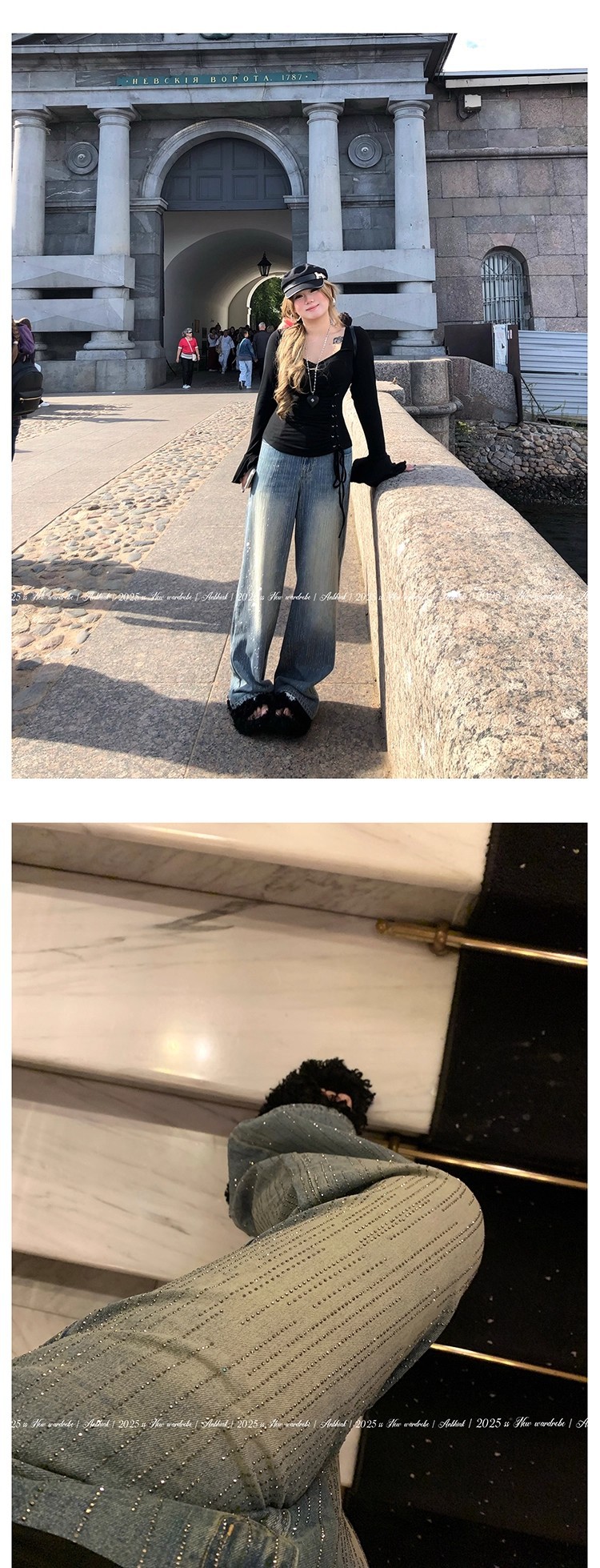 安妮不火梵高星月遮胯显腿长阔腿牛仔裤女微胖大码重工烫钻牛仔裤