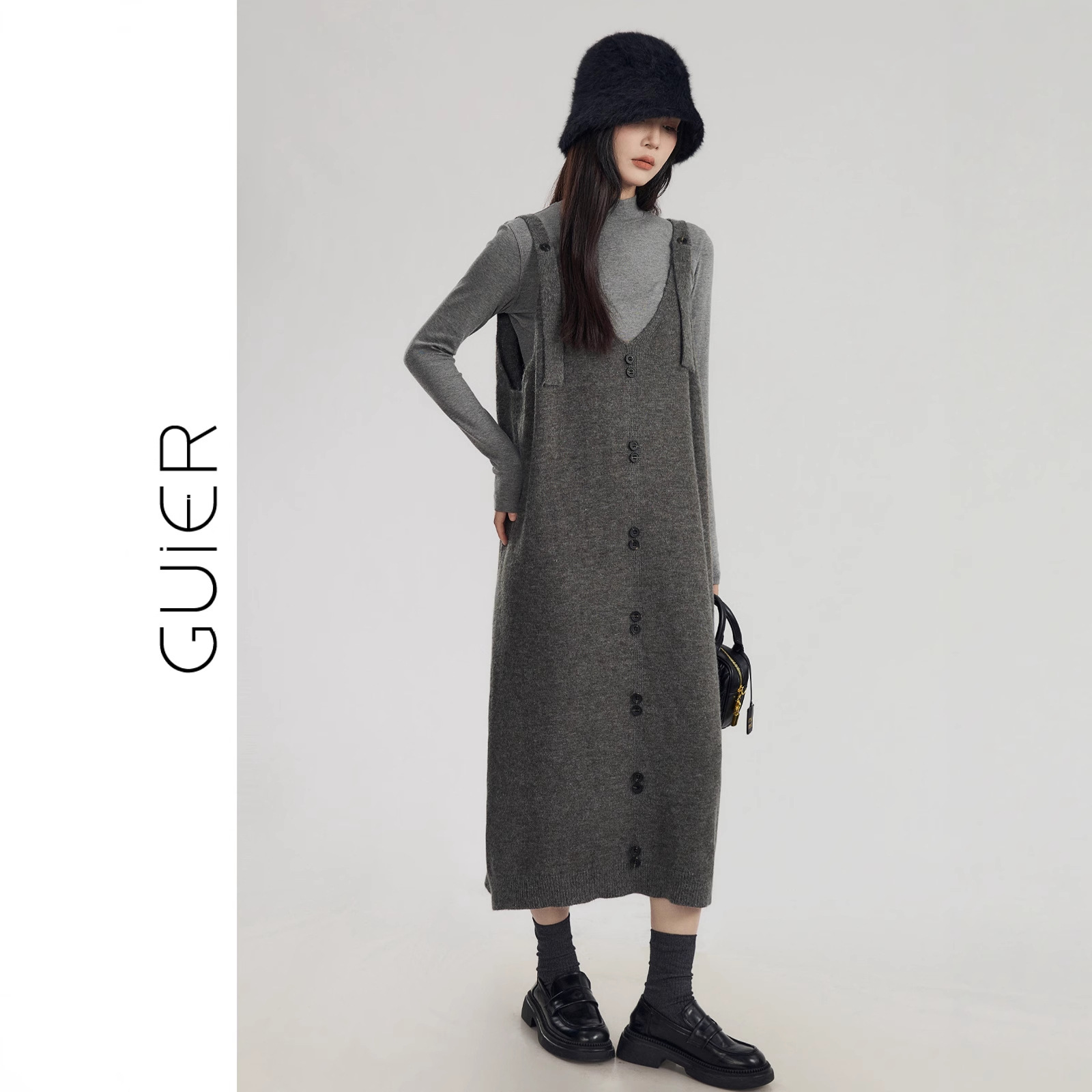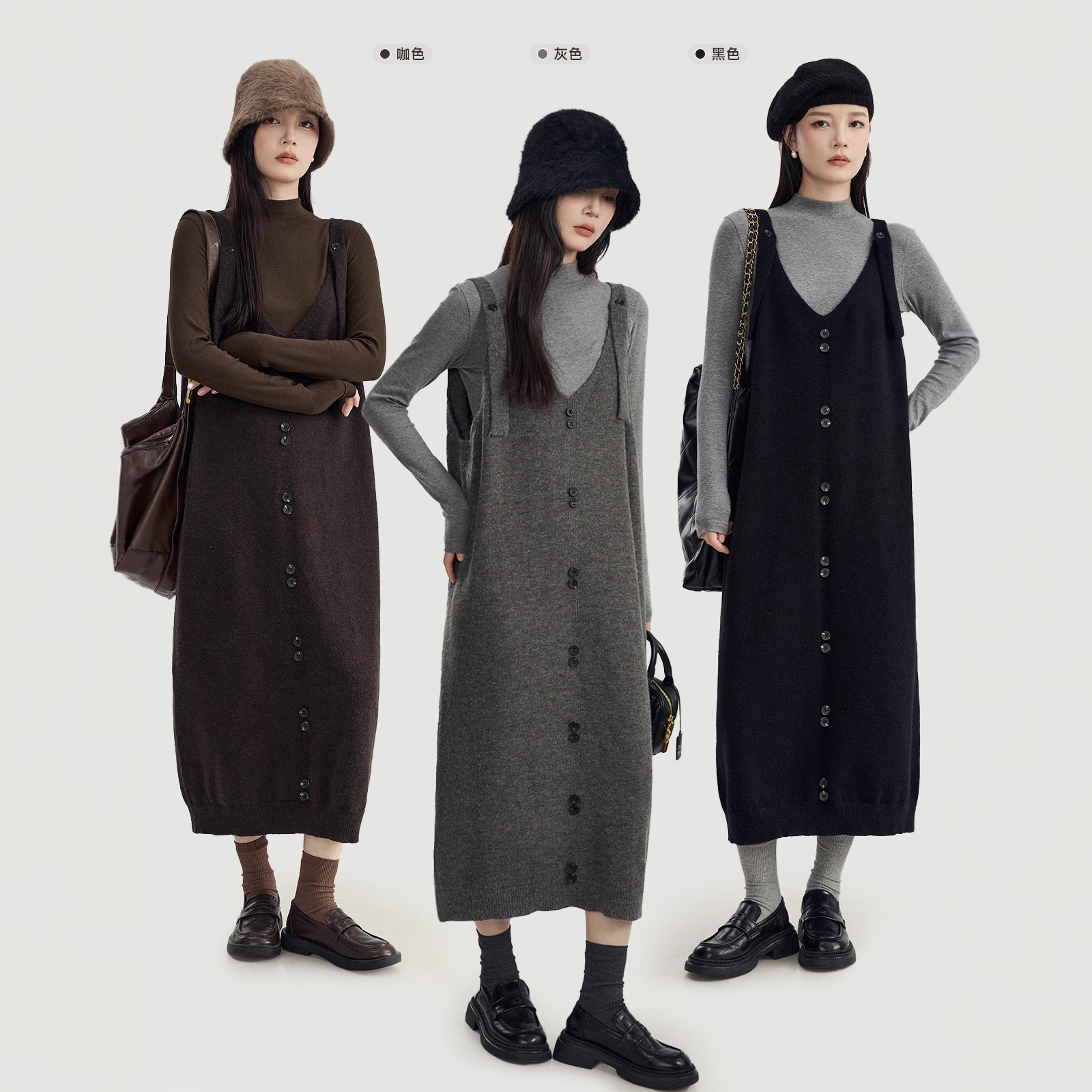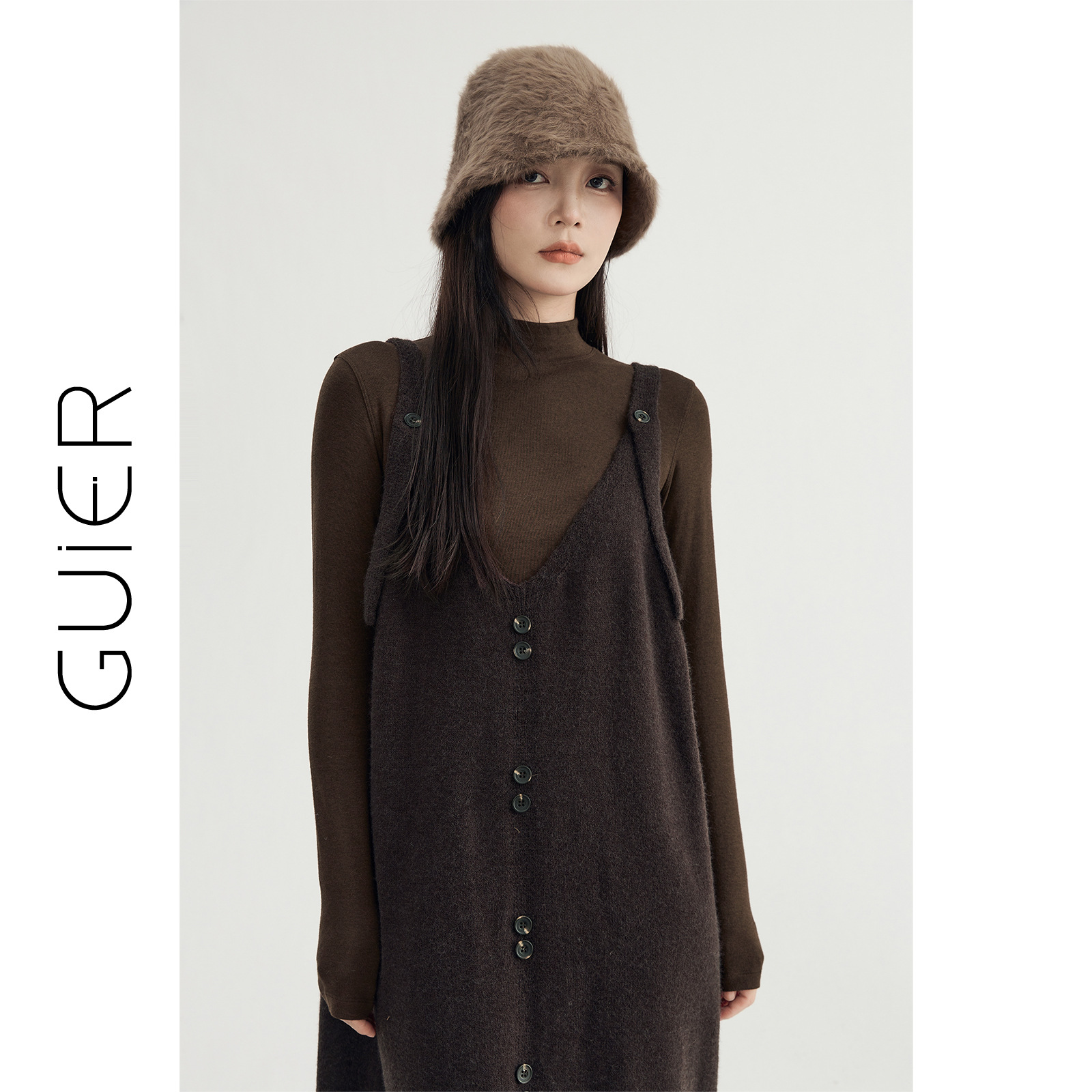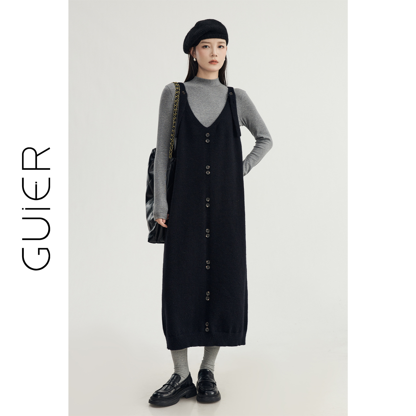 桂儿「北极绒」慵懒自在调调!针织连衣裙女春秋高级宽松吊带裙子