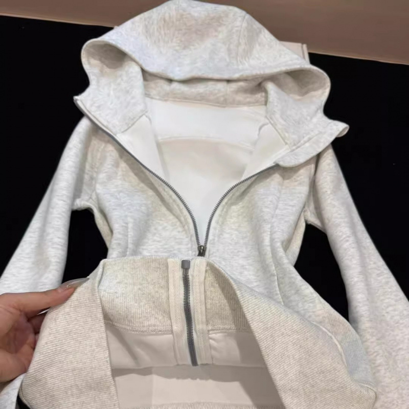 开秋穿搭外套女卫衣秋季衣服连帽韩系收腰修身短款上衣2025新款