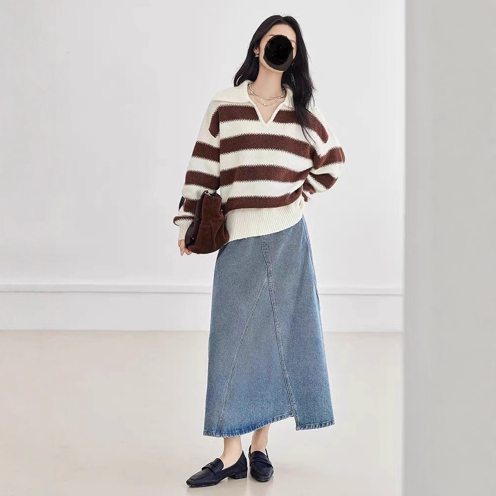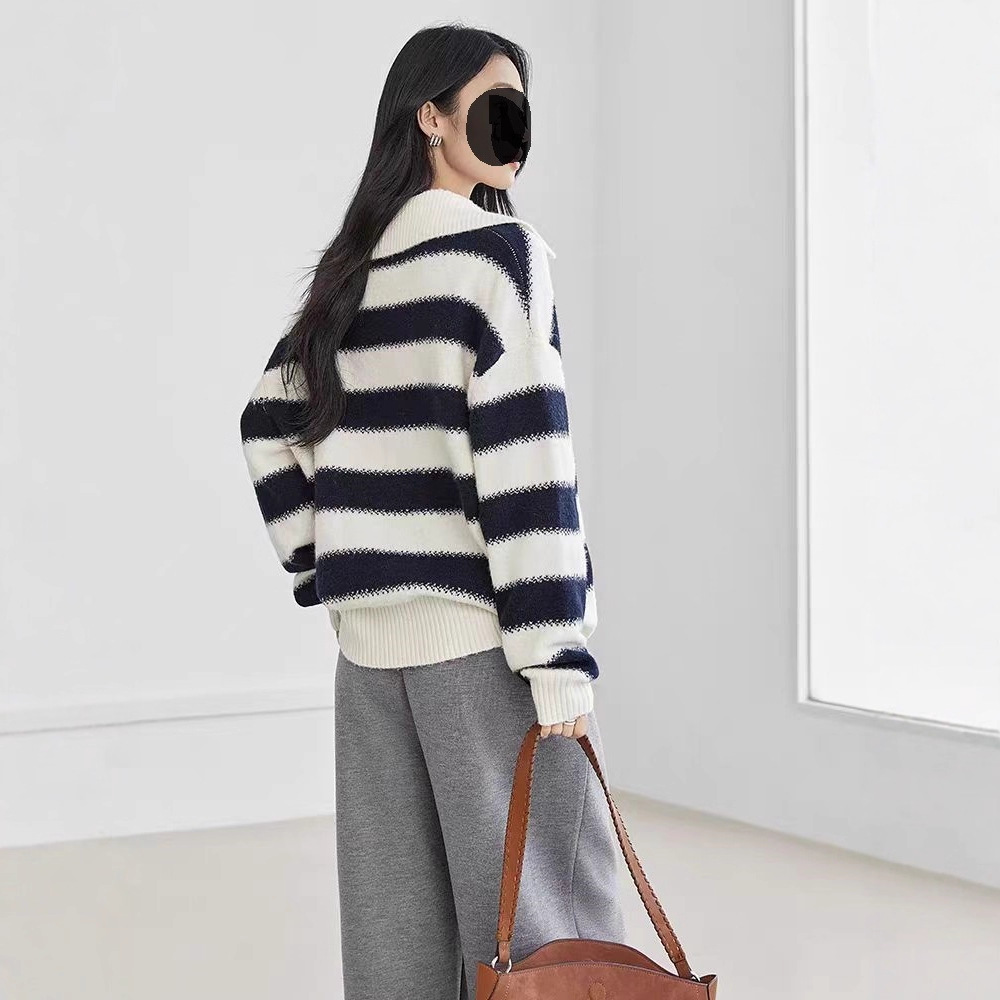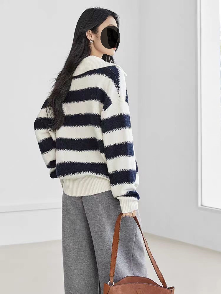 秋冬新款撞色套头半拉链针织衫女2025新款宽松休闲学院风外穿毛衣