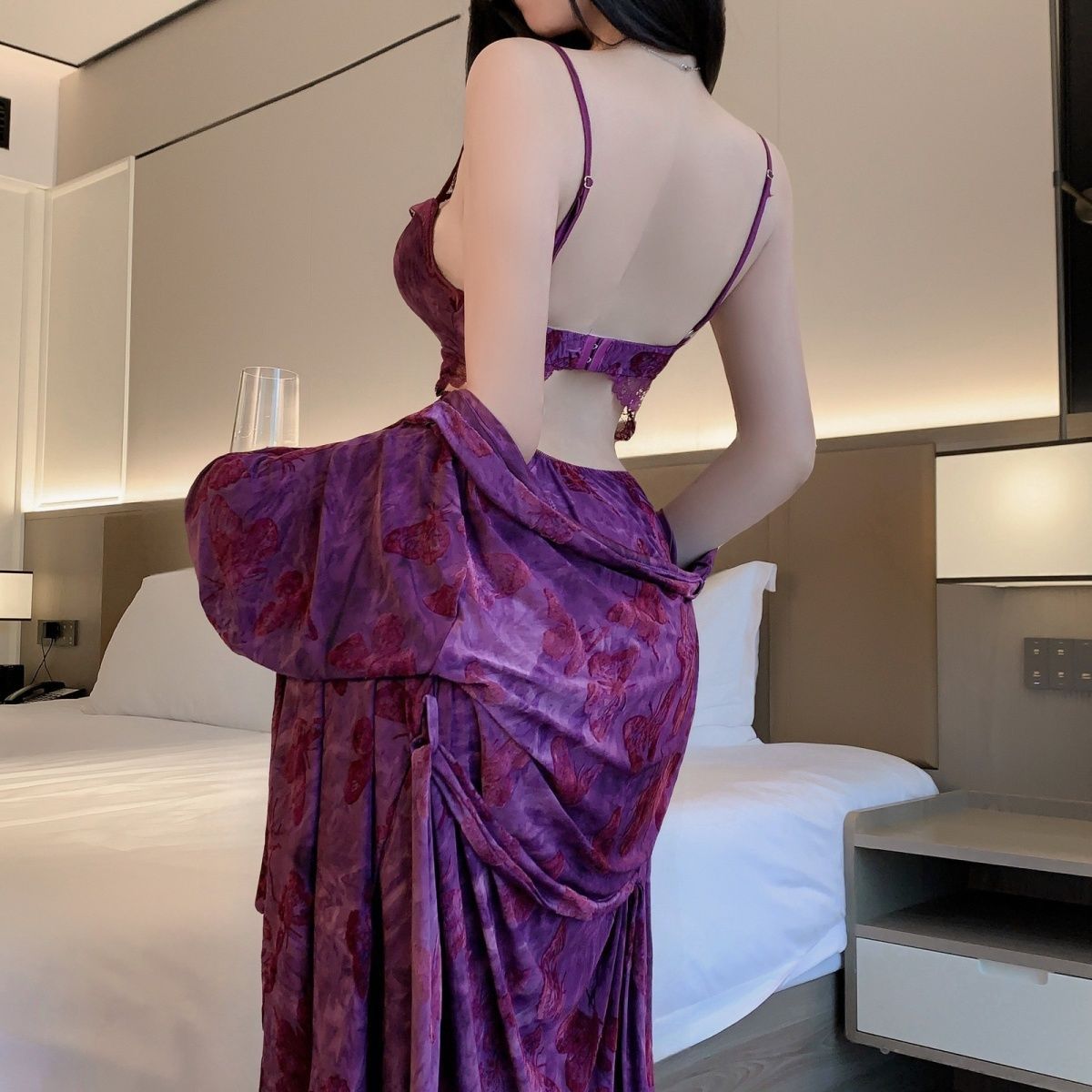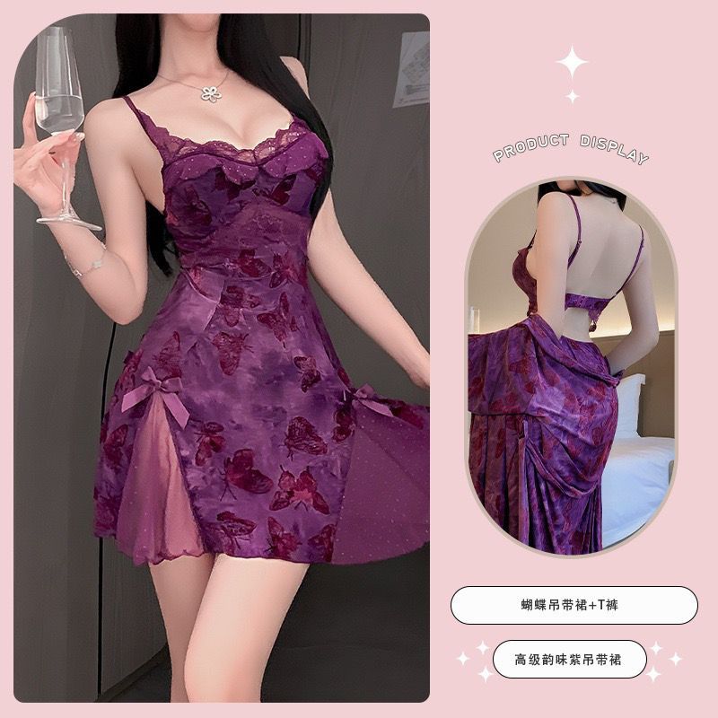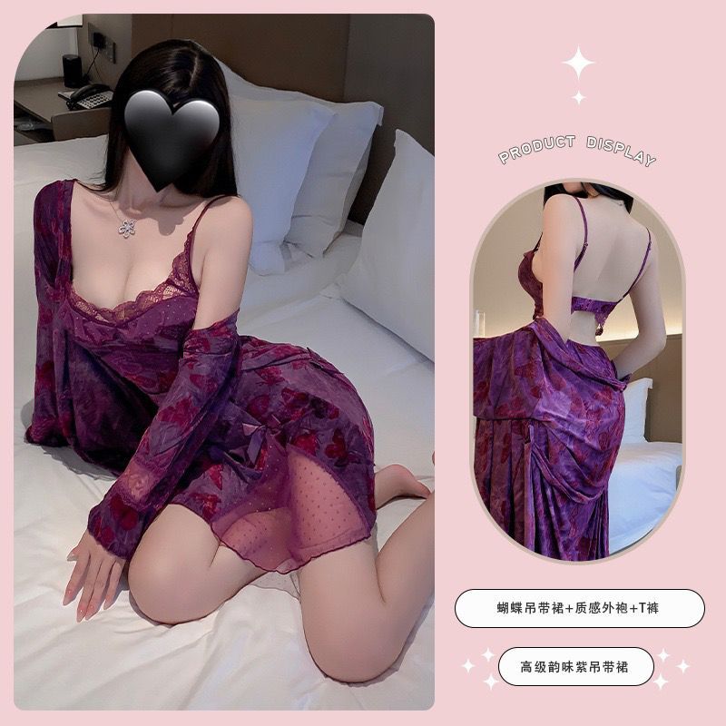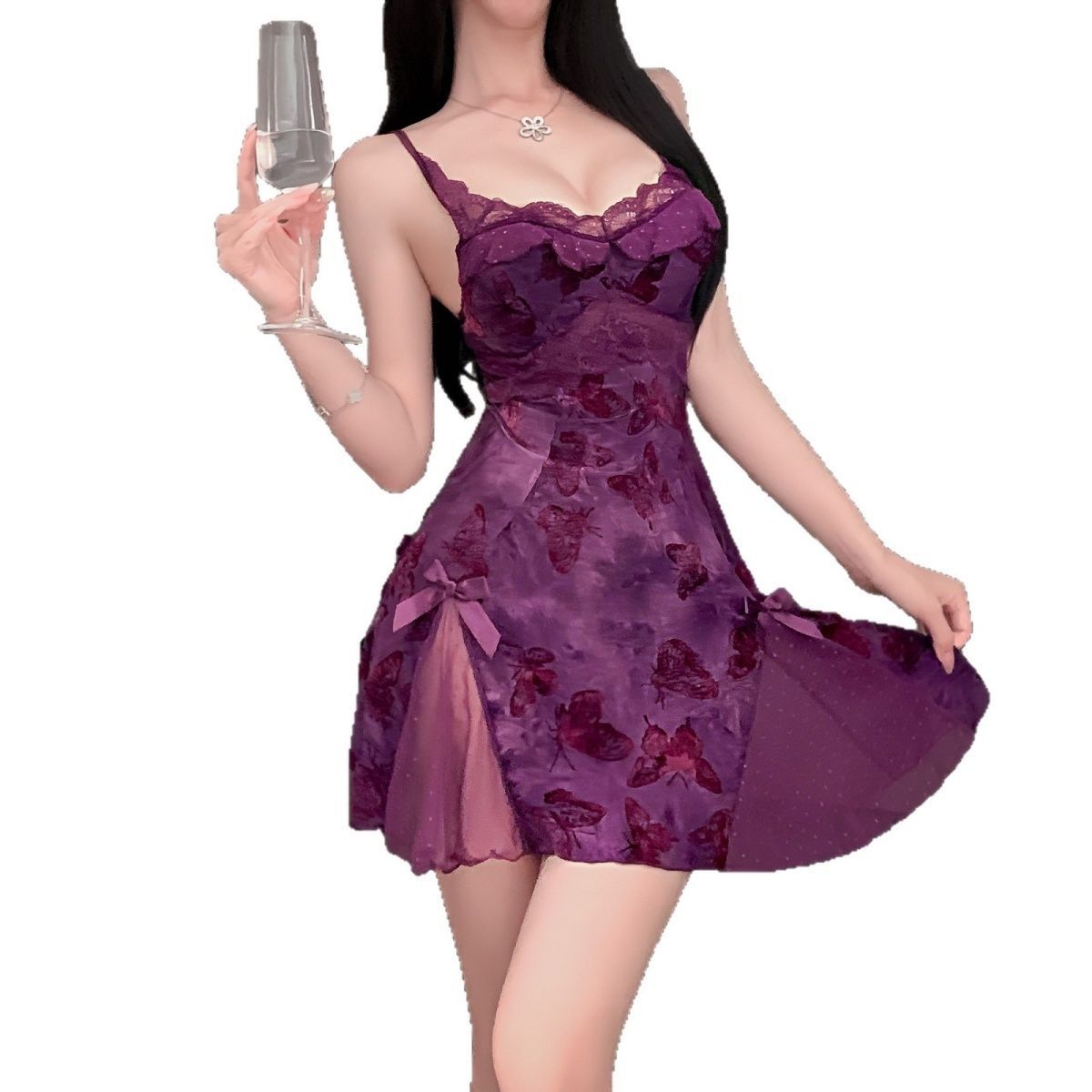 甜美成人睡衣紫色睡衣纯欲风带胸垫睡裙植绒吊带睡袍丙纶其他
