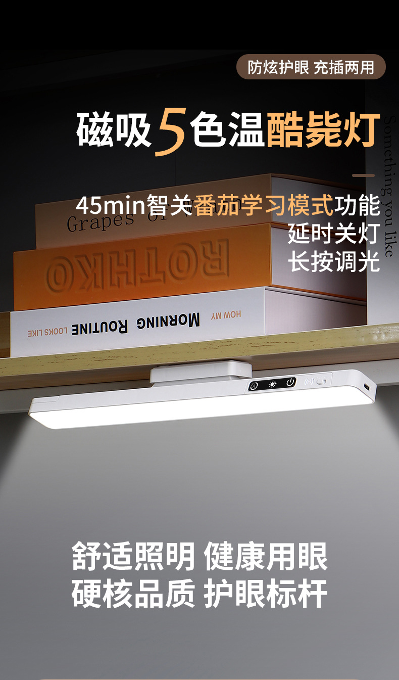 LEDUSB充电台灯宿舍大学生书桌阅读夜灯可调光护眼学习灯智能调光