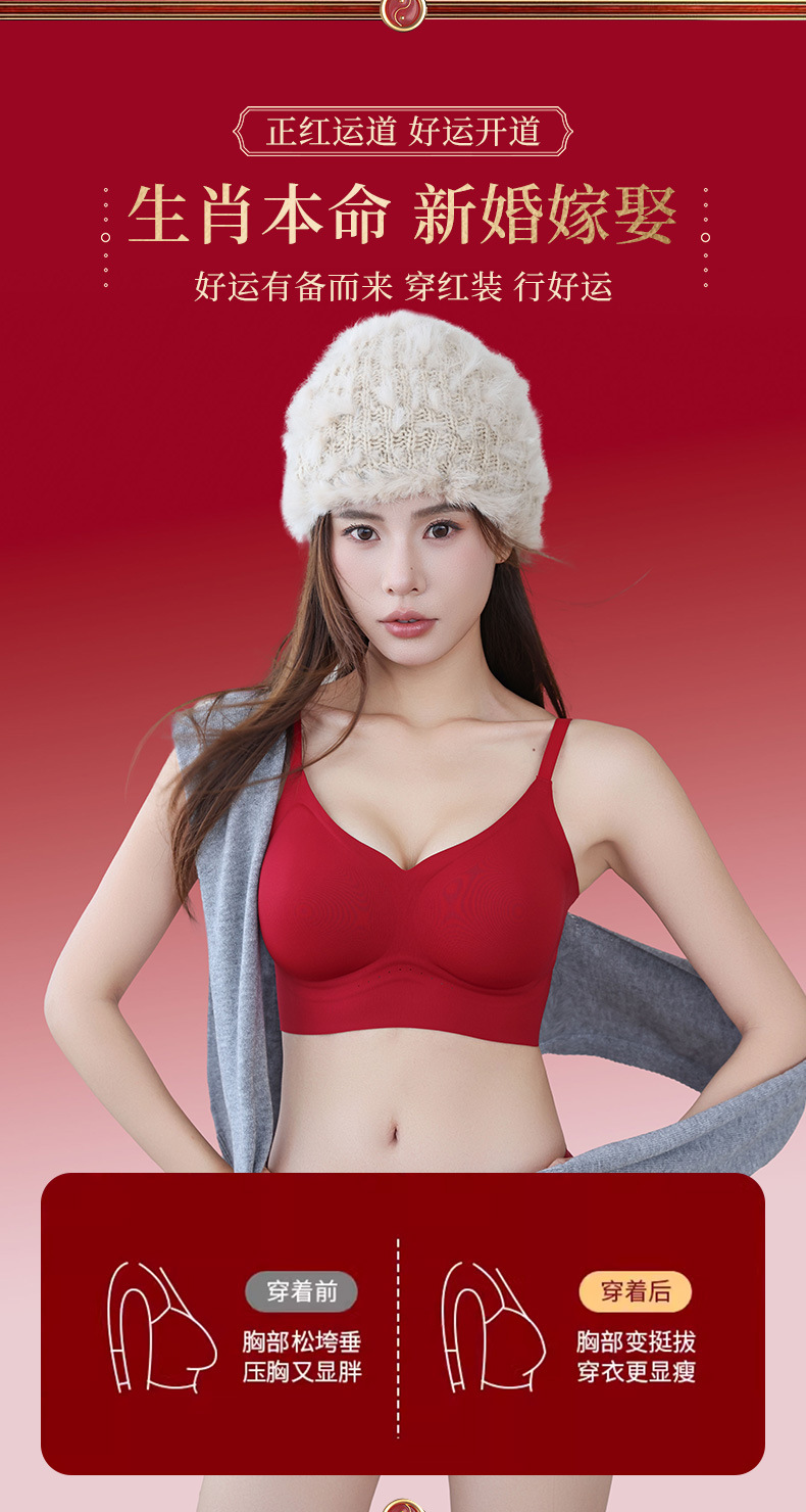 新安可拉红本命年结婚好运内衣套装无钢圈多选择无痕舒适胸罩文胸