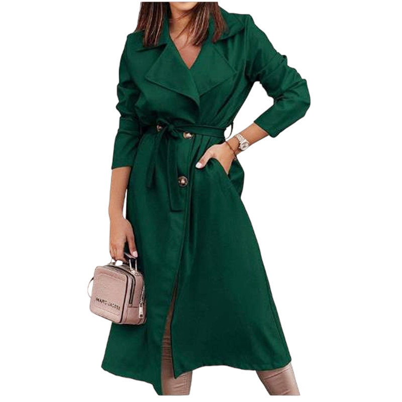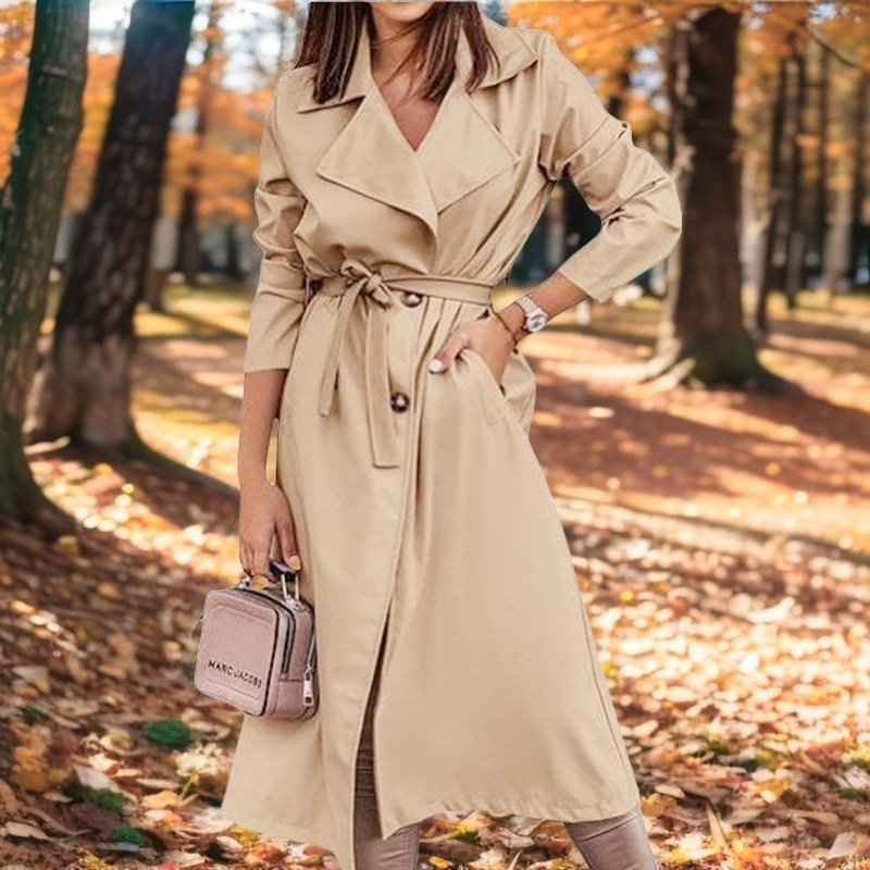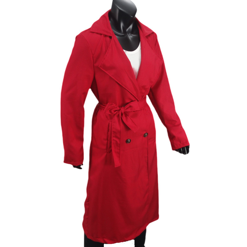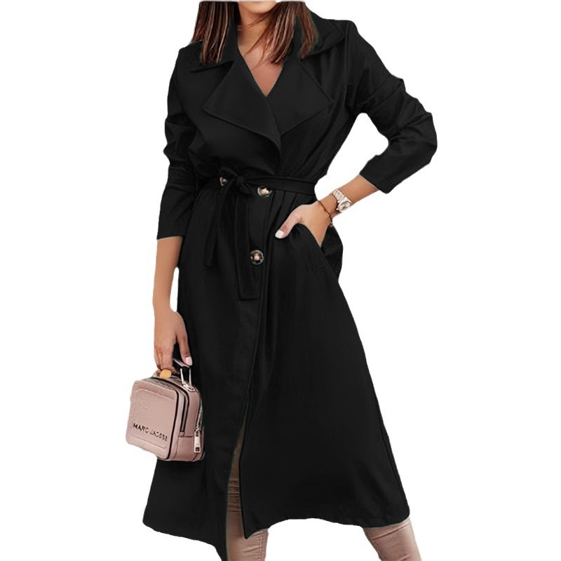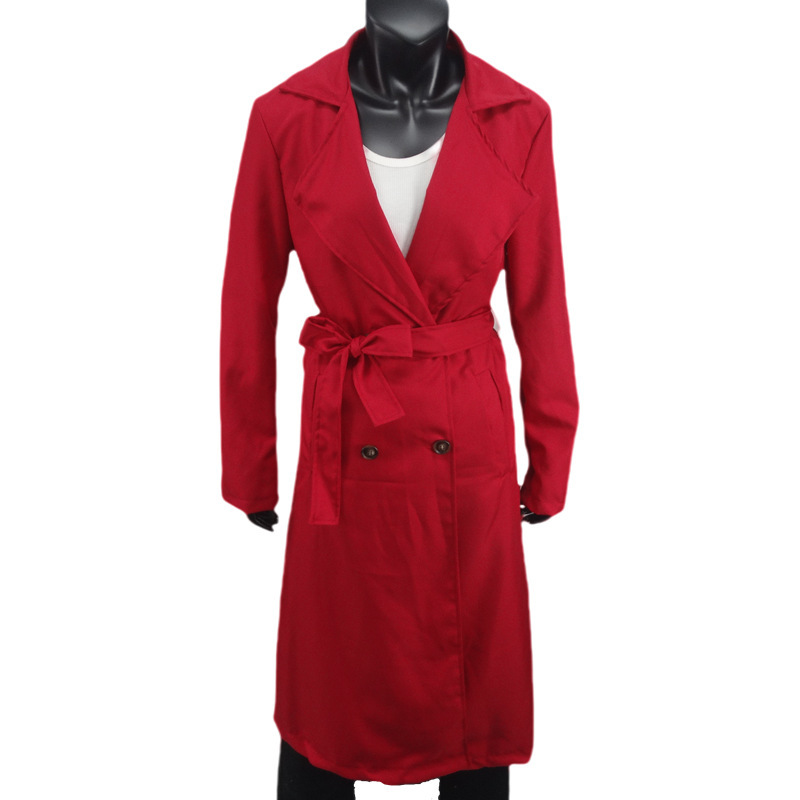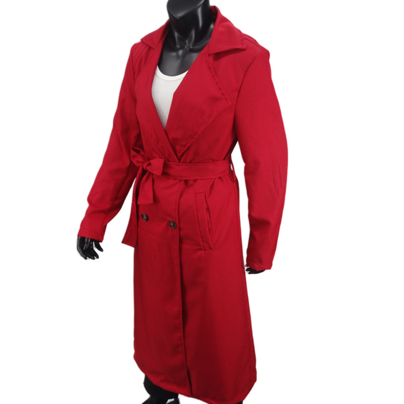 外贸现货新品2024欧洲站加长款女大衣wish亚马逊大码风衣系带外套