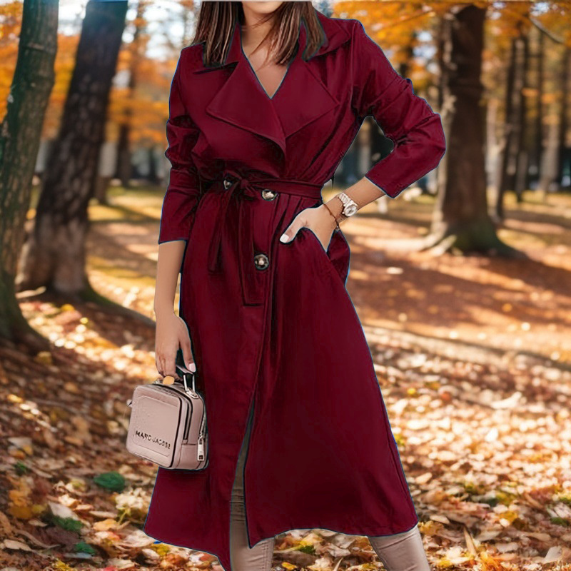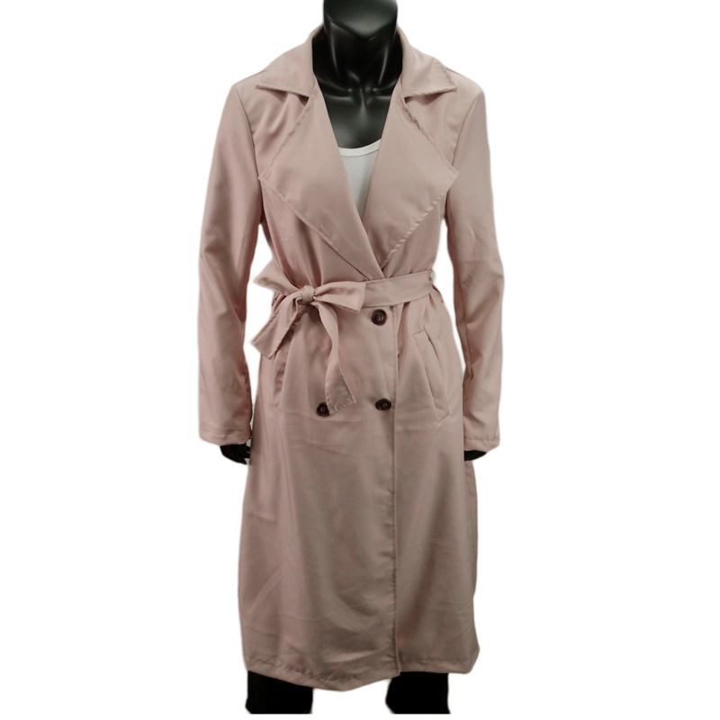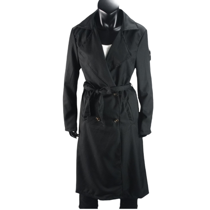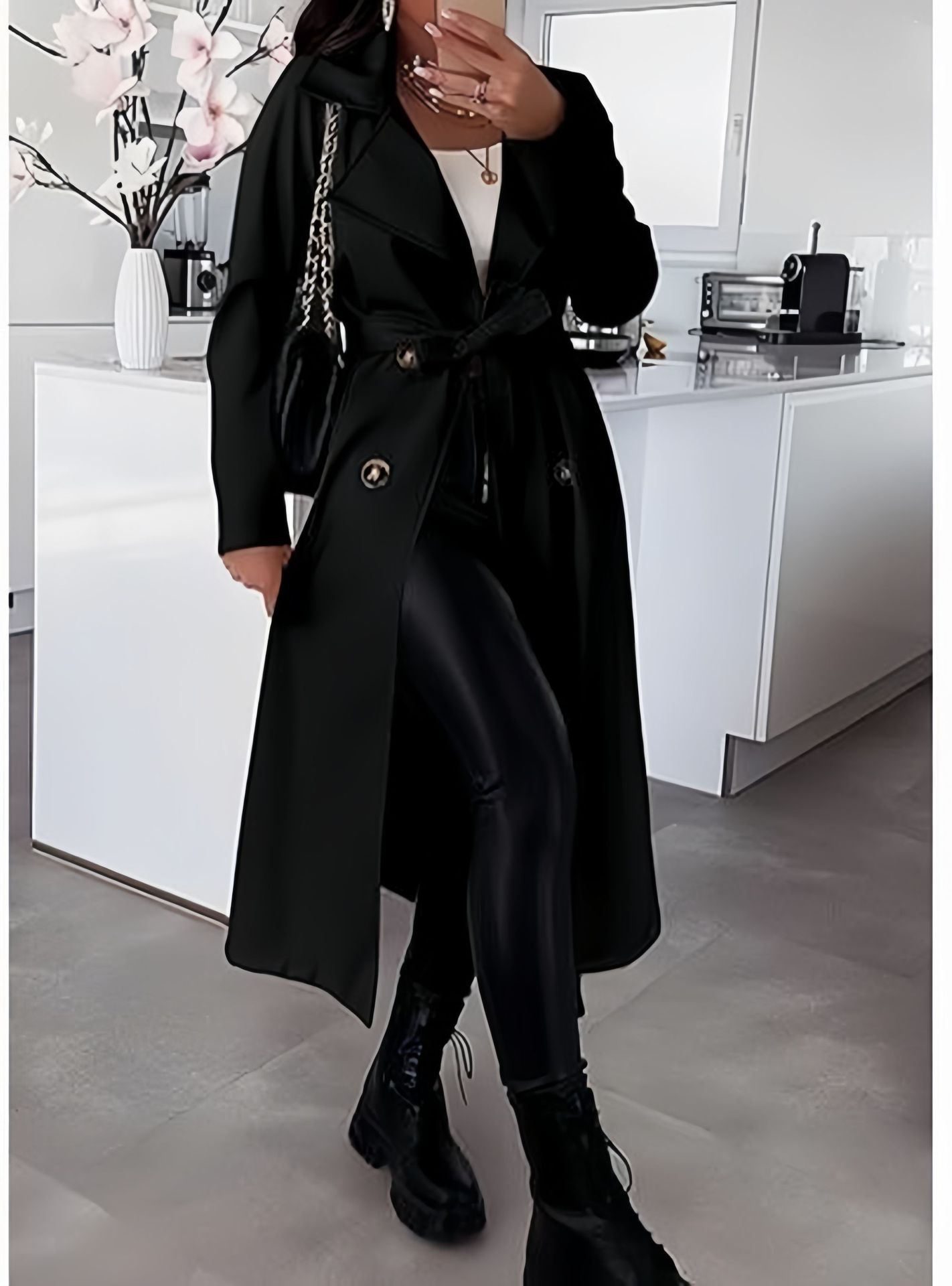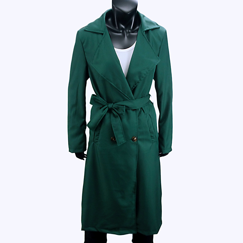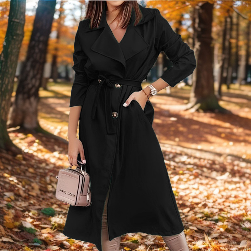 外贸现货新品2024欧洲站加长款女大衣wish亚马逊大码风衣系带外套