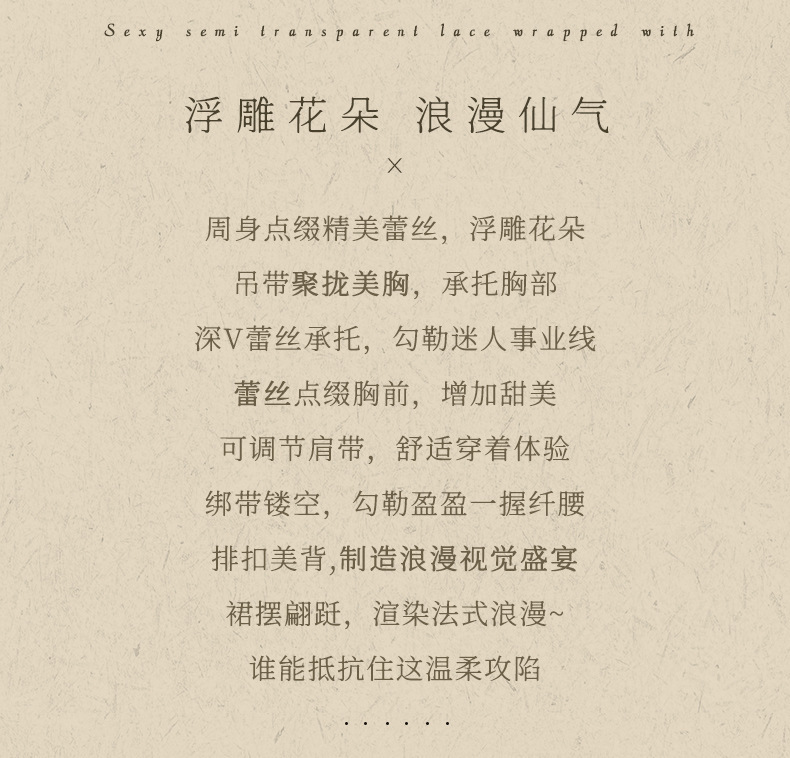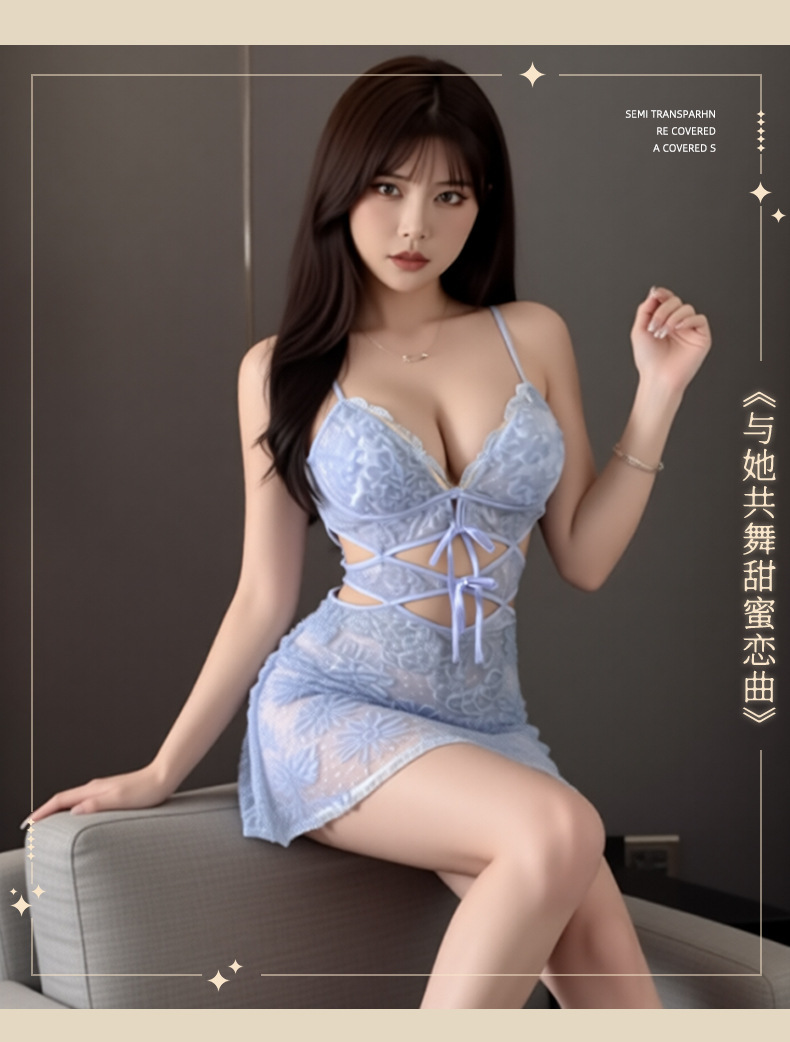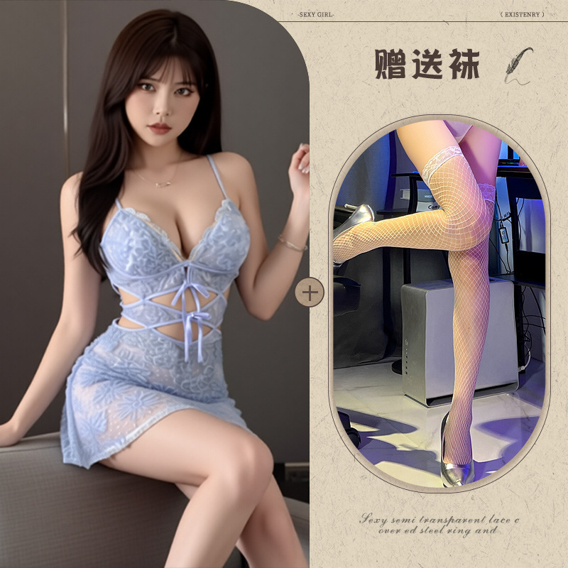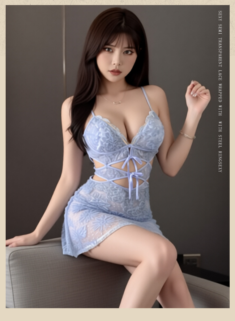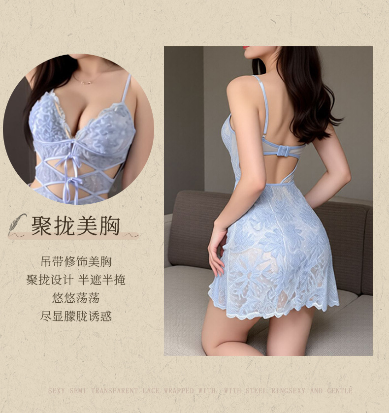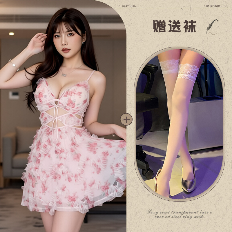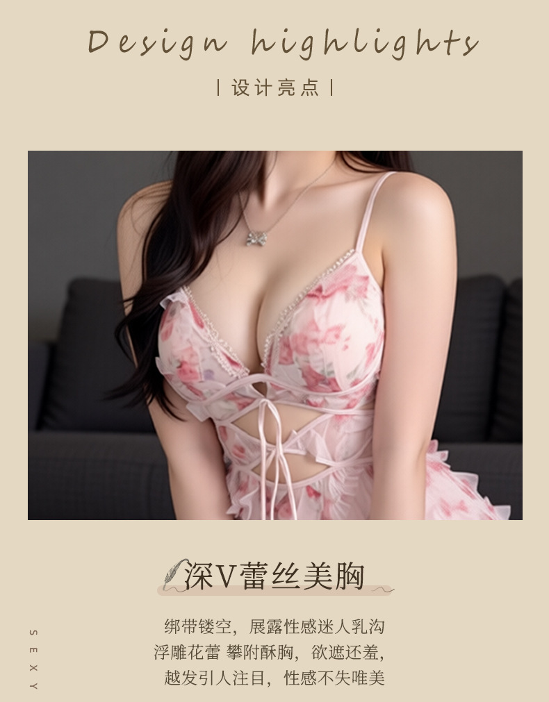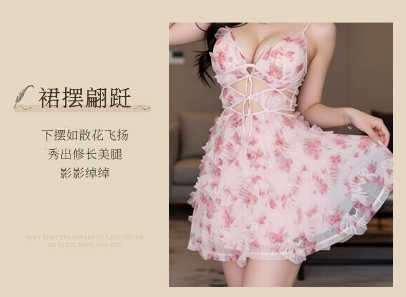 春山梦性感睡衣纯欲风短裙浮雕花粉镂空诱惑蕾丝网纱吊带睡裙套装