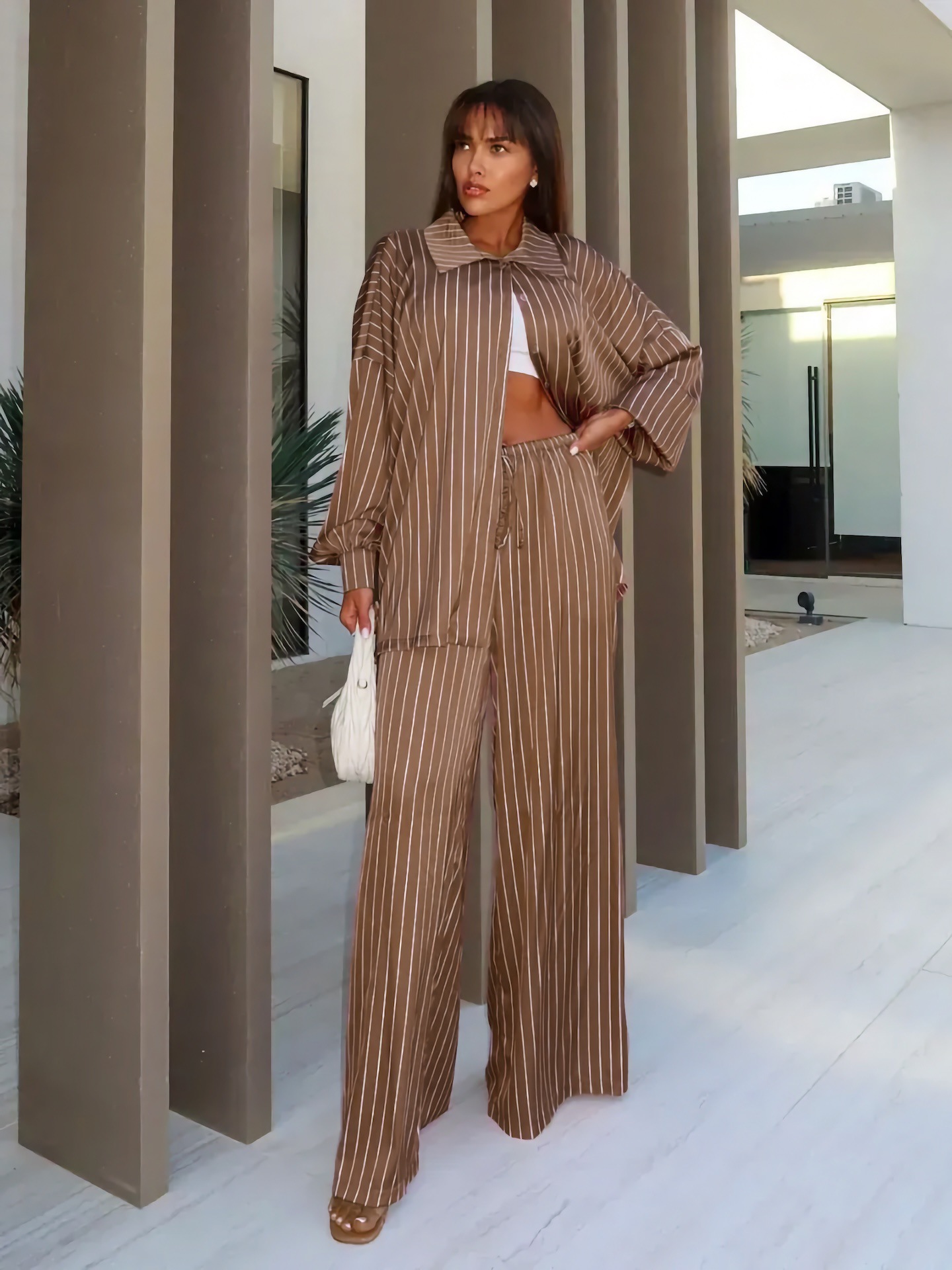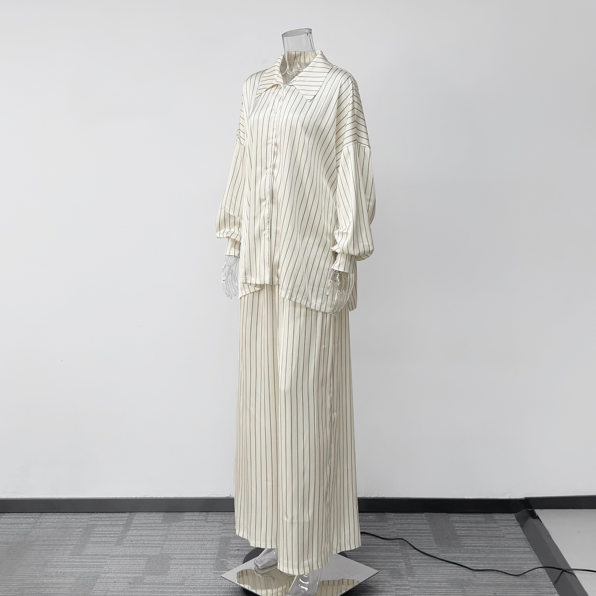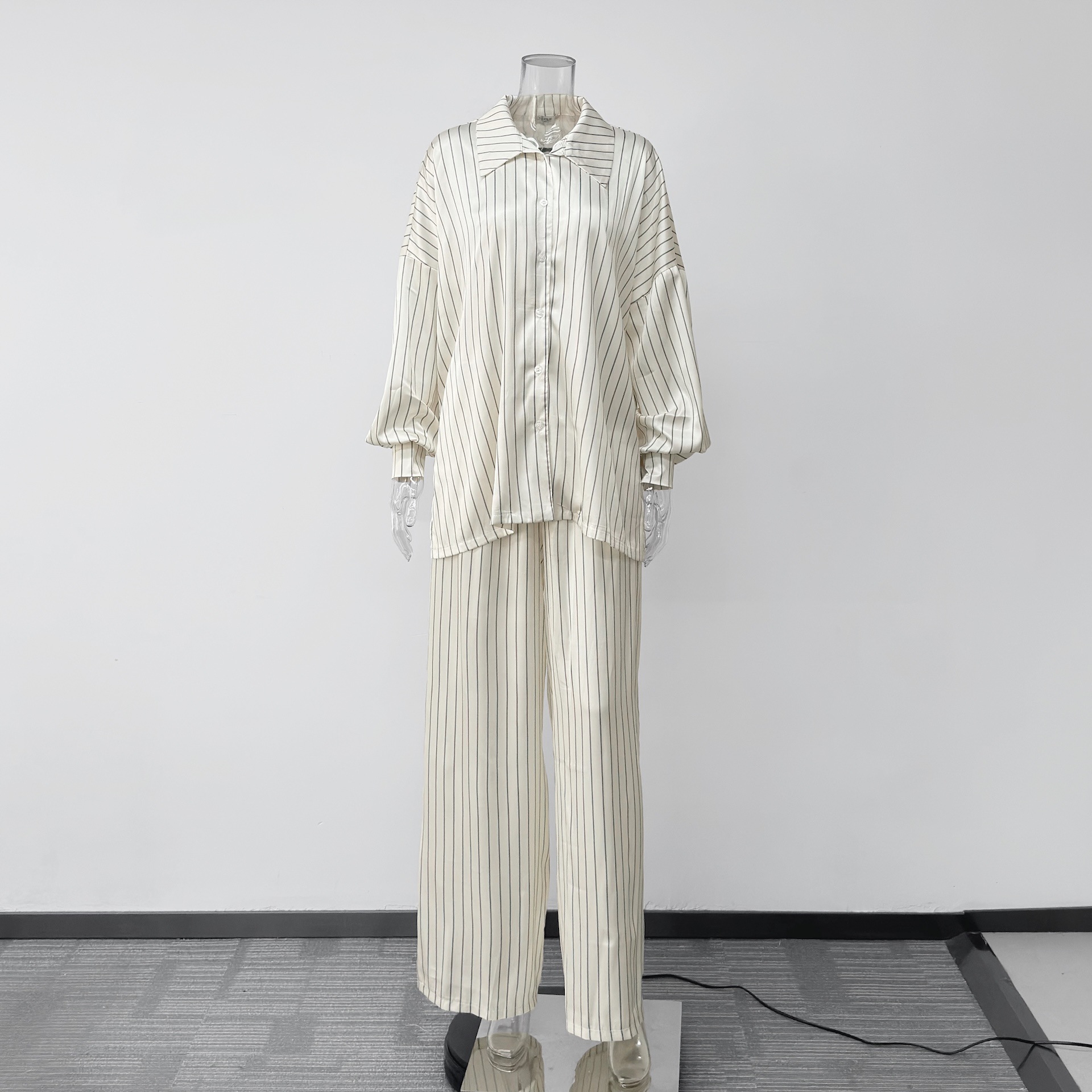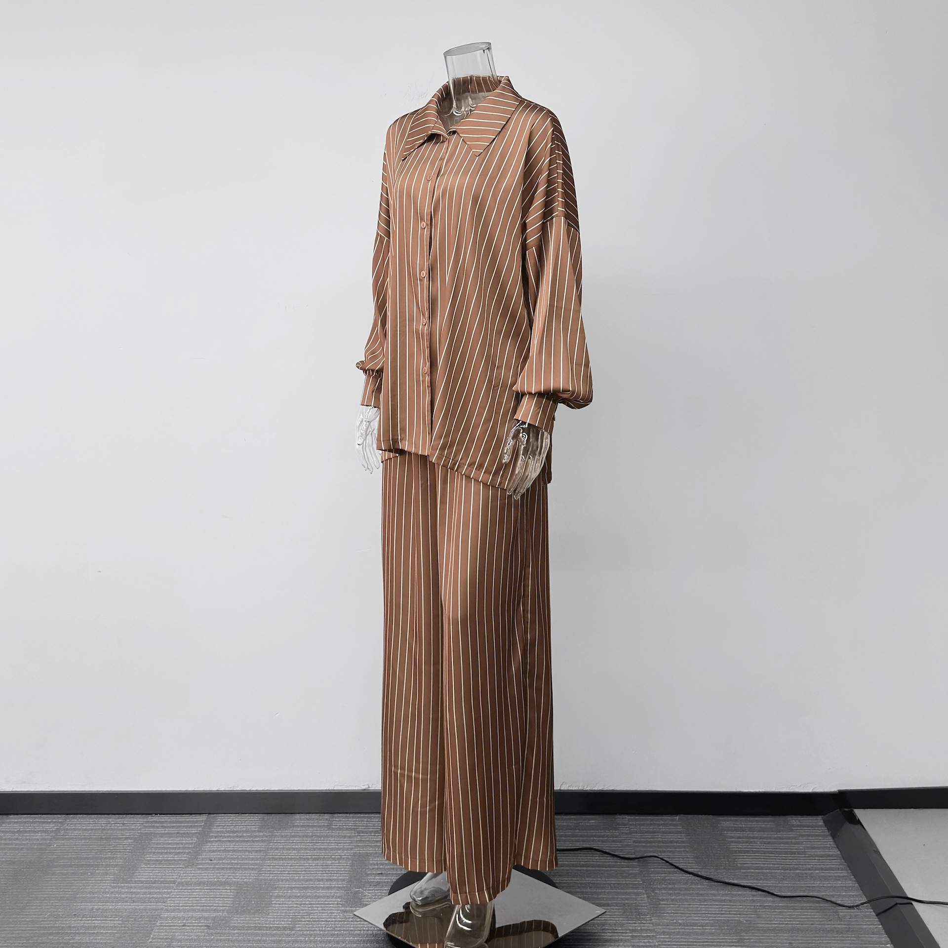 欧美亚马逊跨境2026新款时尚女装休闲家居舒适条纹开衫长裤套装女
