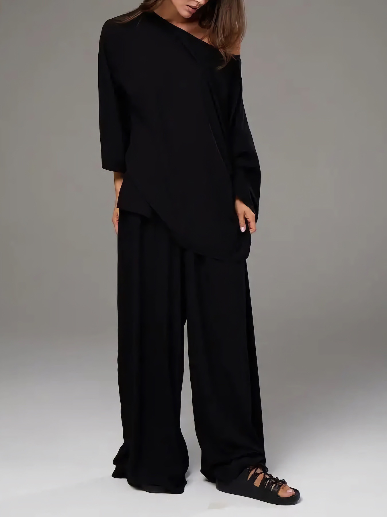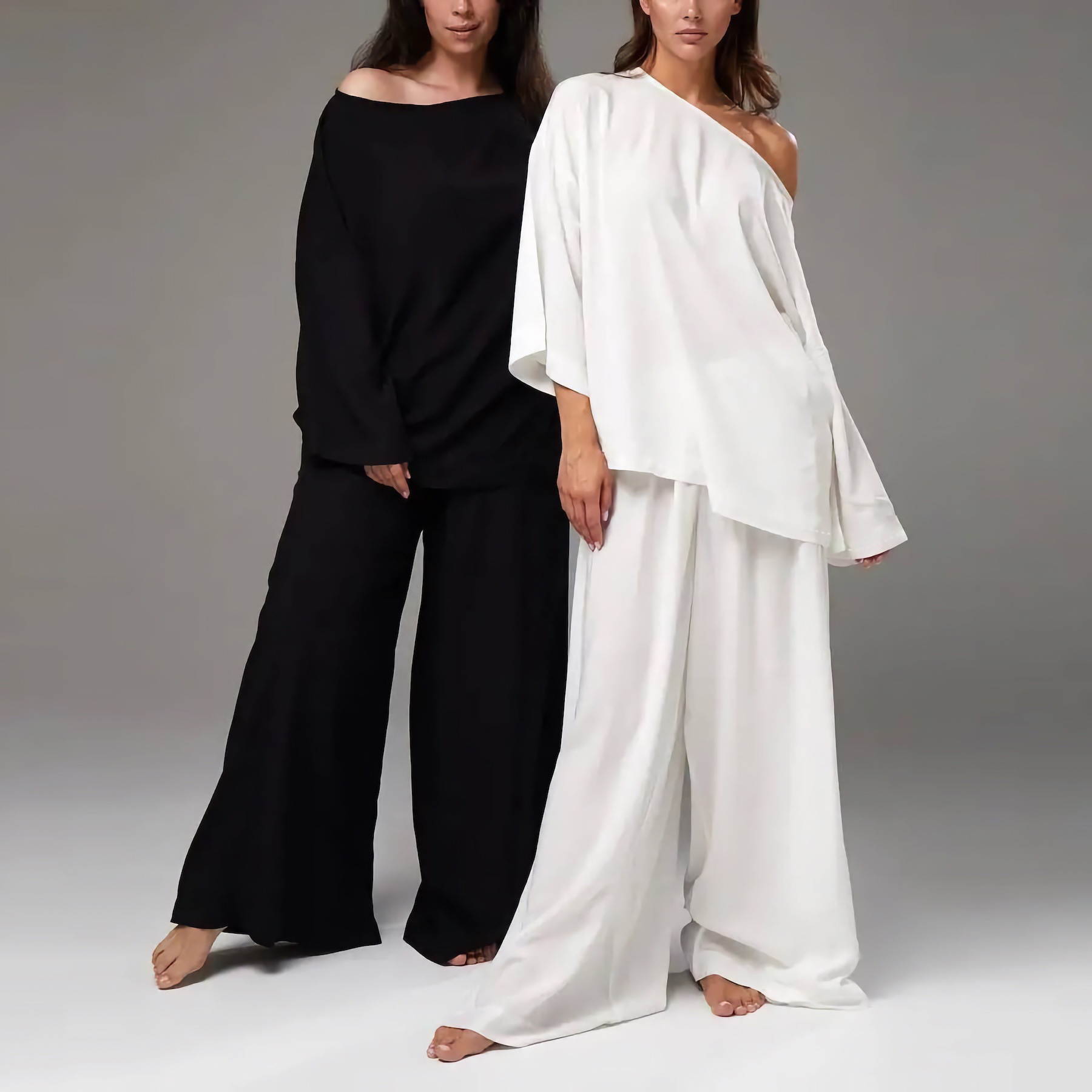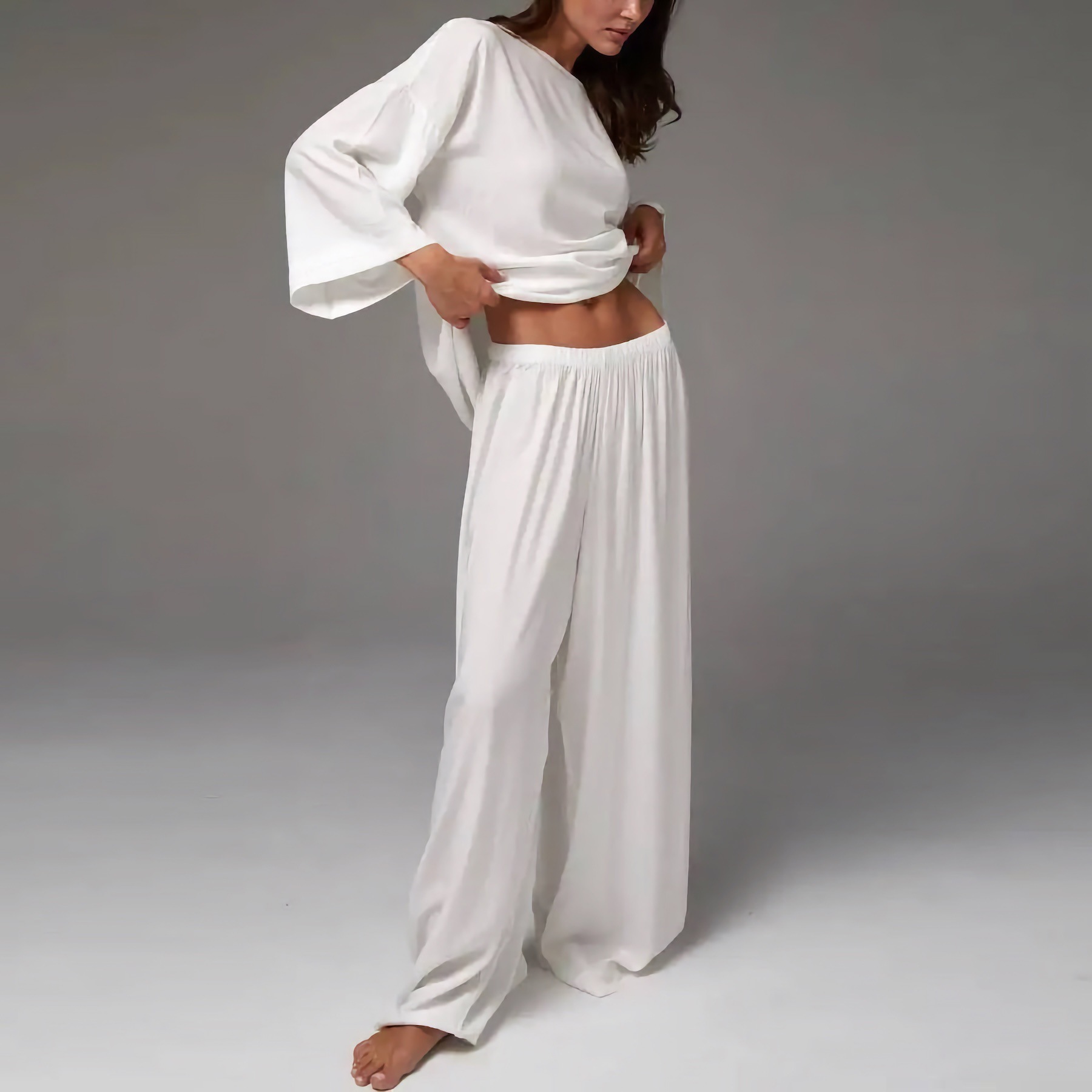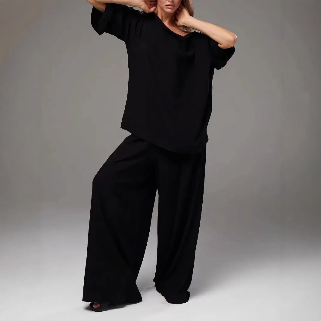 外贸跨境法式高级感简约洋气大码时尚慵懒宽松家居服女休闲套装女
