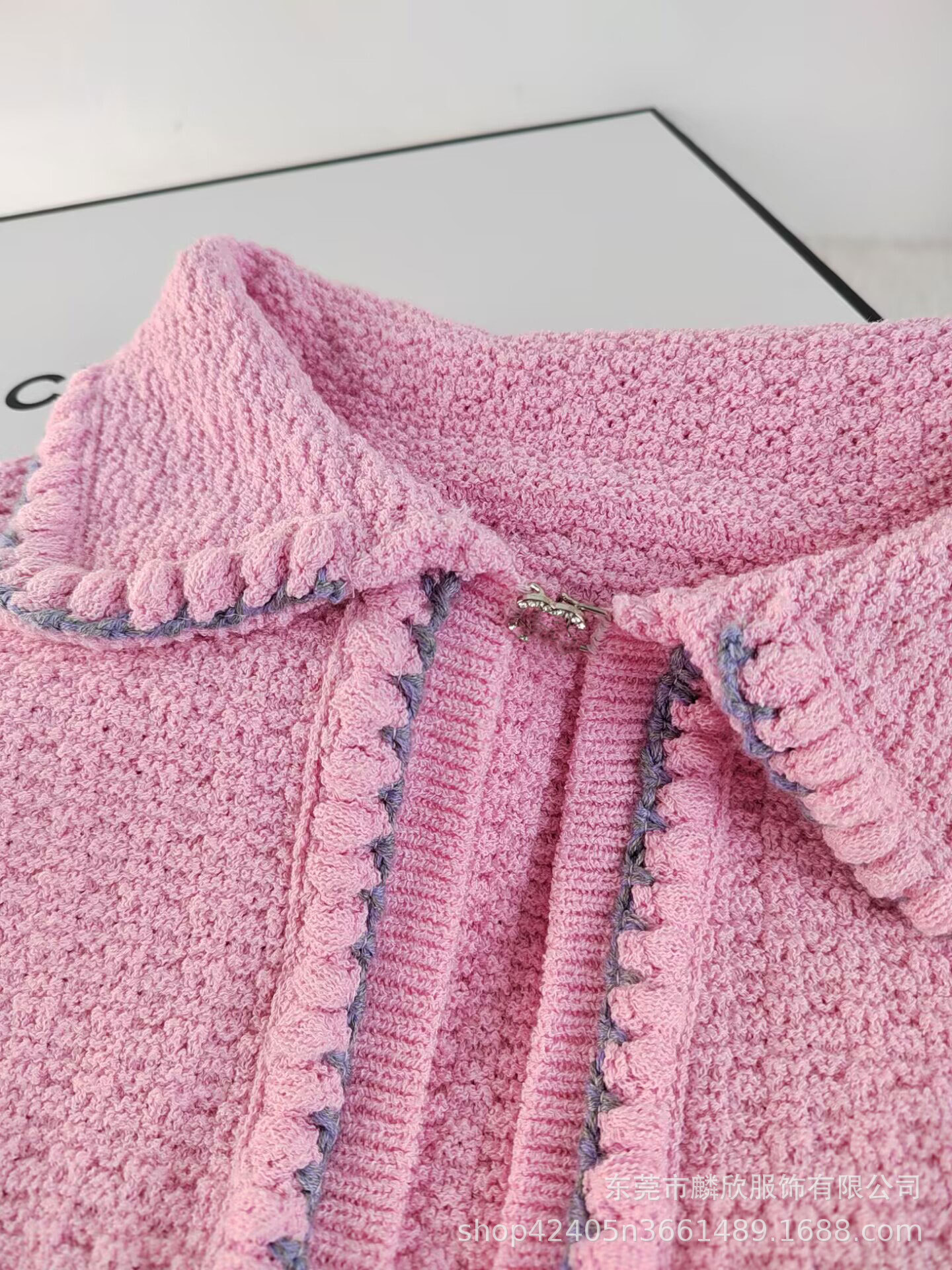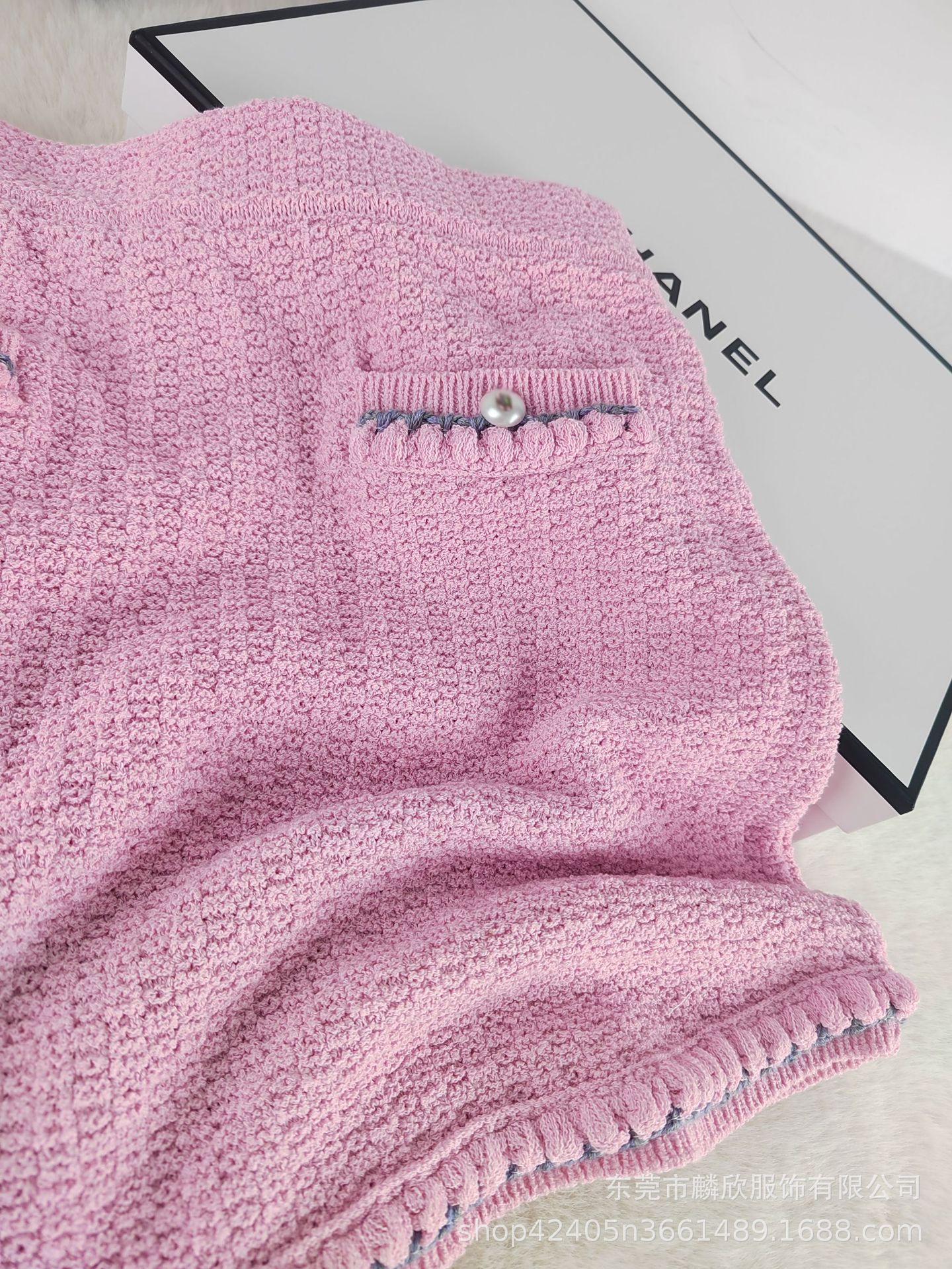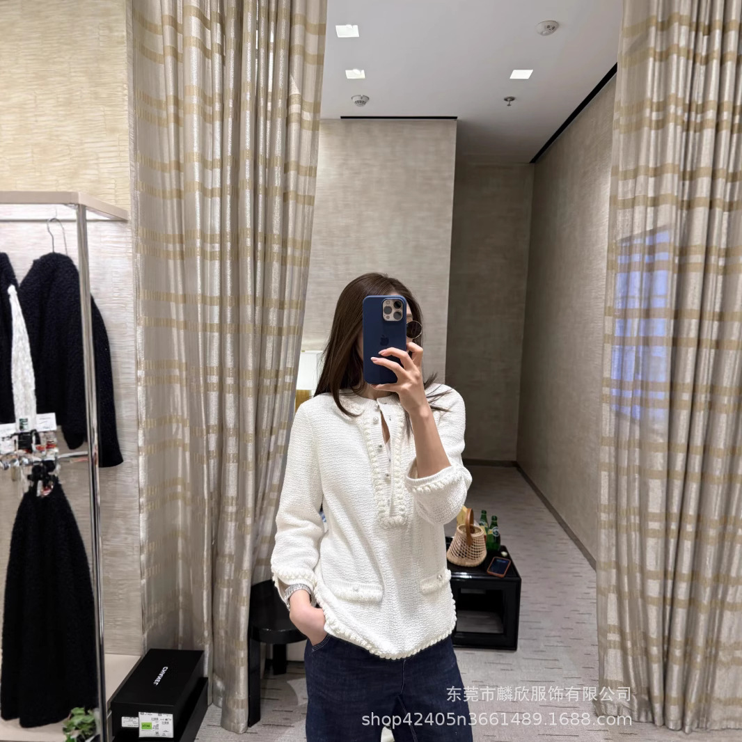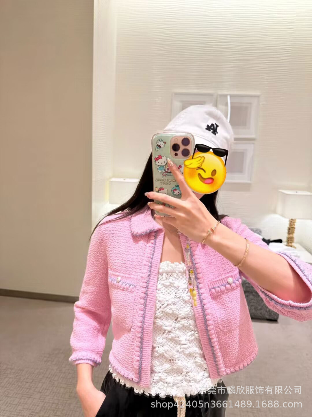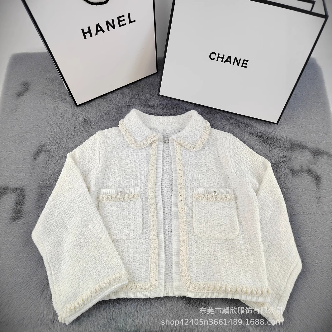 早春新款小香风珍珠扣圆领重工珠链条装饰白色短款外套上衣半裙