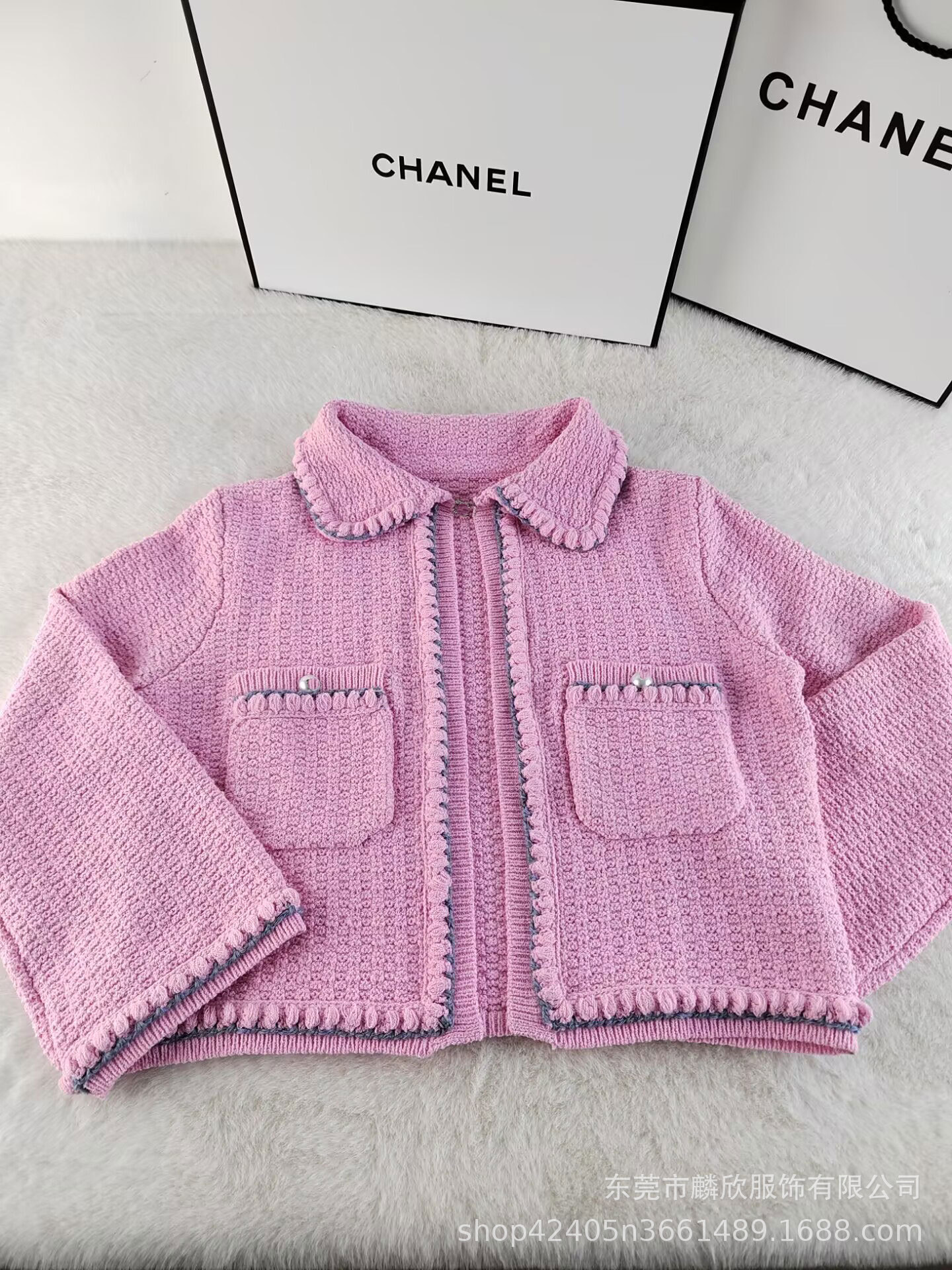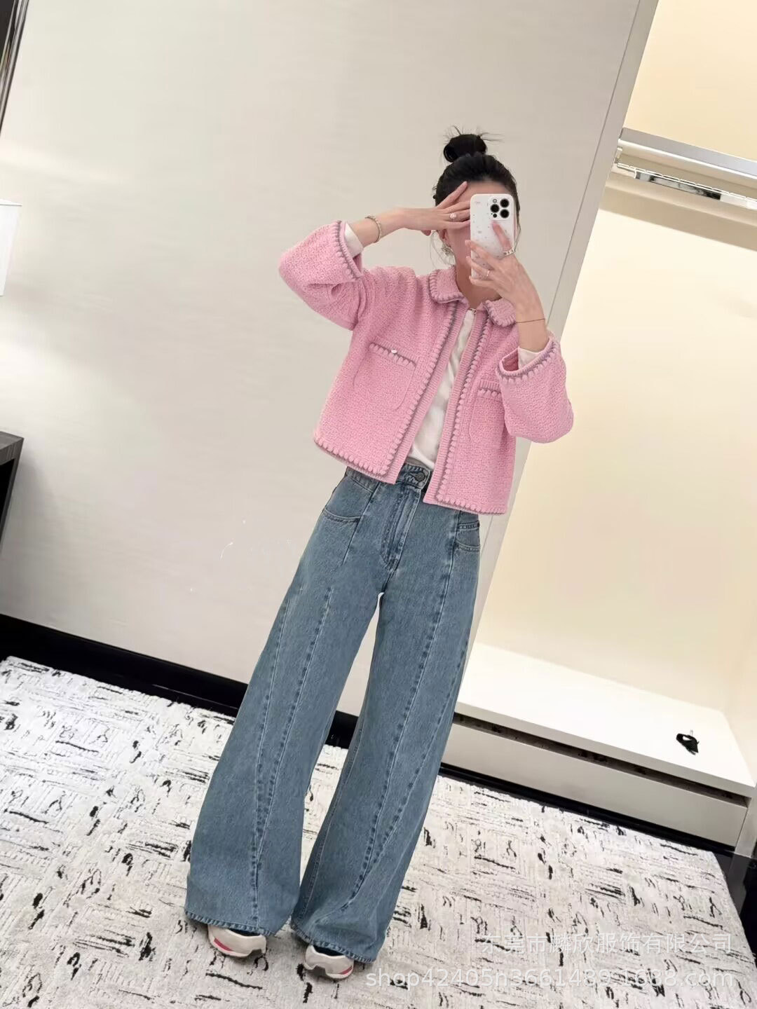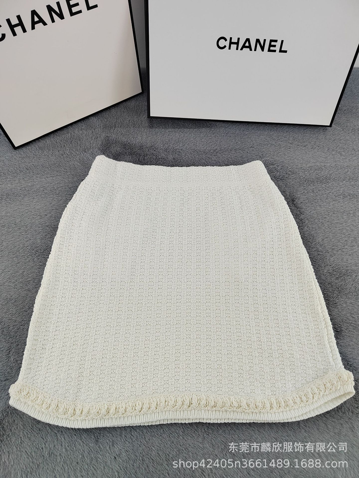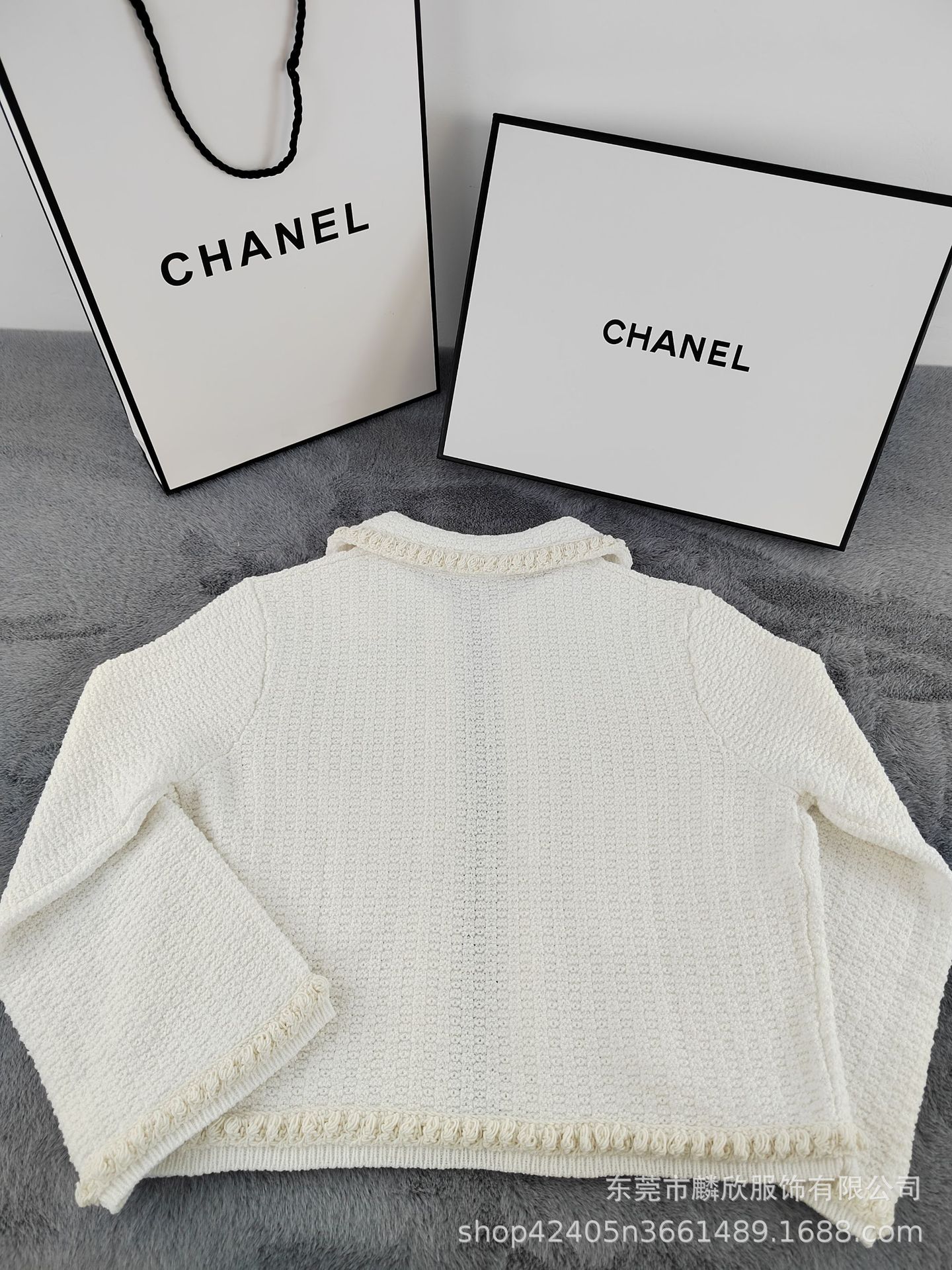 早春新款小香风珍珠扣圆领重工珠链条装饰白色短款外套上衣半裙
