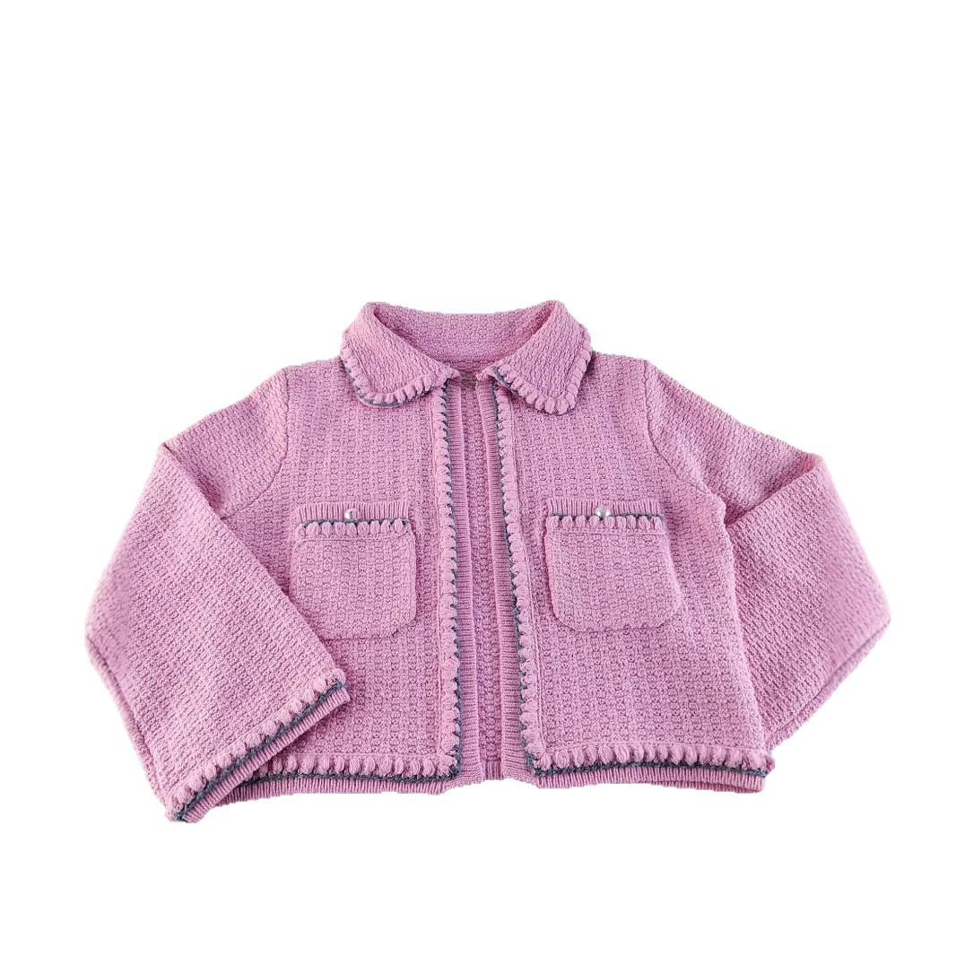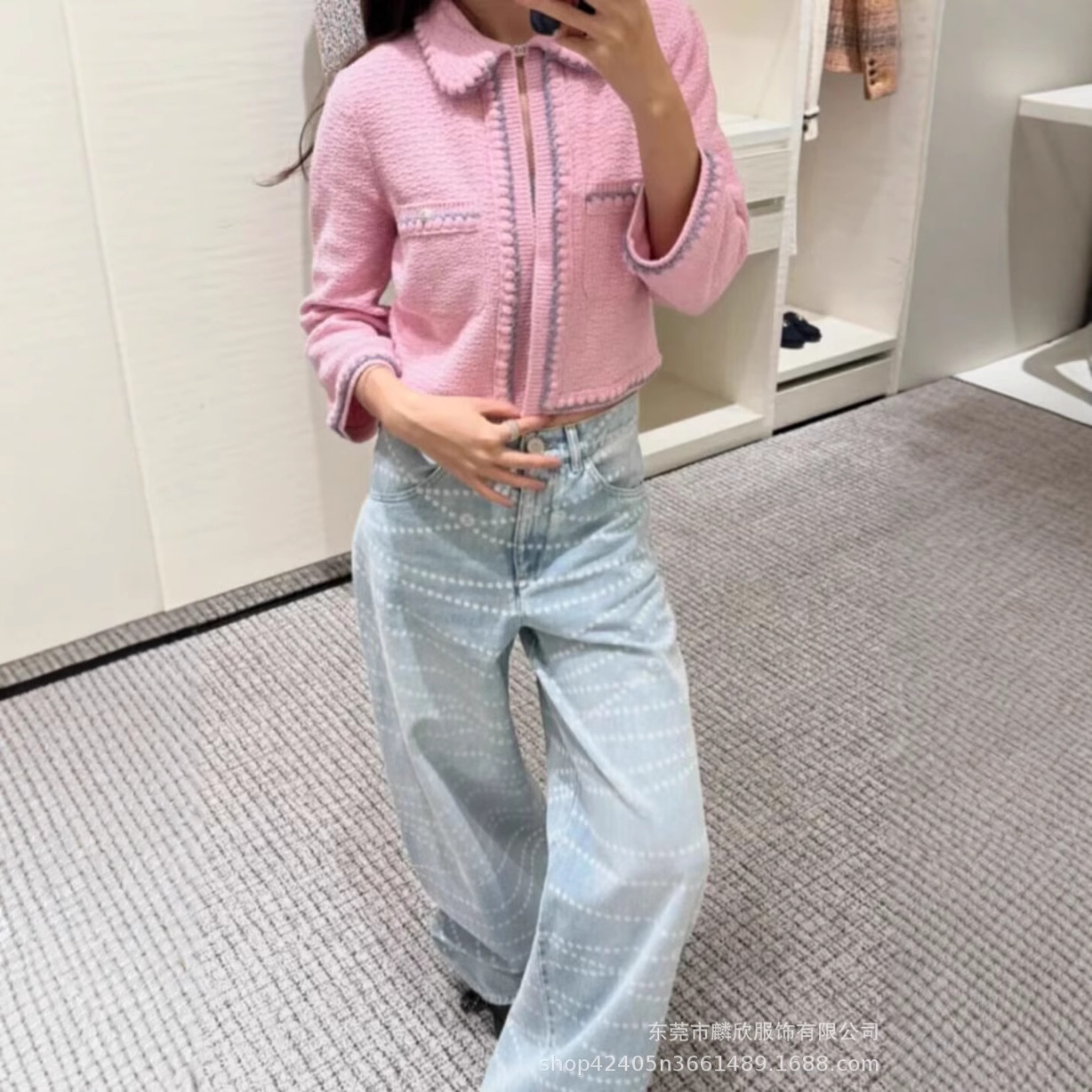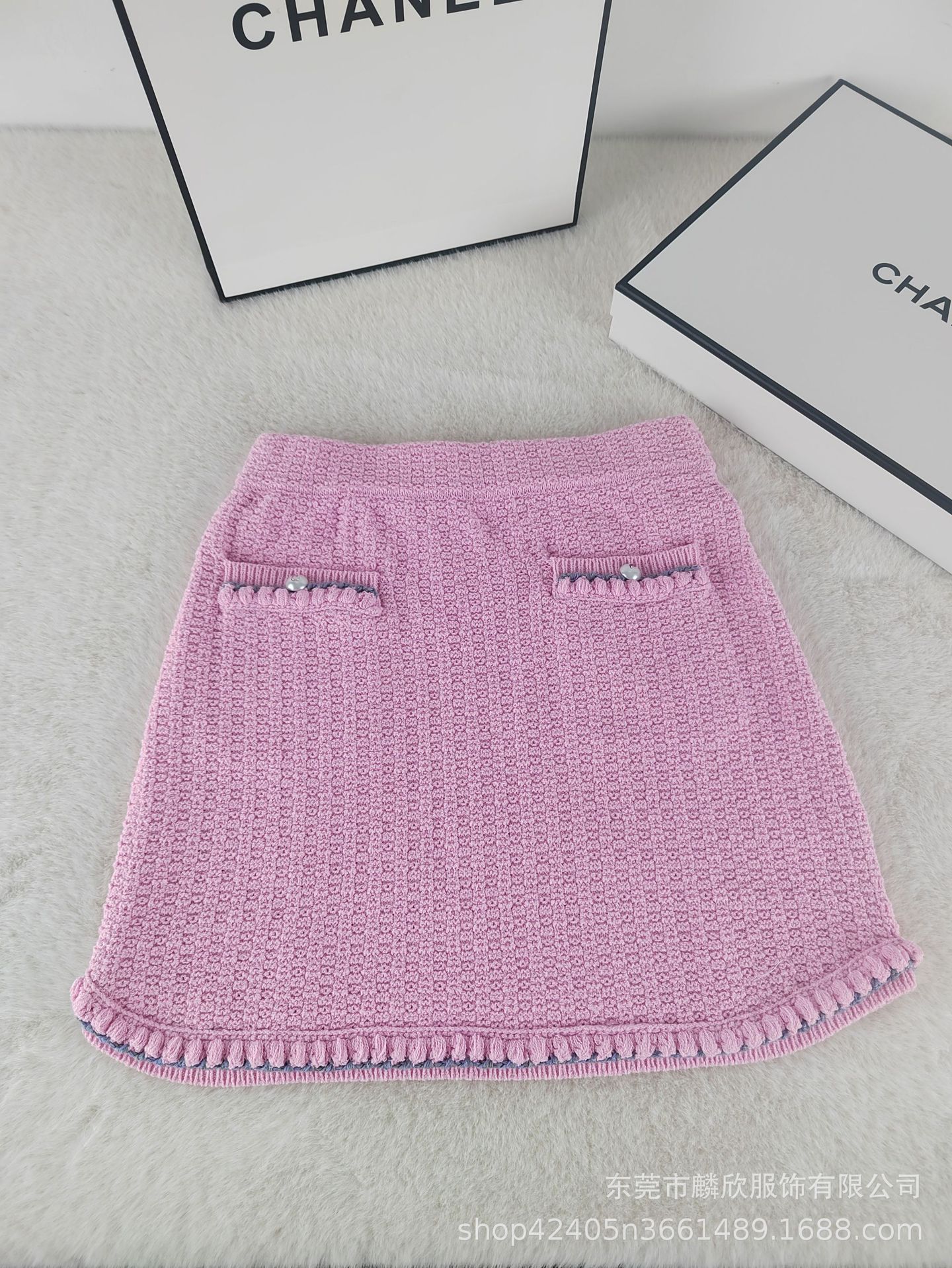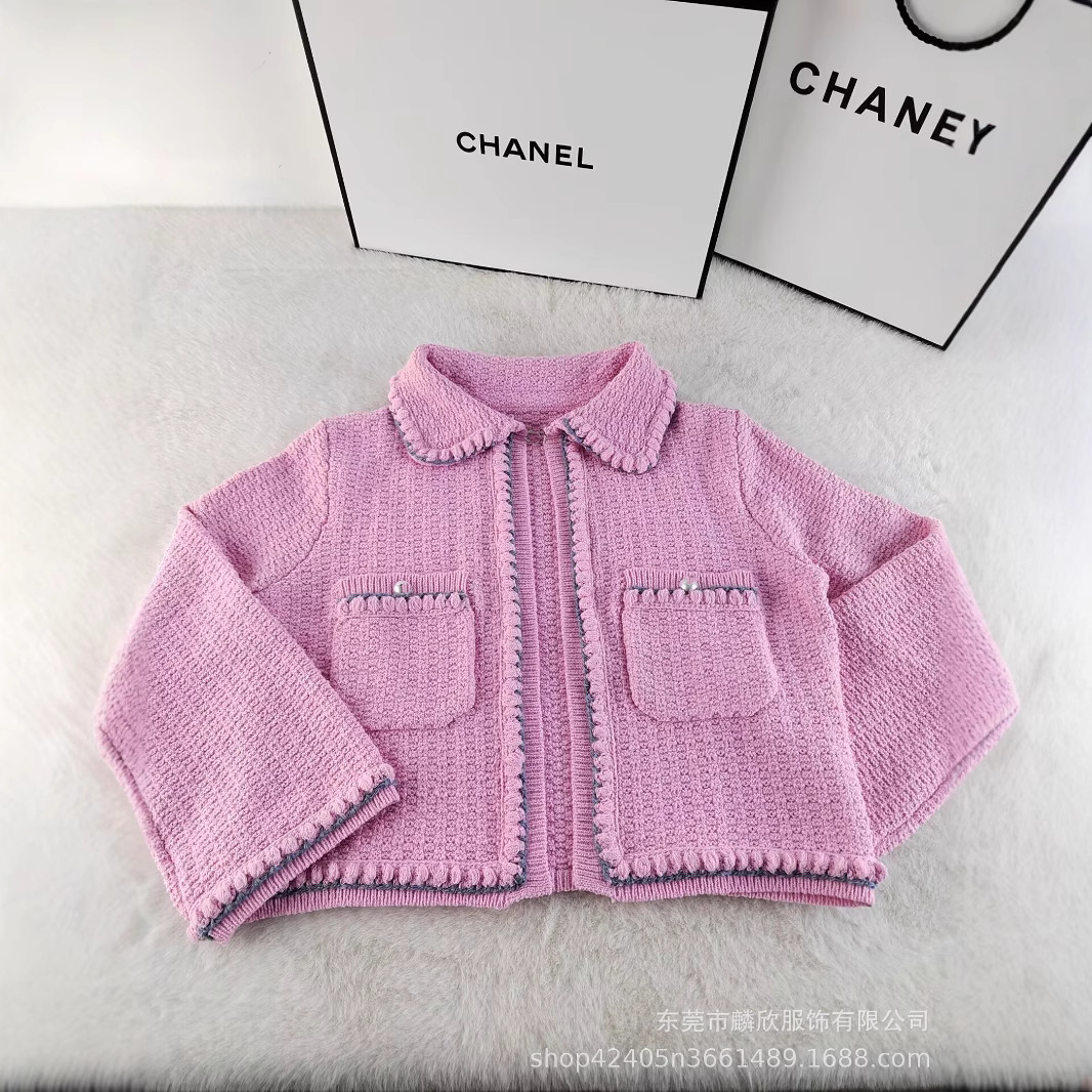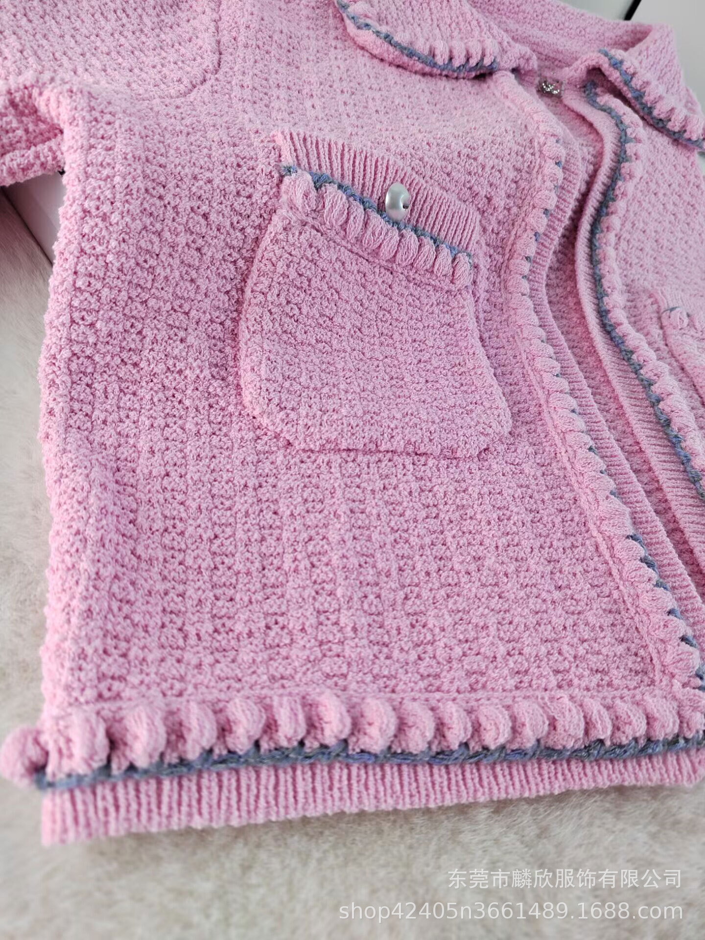 早春新款小香风珍珠扣圆领重工珠链条装饰白色短款外套上衣半裙