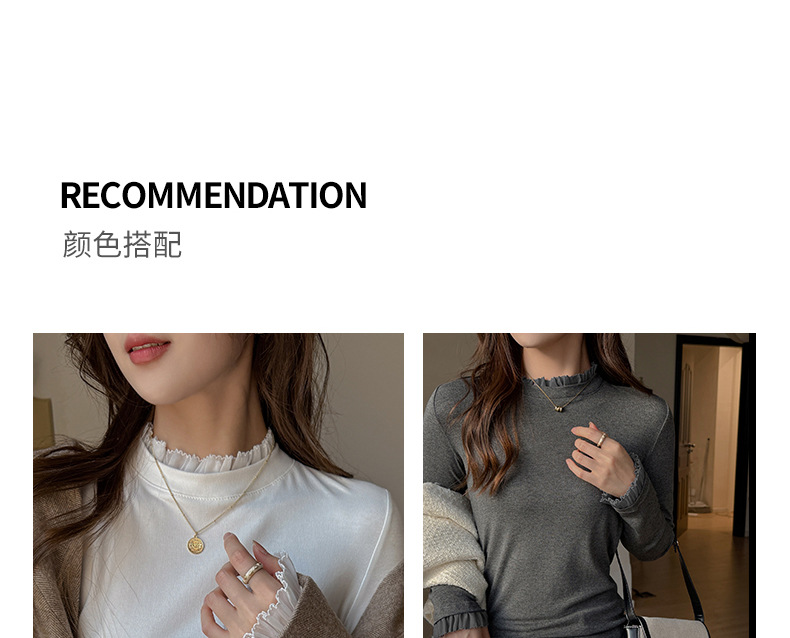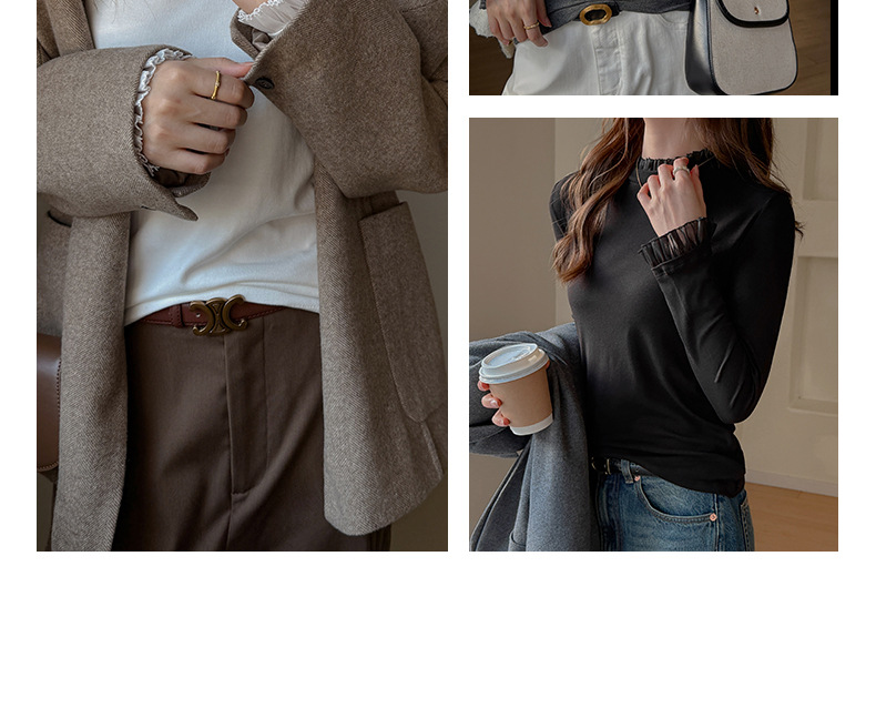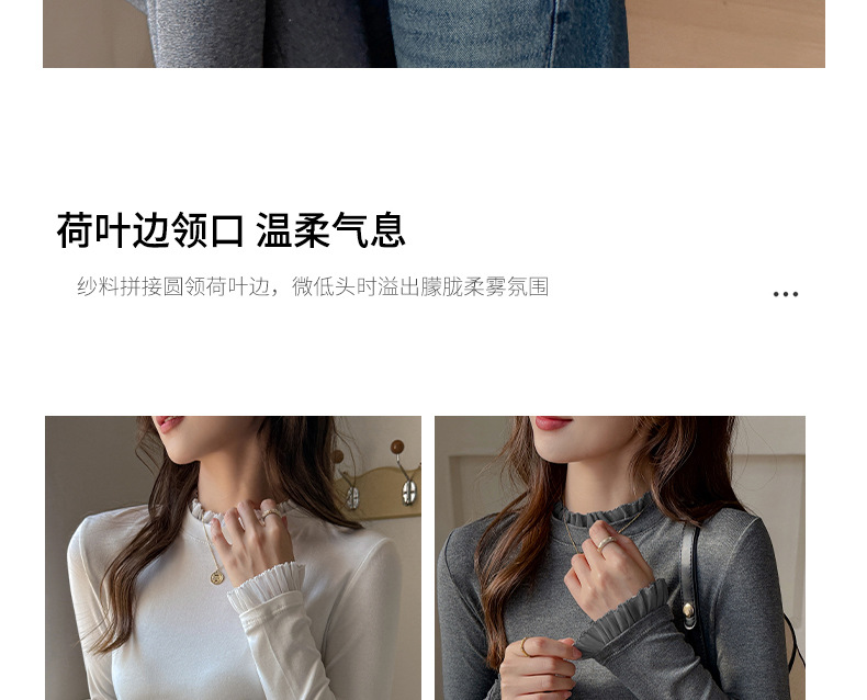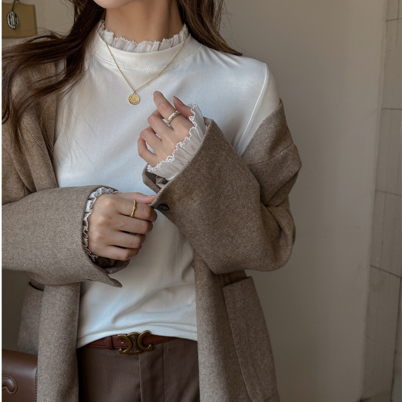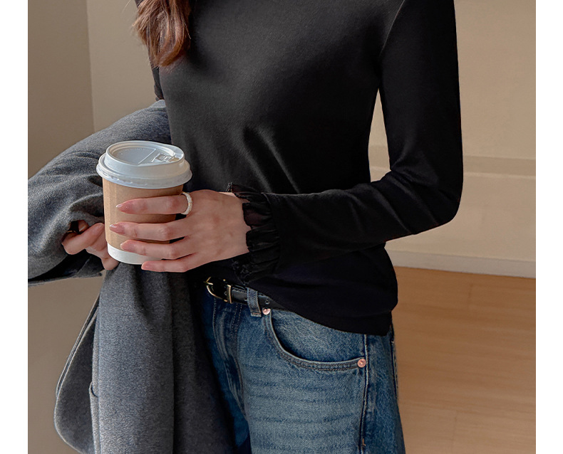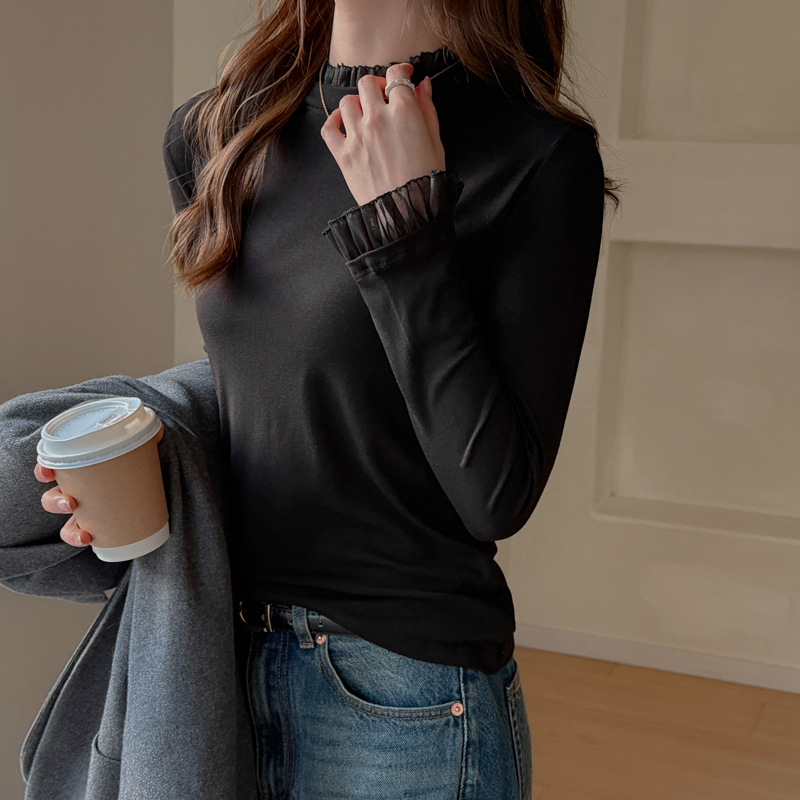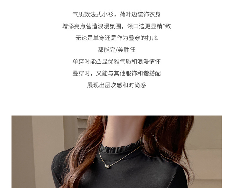 W新款莫代尔女士打底衫秋冬韩系简约小立领花边袖设计感内搭上衣