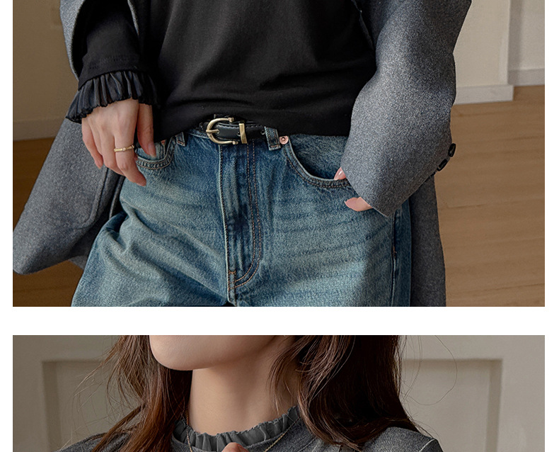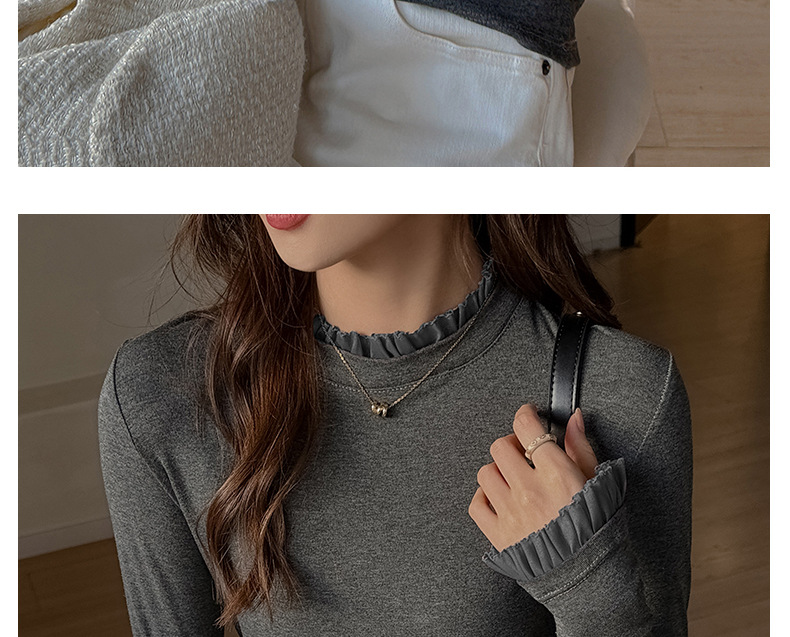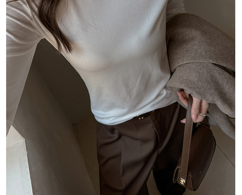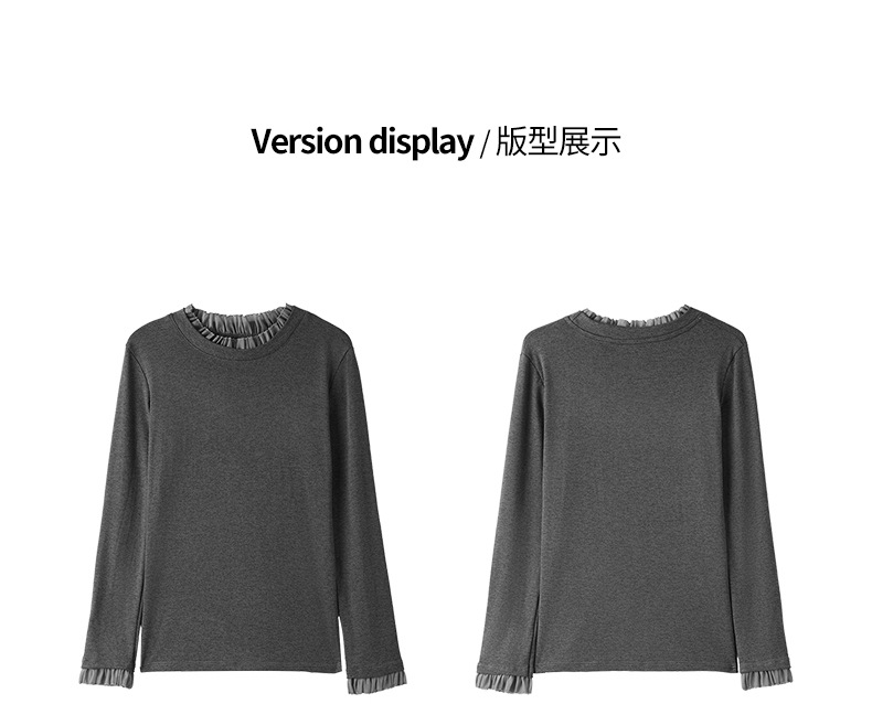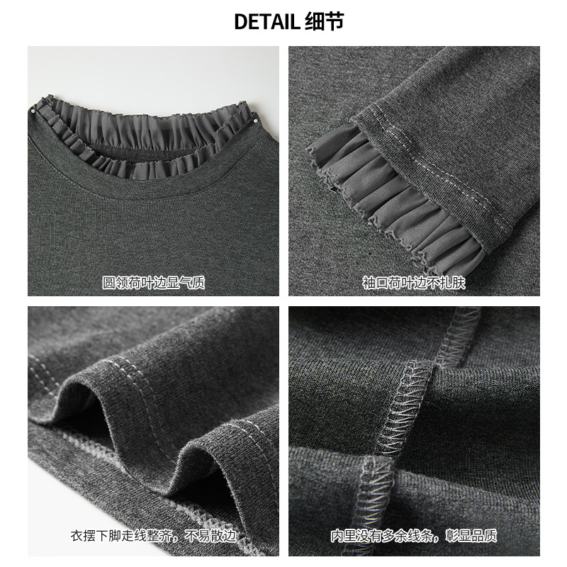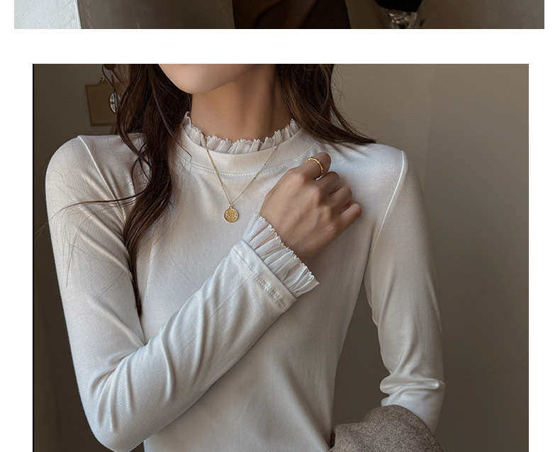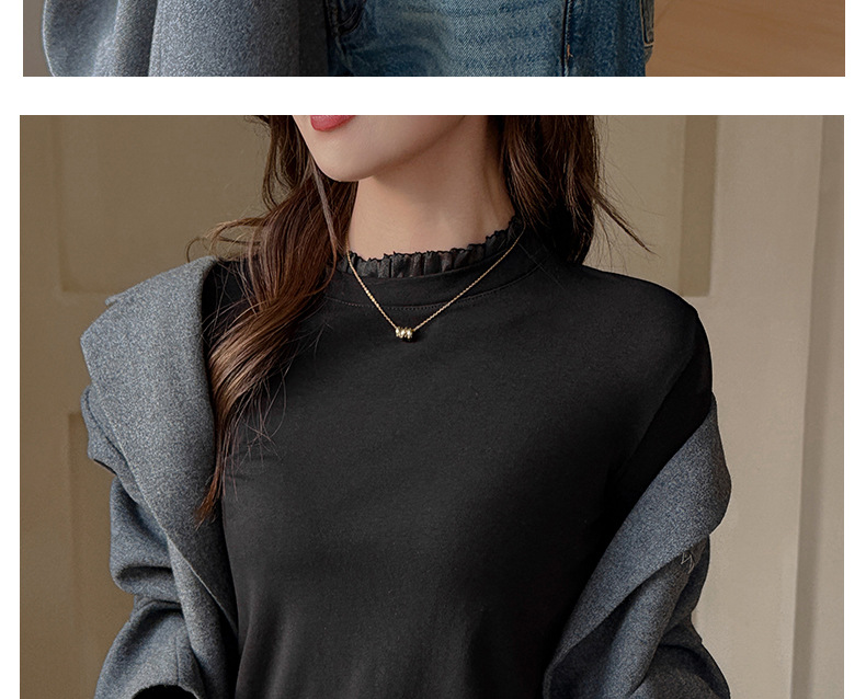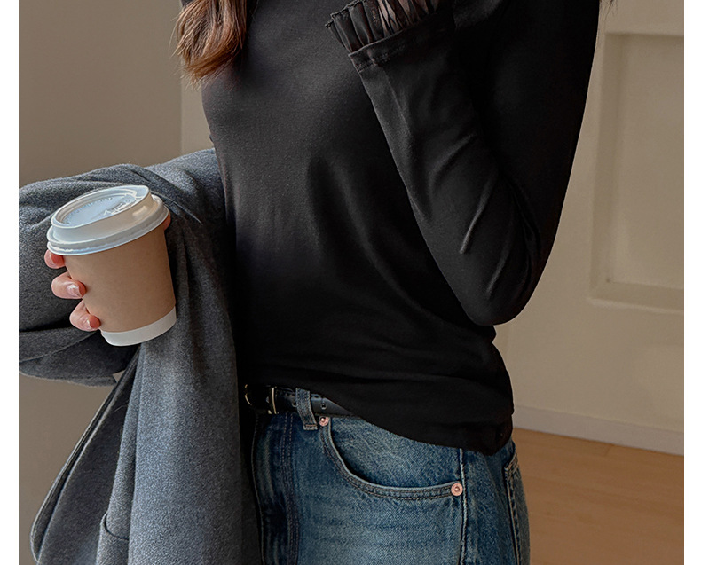 W新款莫代尔女士打底衫秋冬韩系简约小立领花边袖设计感内搭上衣