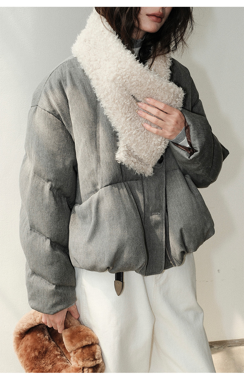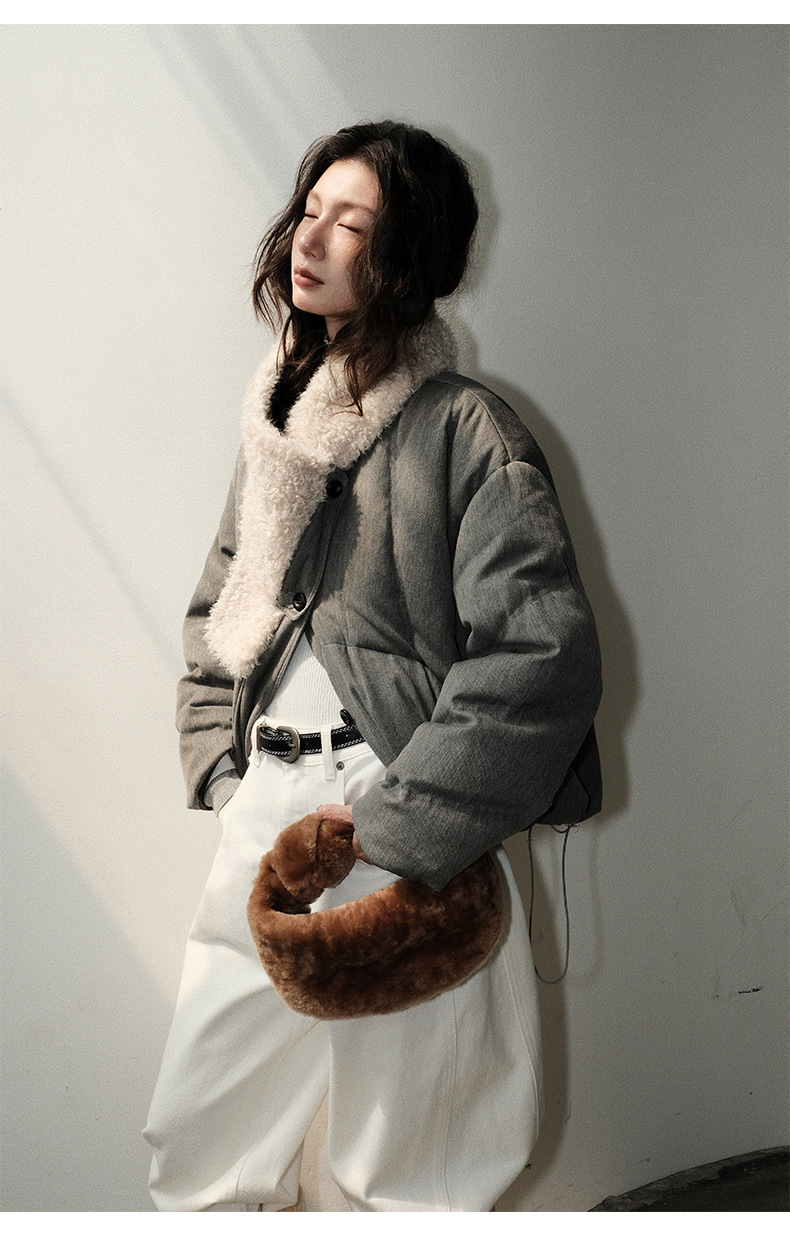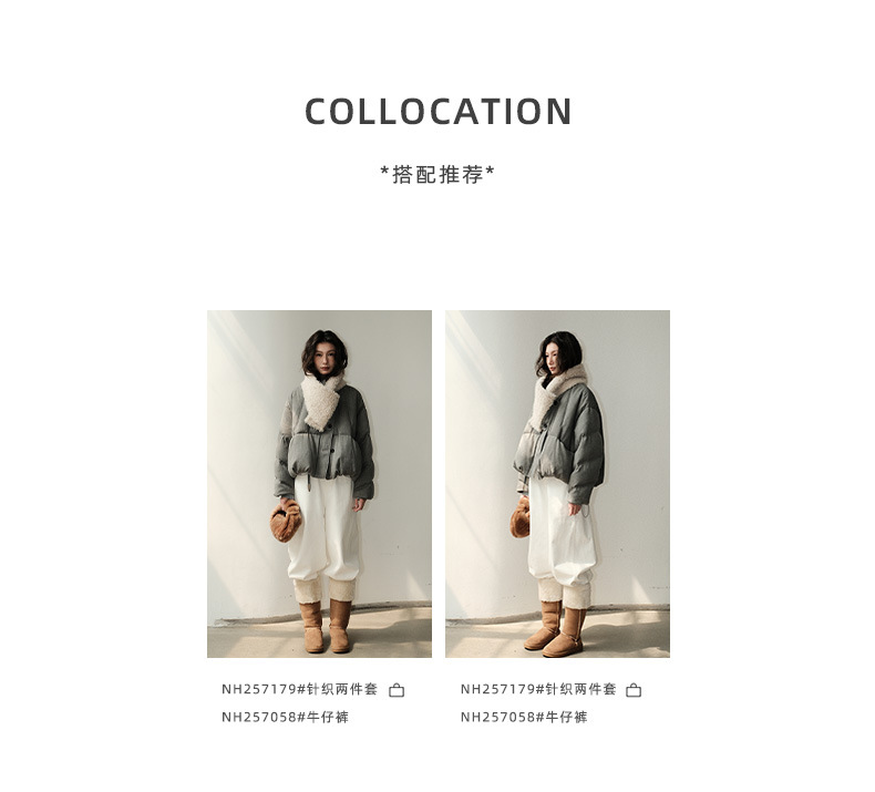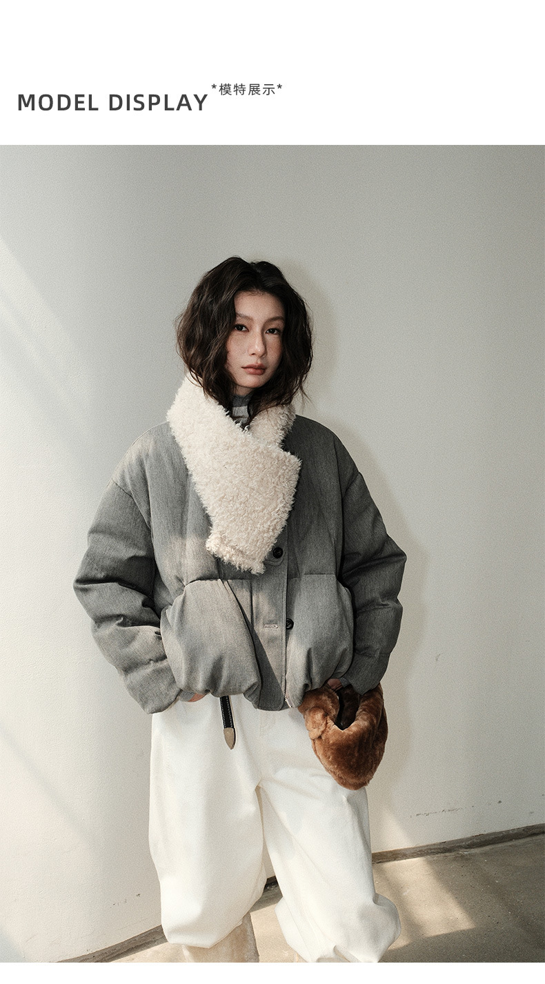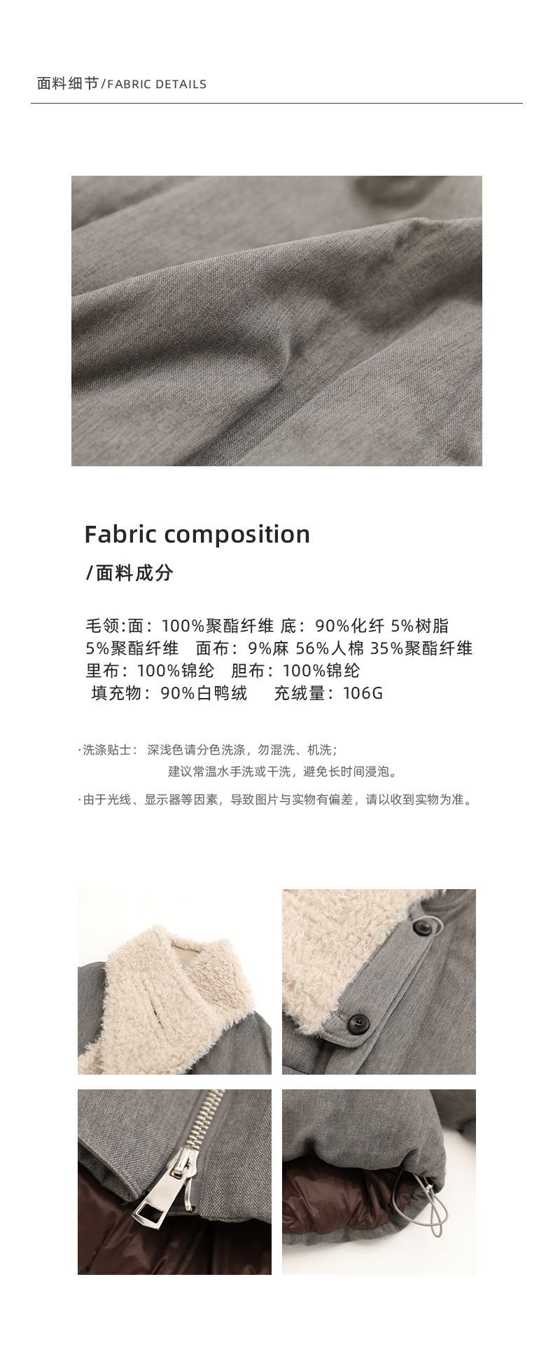 NEIHE内赫韩系麻感90白鸭绒短款廓形羽绒服外套女冬季新款257208