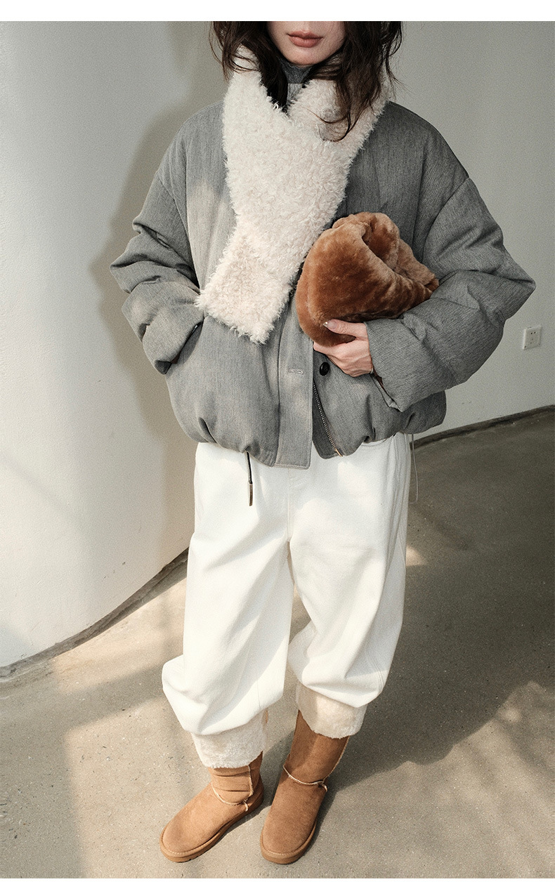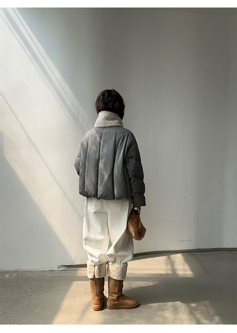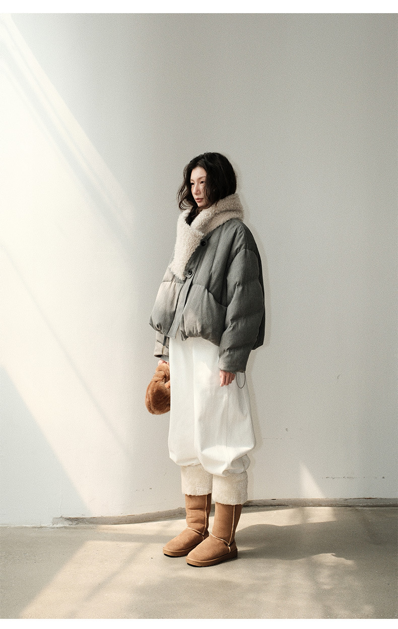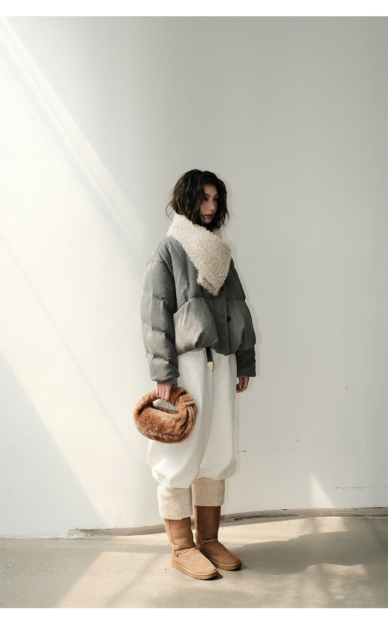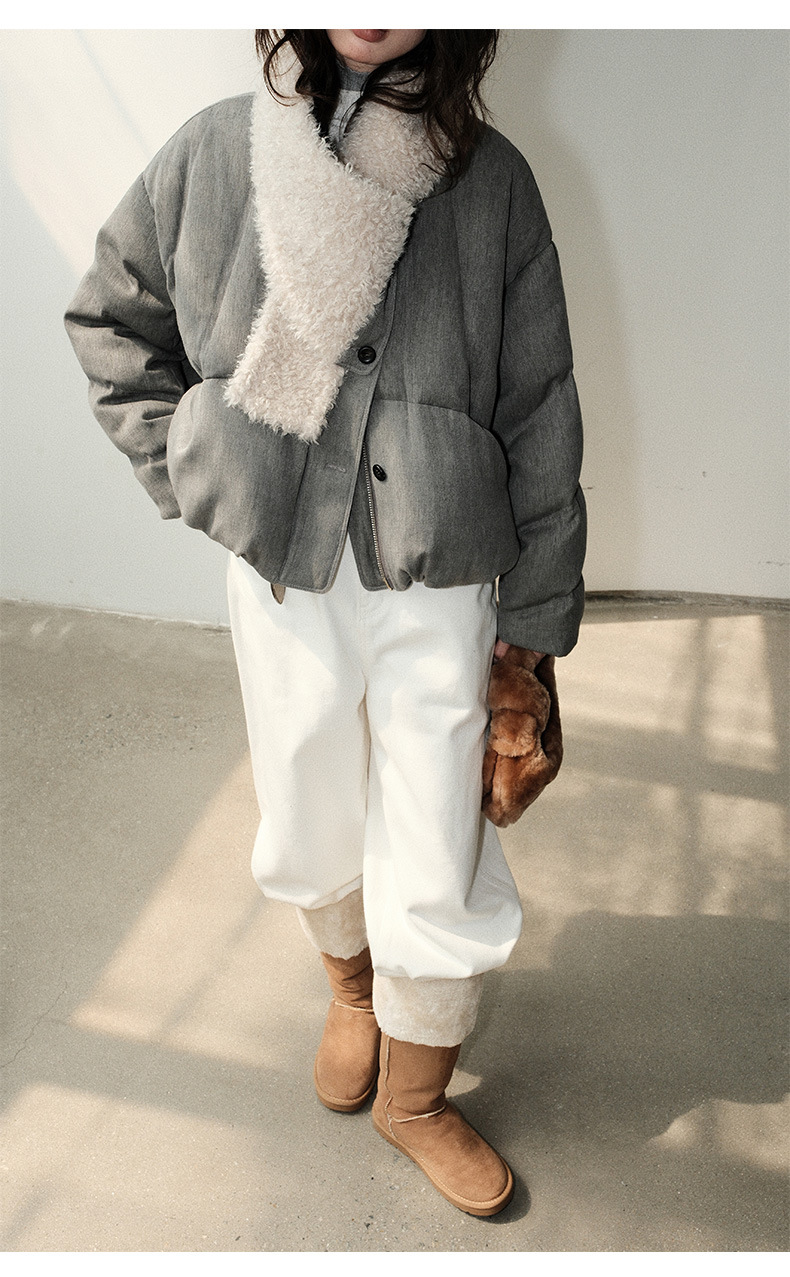 NEIHE内赫韩系麻感90白鸭绒短款廓形羽绒服外套女冬季新款257208