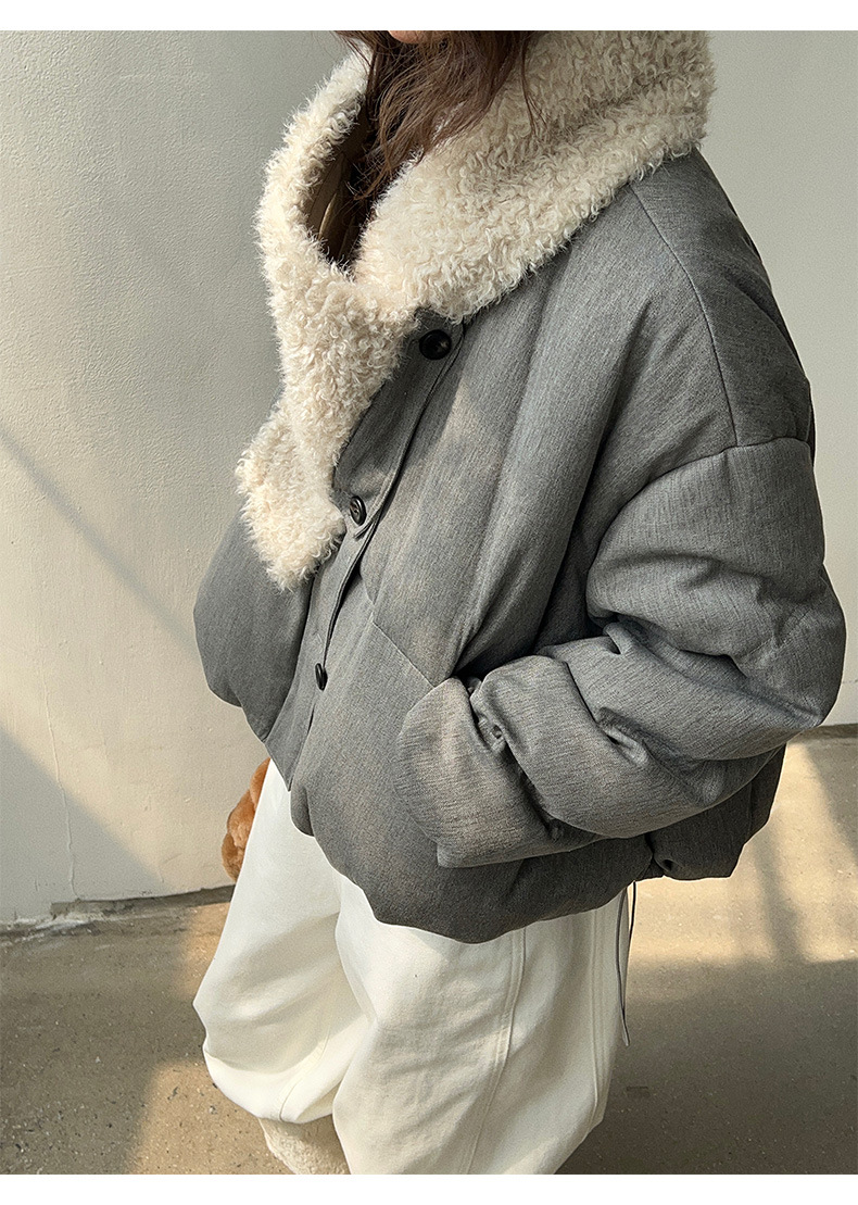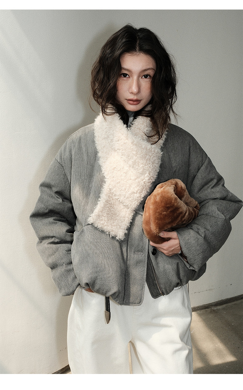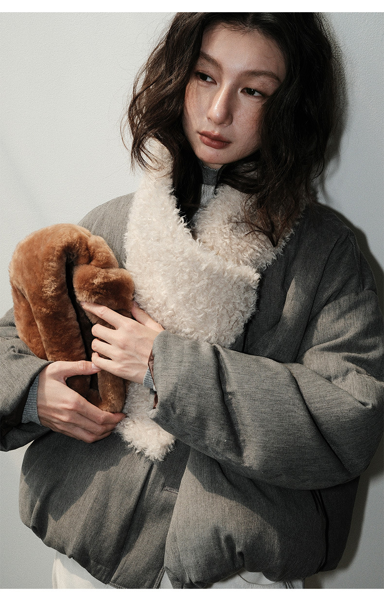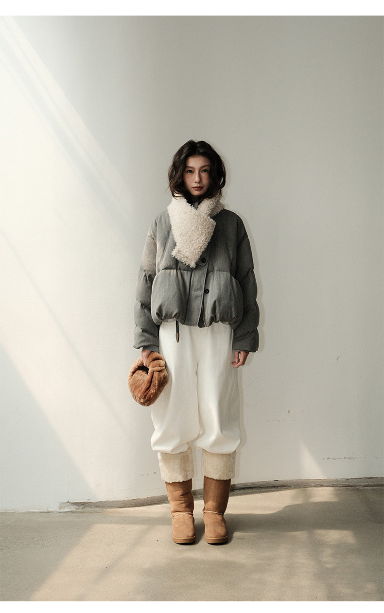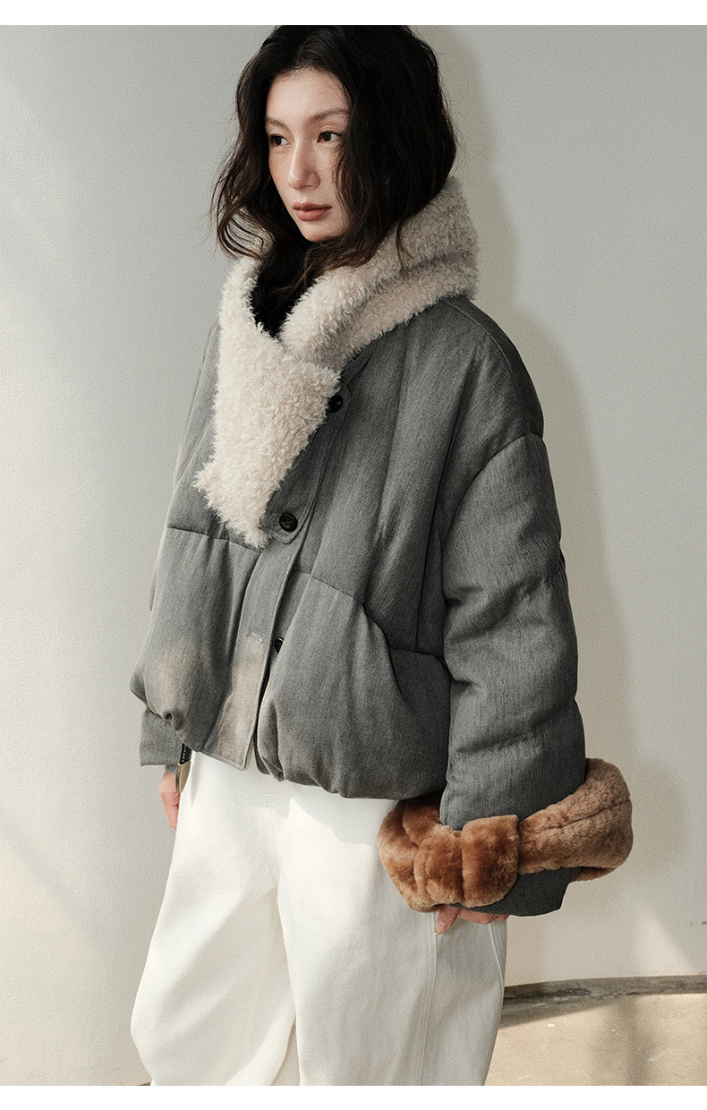 NEIHE内赫韩系麻感90白鸭绒短款廓形羽绒服外套女冬季新款257208