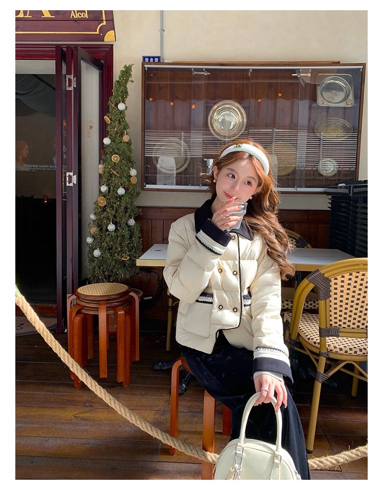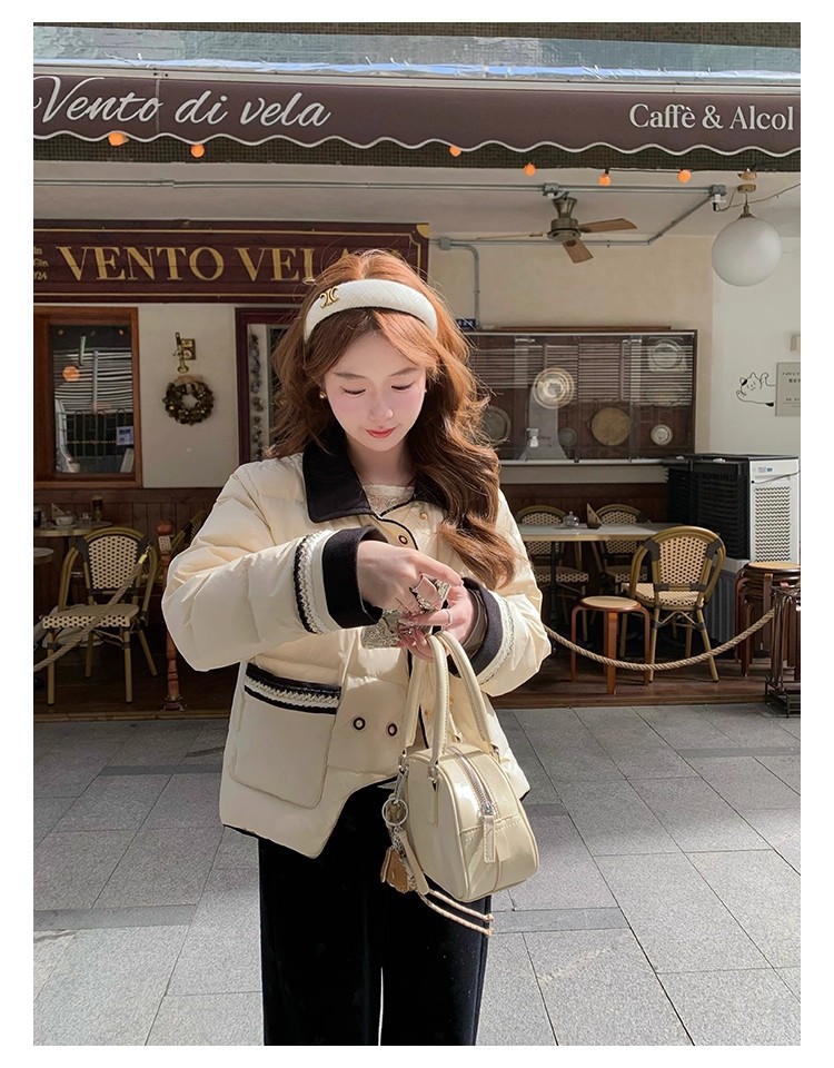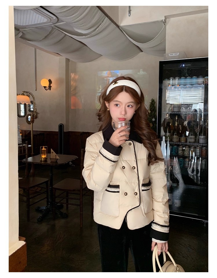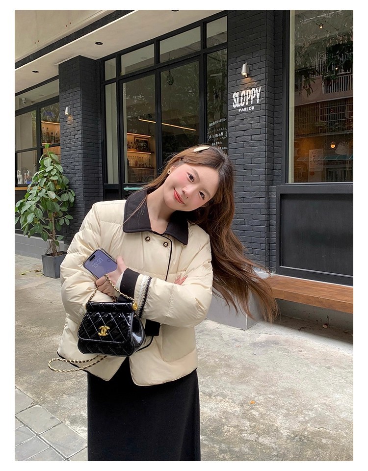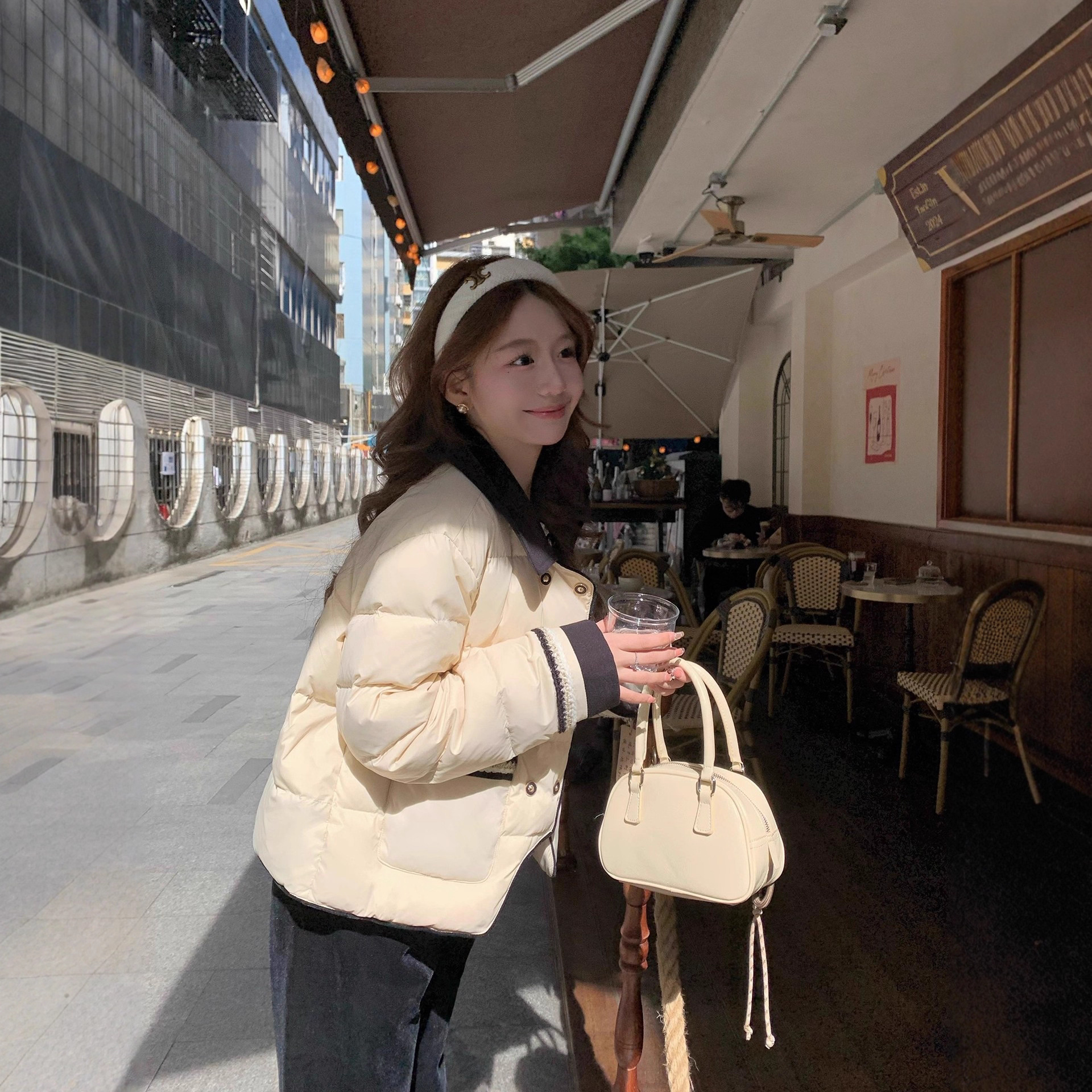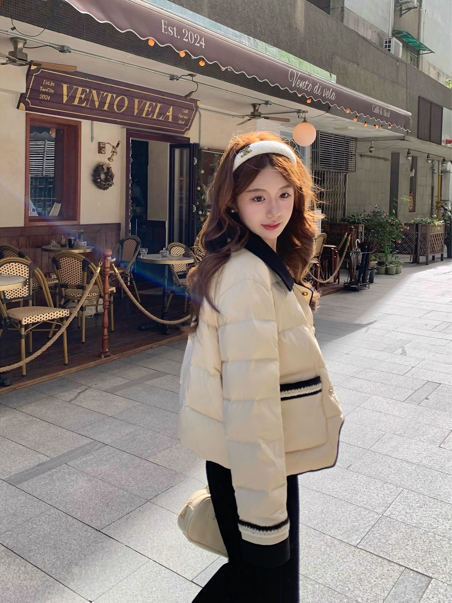 2025小个子秋冬季上衣女新款短外套杏色法式小香风撞色面包服百搭