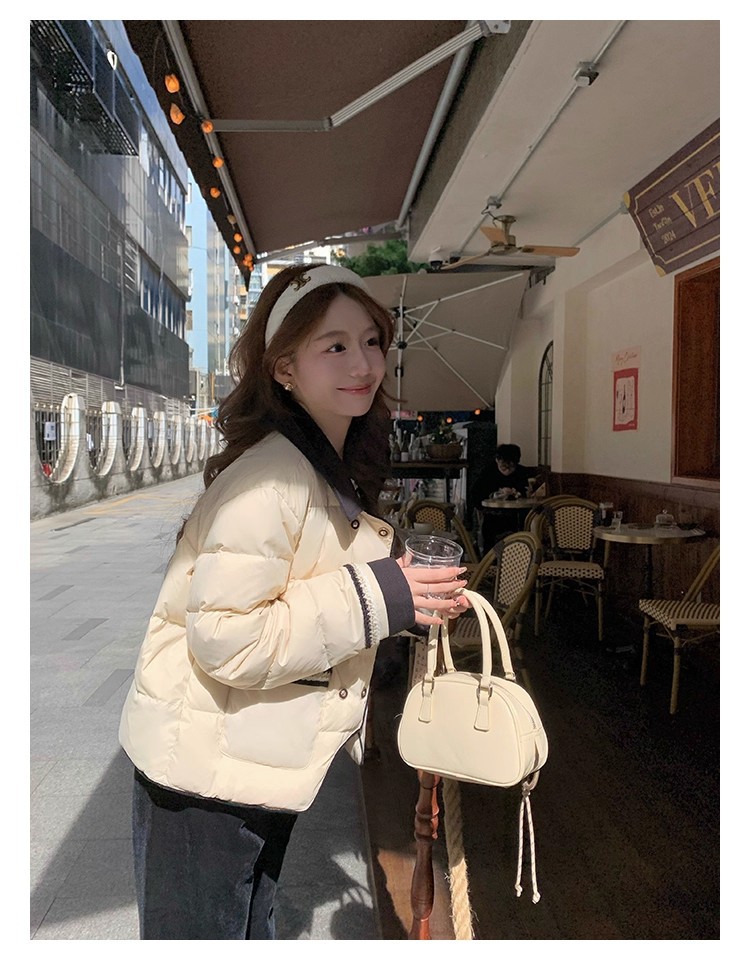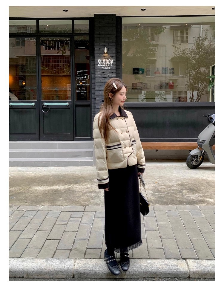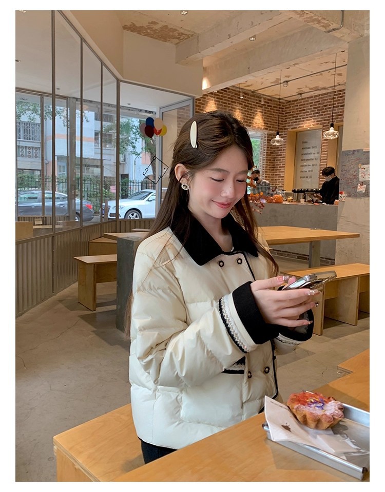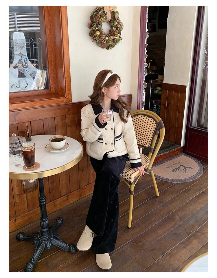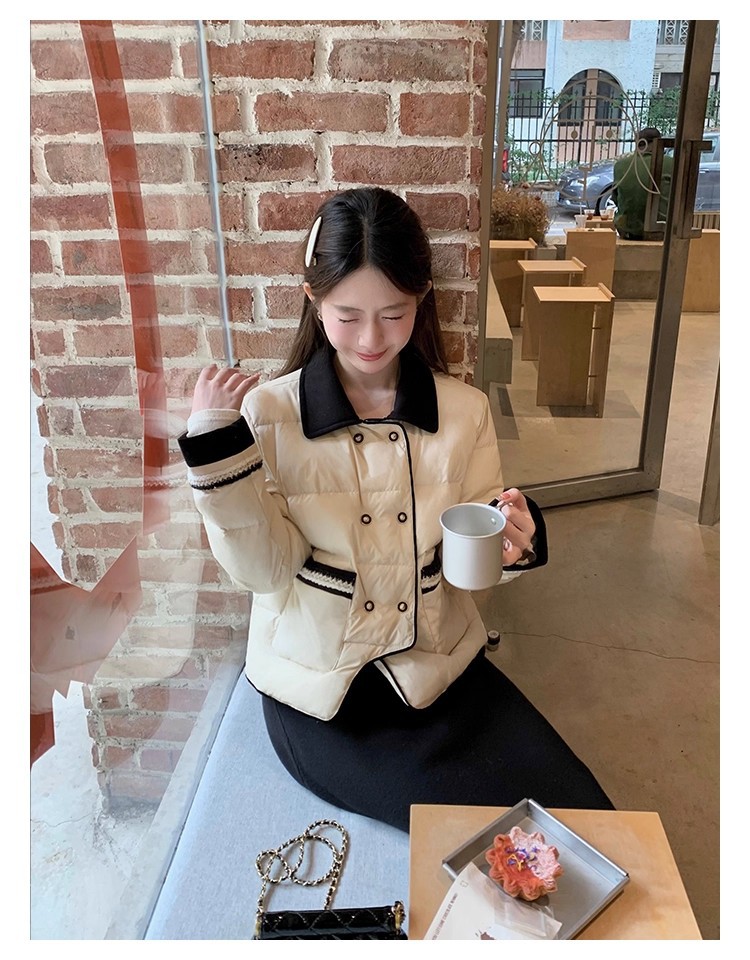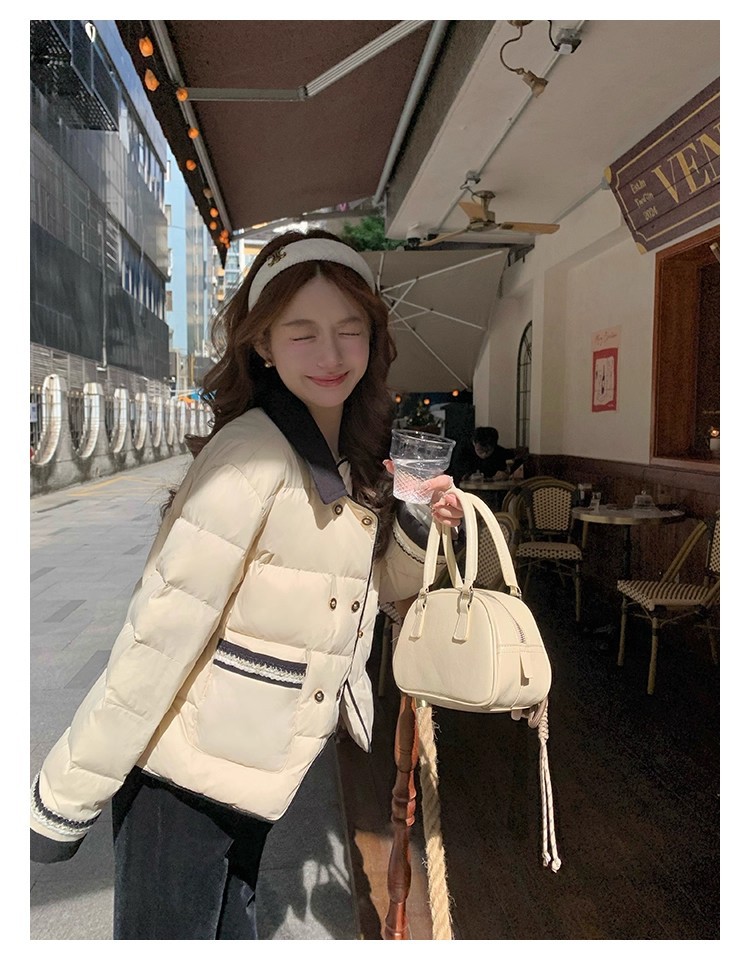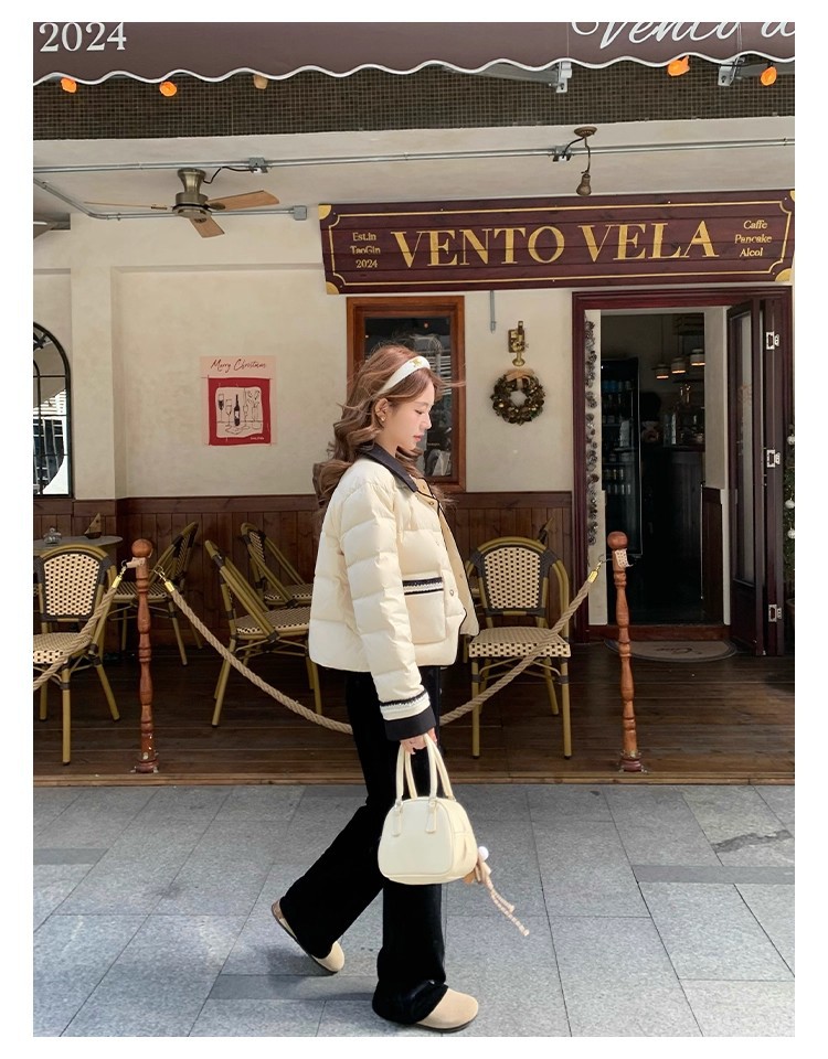 2025小个子秋冬季上衣女新款短外套杏色法式小香风撞色面包服百搭