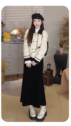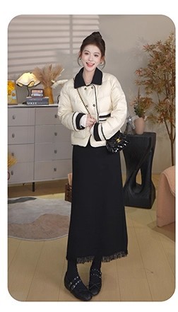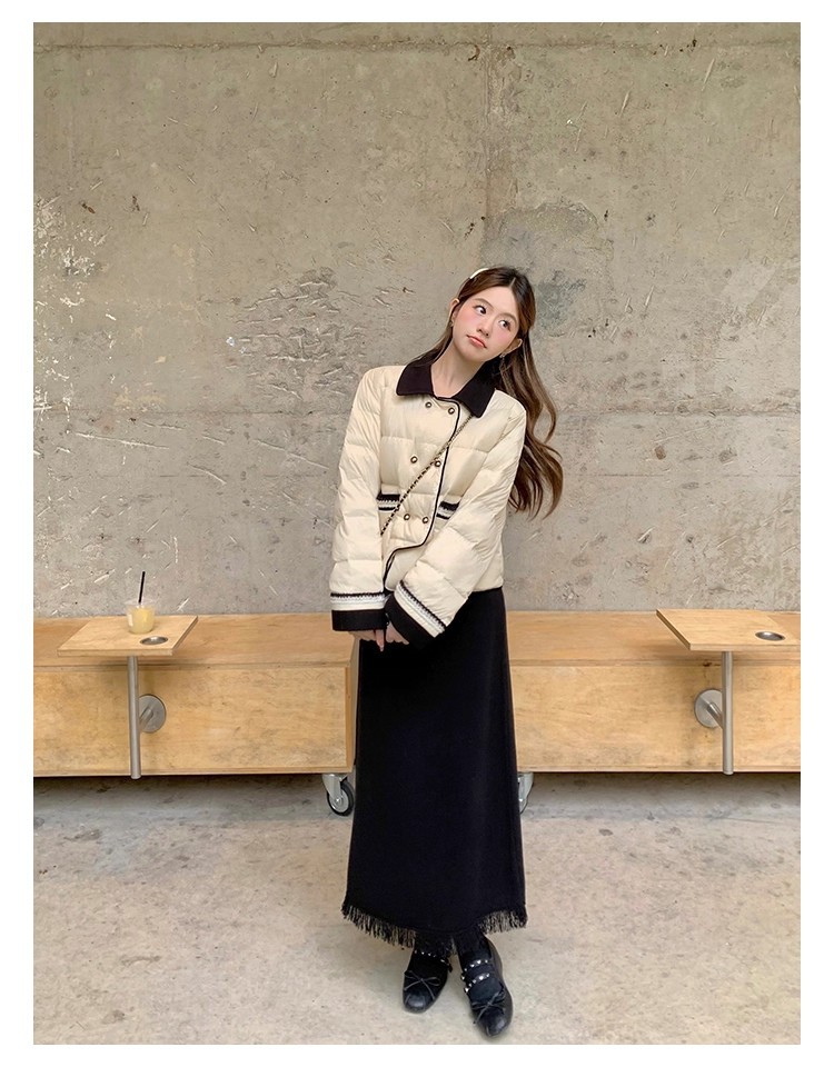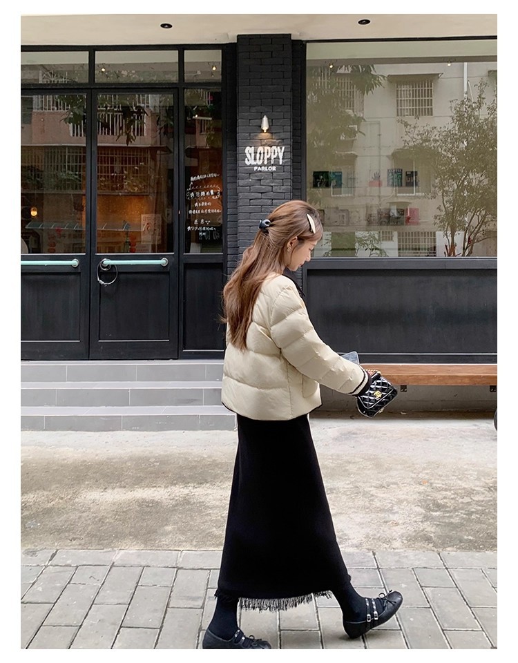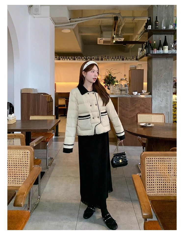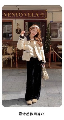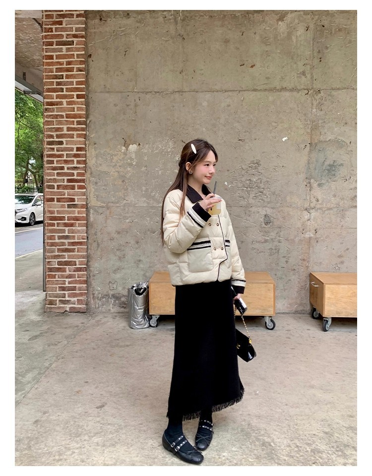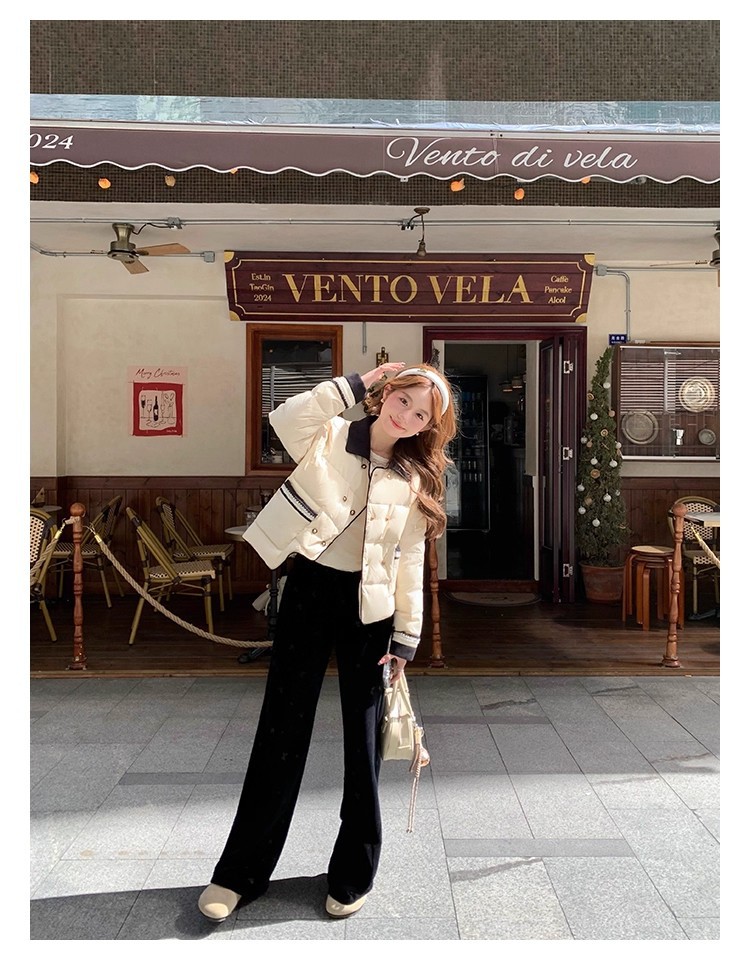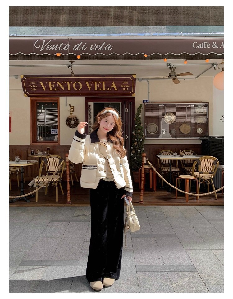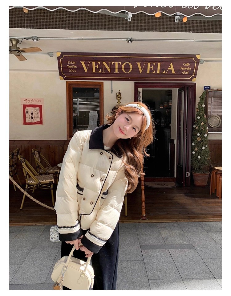 2025小个子秋冬季上衣女新款短外套杏色法式小香风撞色面包服百搭