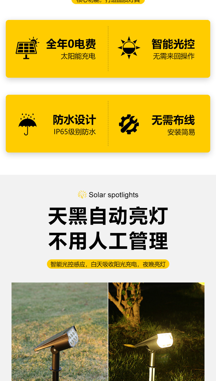 太阳能照树灯户外两用射灯景观庭院草坪灯超亮防水花园别墅照明灯