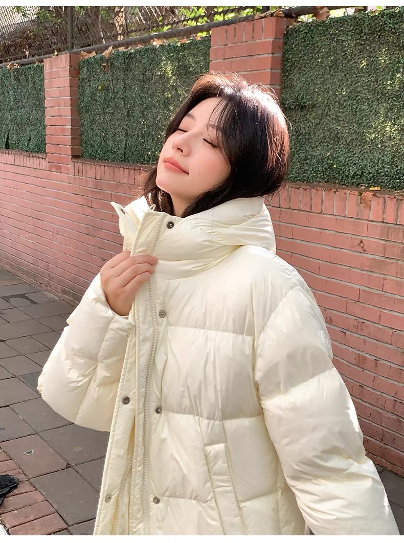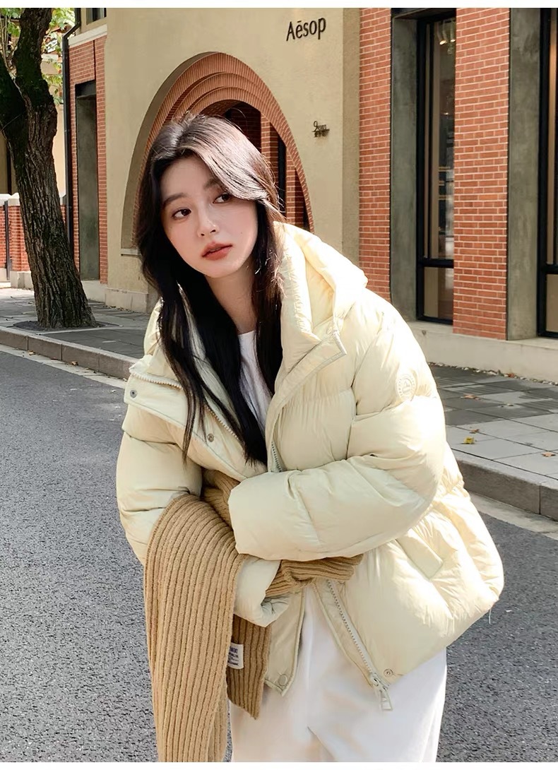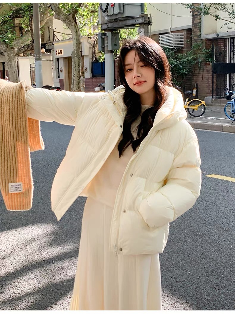 奶米色女装短款羽绒服女冬季新款2025小个子韩版宽松90白鸭绒外套