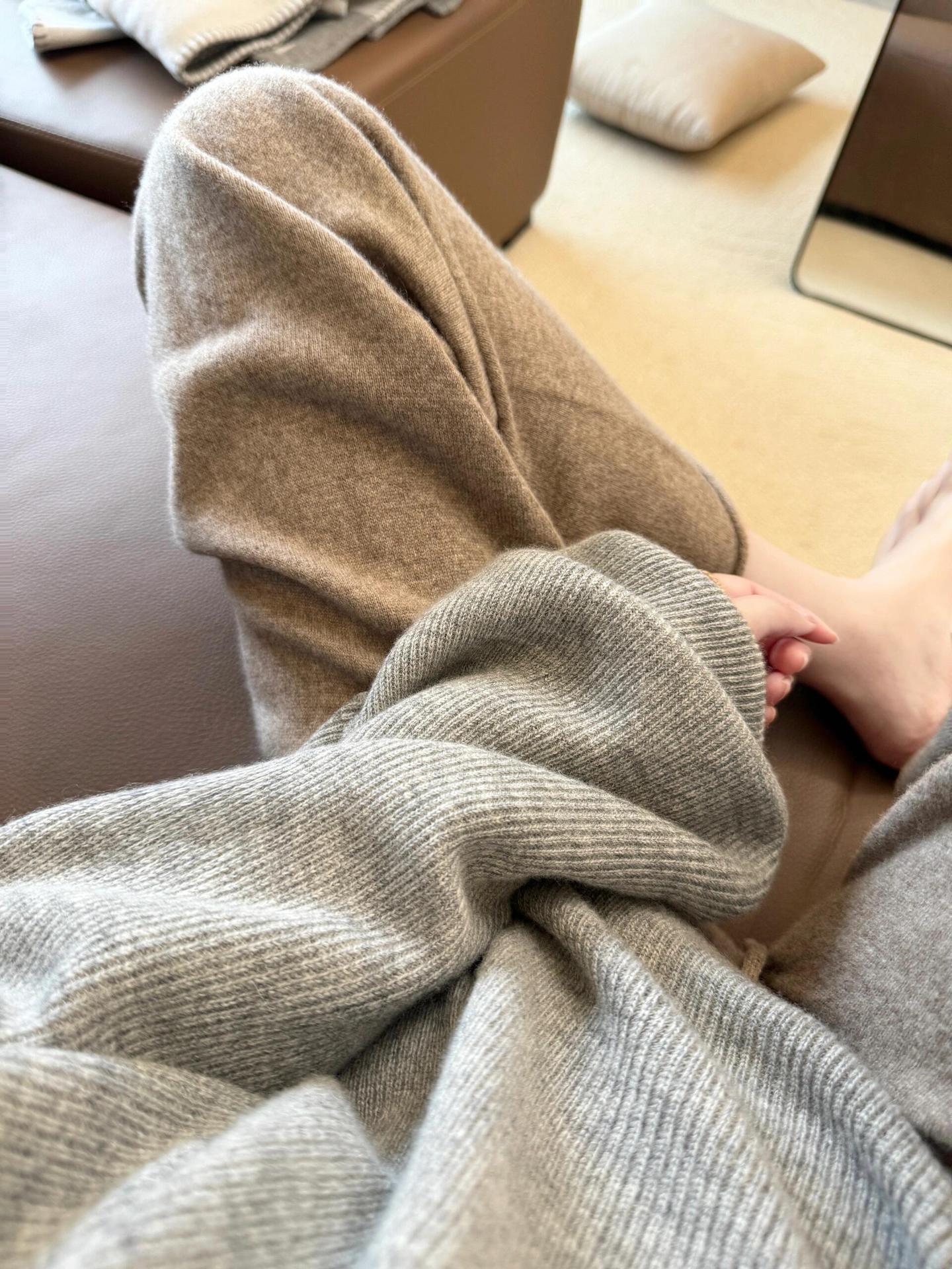 老板娘推荐~巨保暖 高腰显瘦针织阔腿裤女秋冬新款休闲直筒裤子
