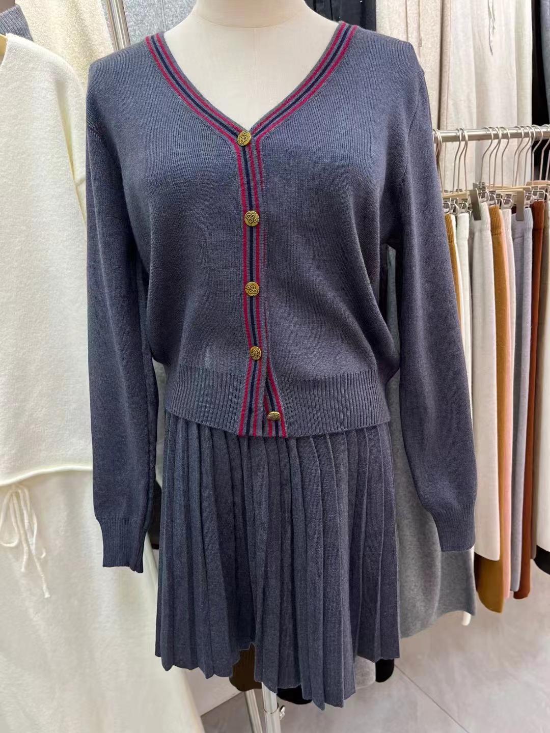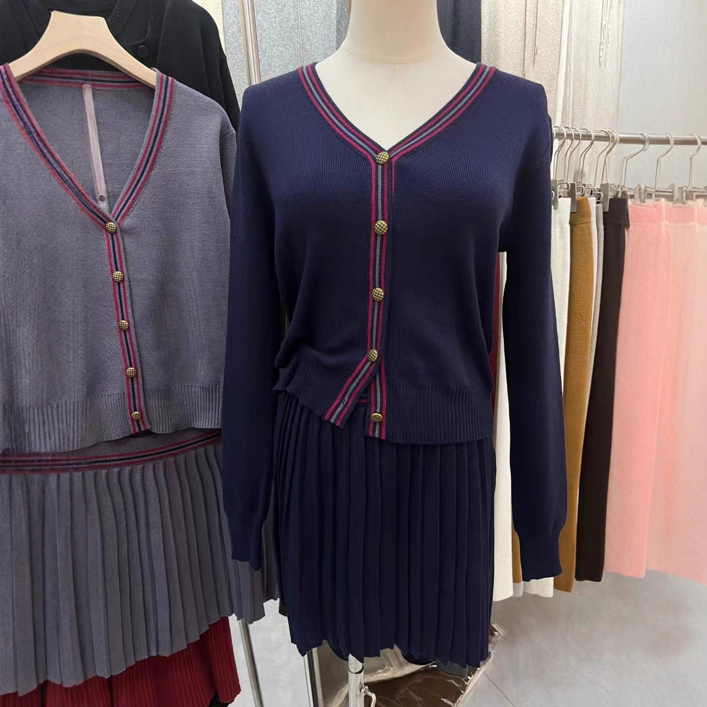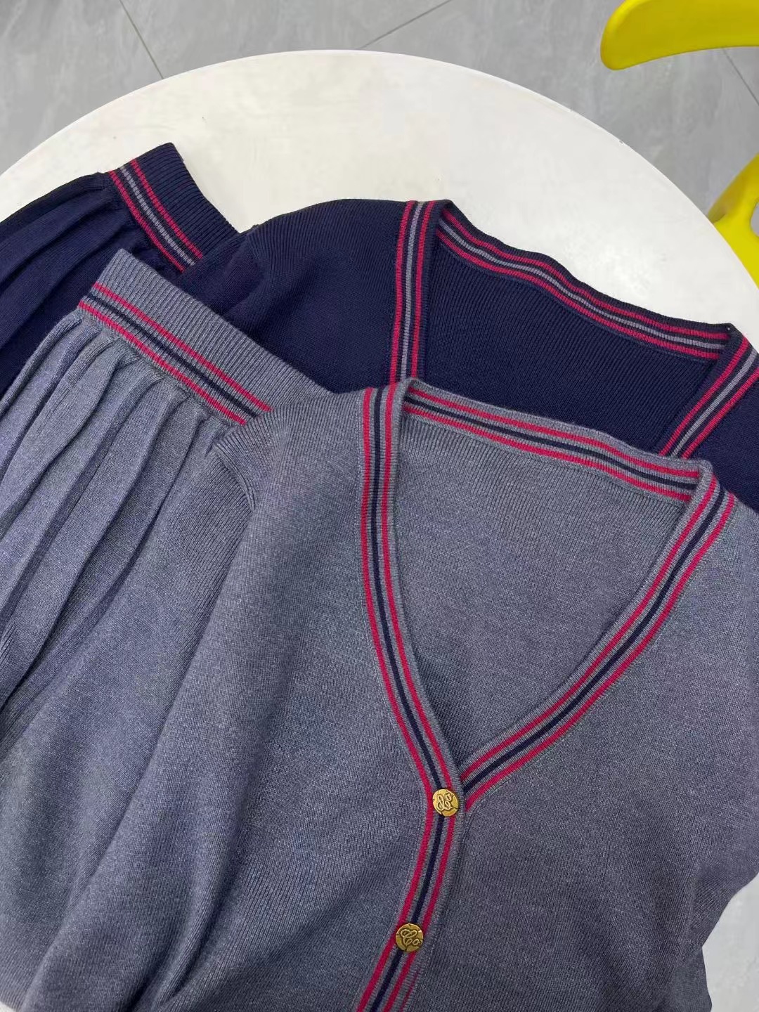 时尚休闲套装女2025新款秋季百搭背心连衣裙女+针织外套女两件套