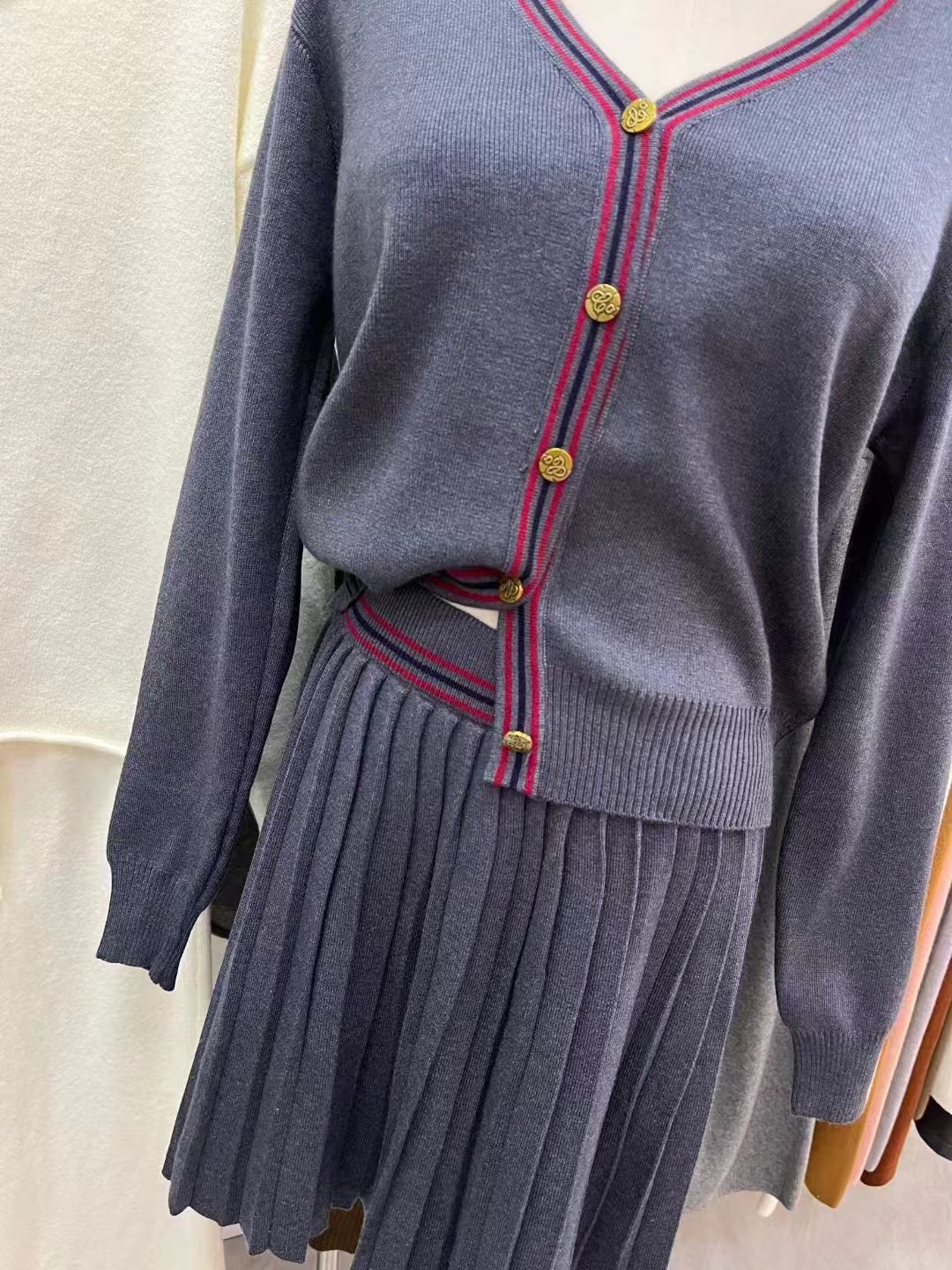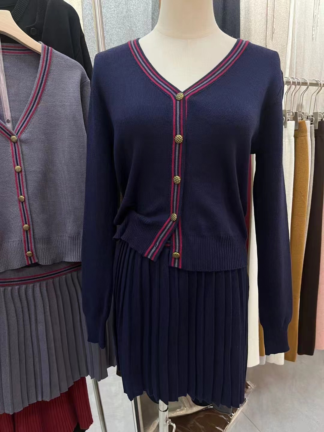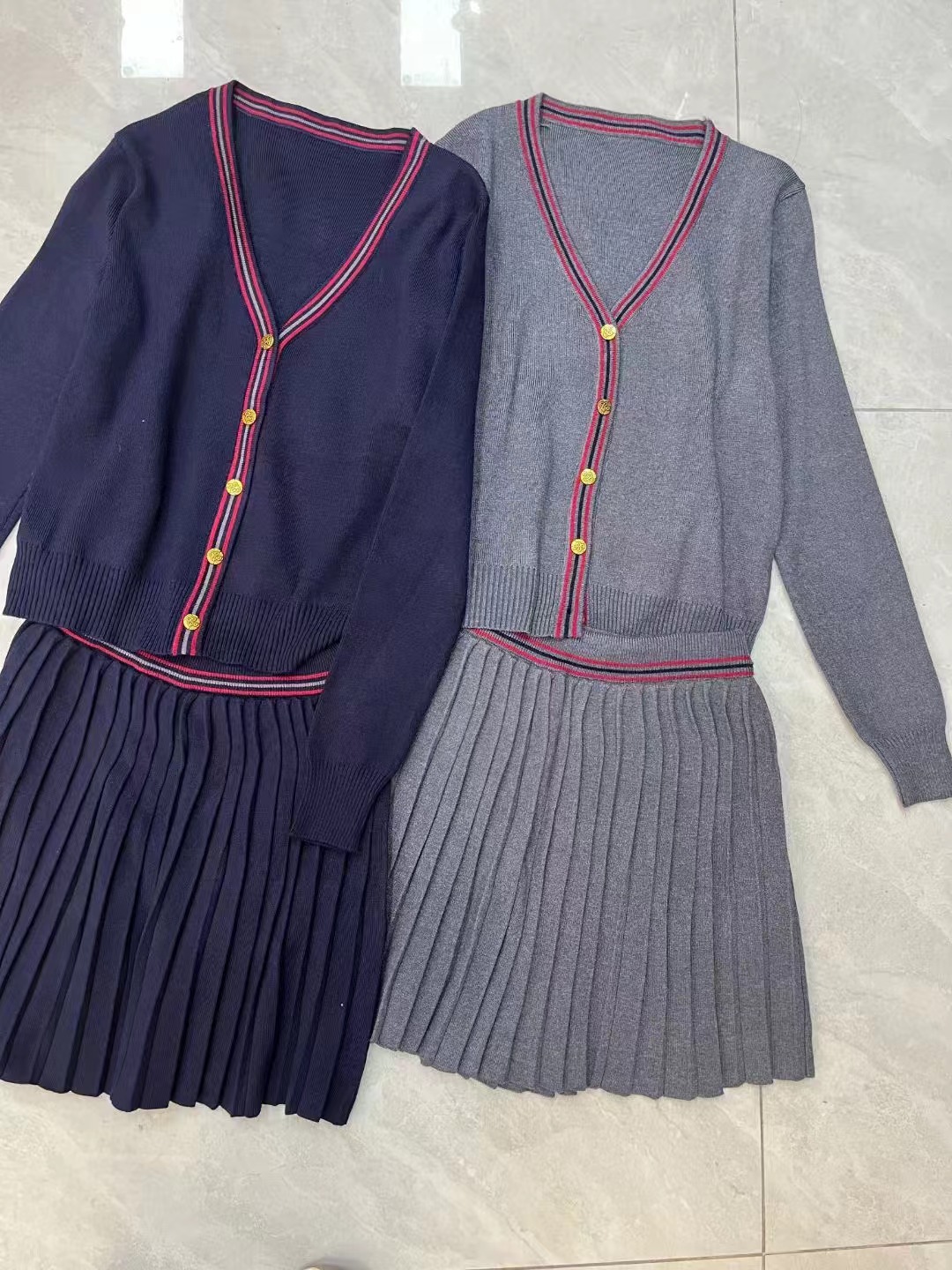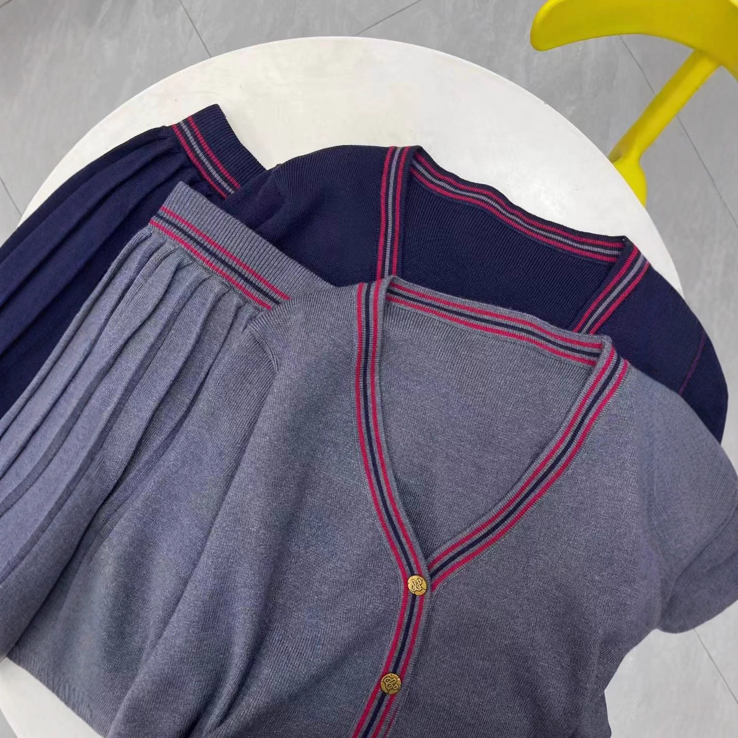 时尚休闲套装女2025新款秋季百搭背心连衣裙女+针织外套女两件套