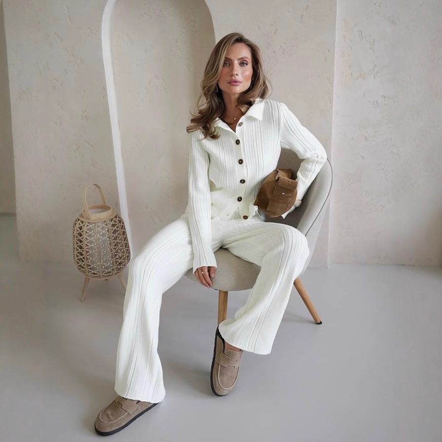 职场通勤单排扣针织衫上衣女套装秋冬时尚高级感显瘦毛衣两件套女