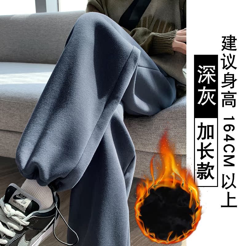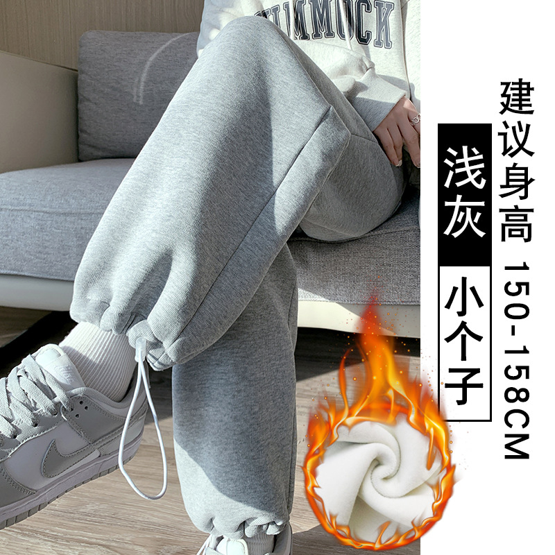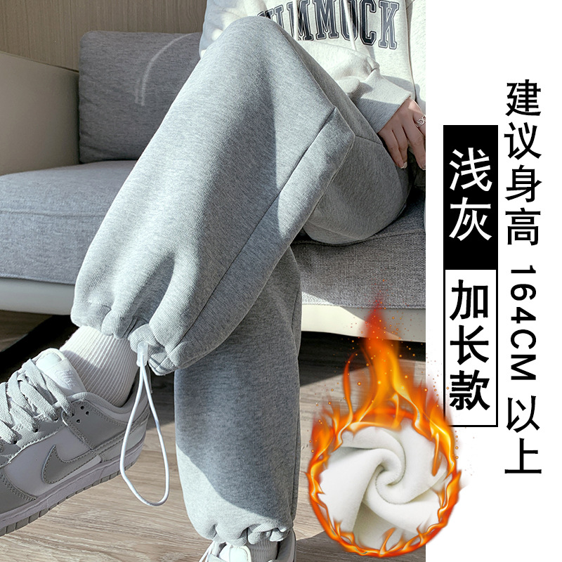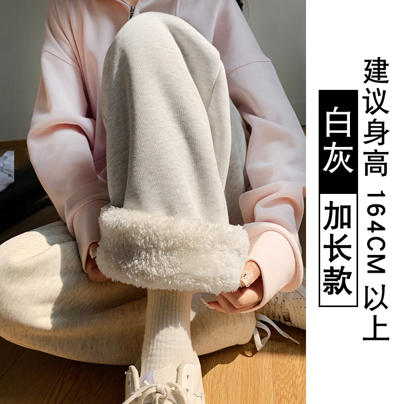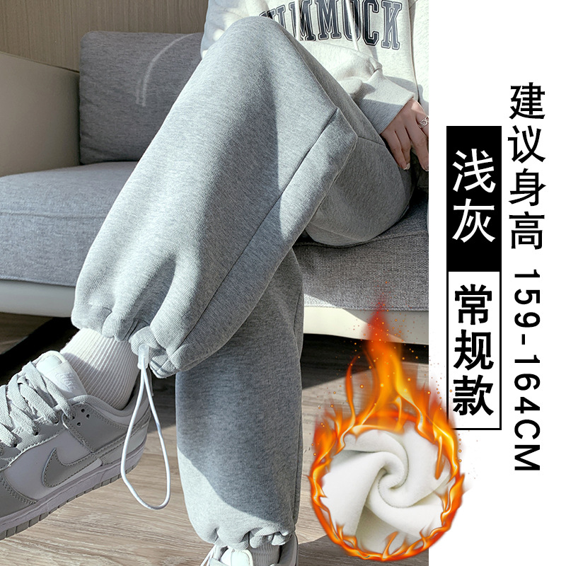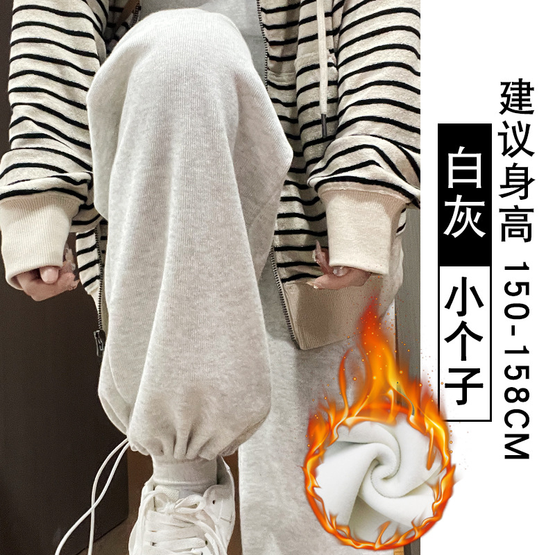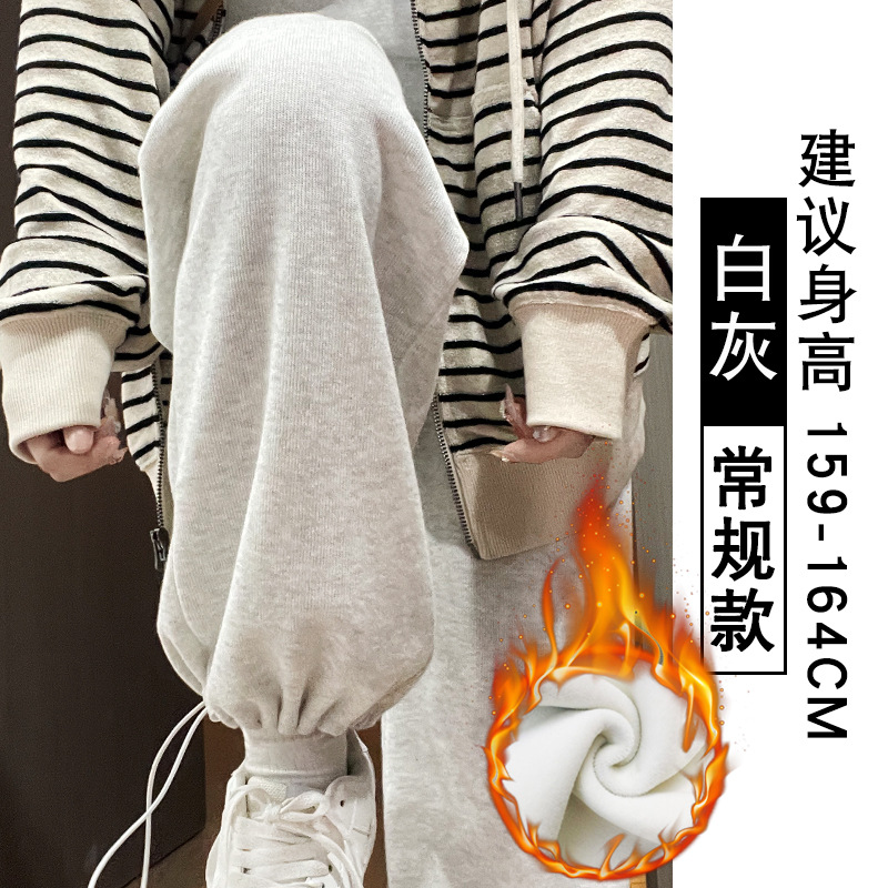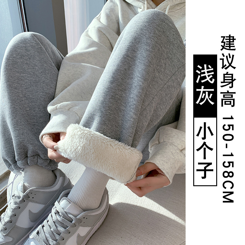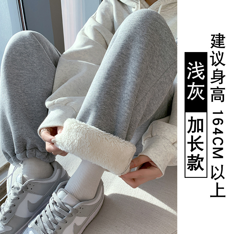 灰色羊羔绒运动裤女秋冬宽松束脚棉裤加绒加厚阔腿裤直筒休闲卫裤