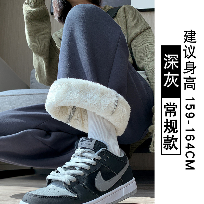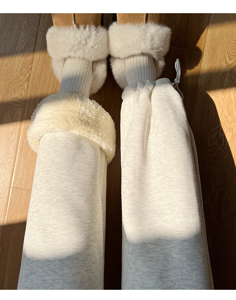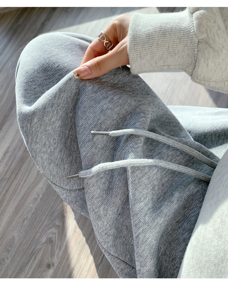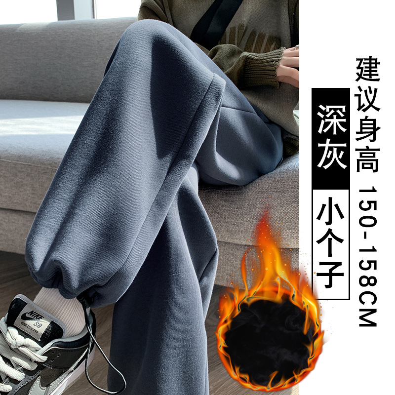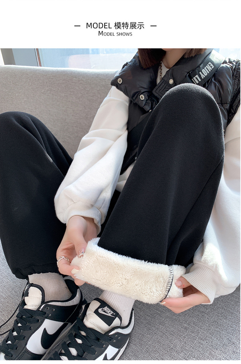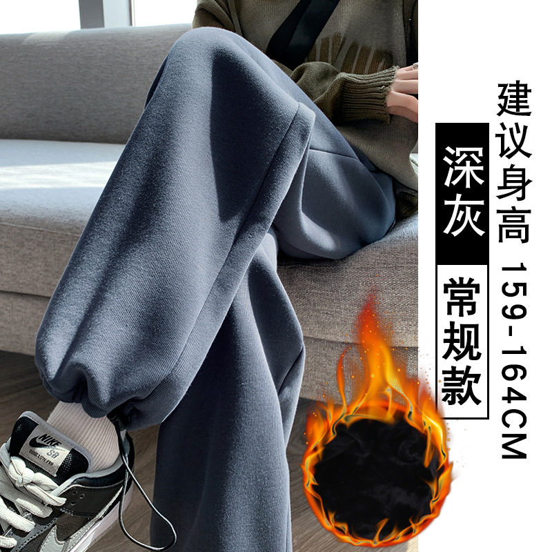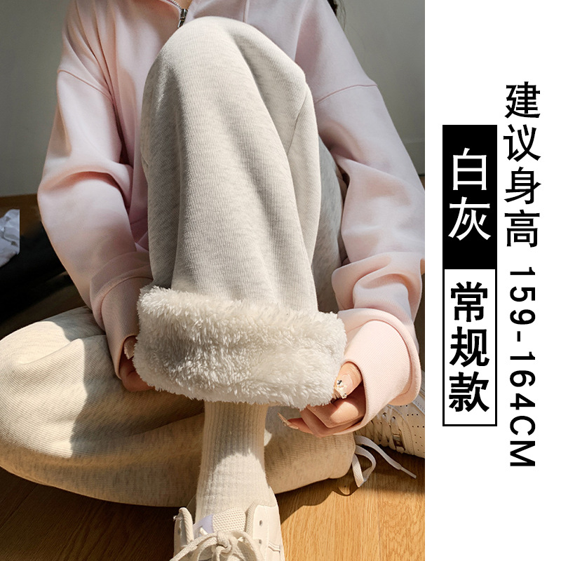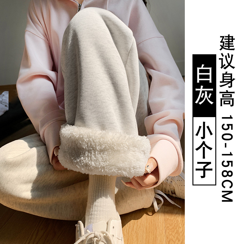 灰色羊羔绒运动裤女秋冬宽松束脚棉裤加绒加厚阔腿裤直筒休闲卫裤