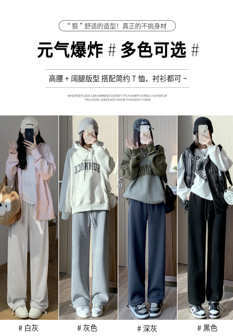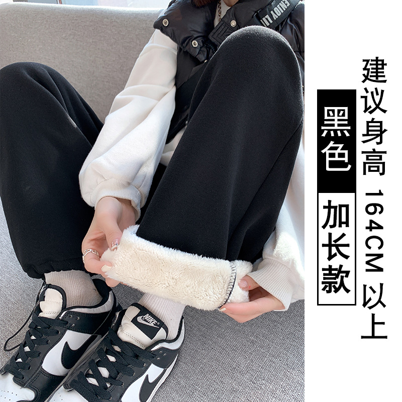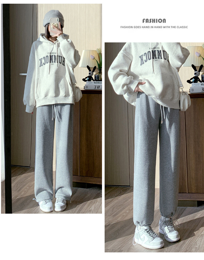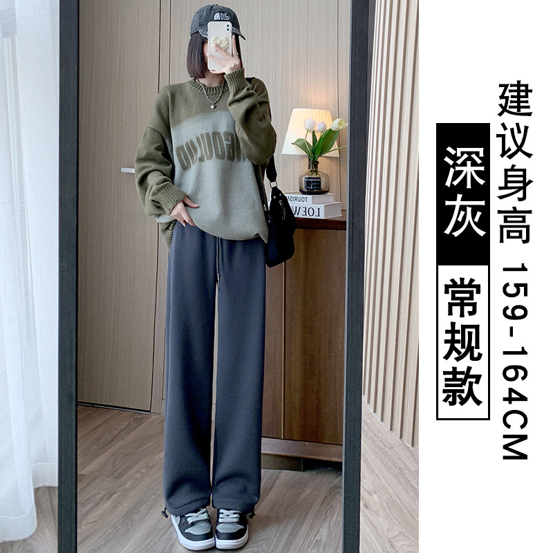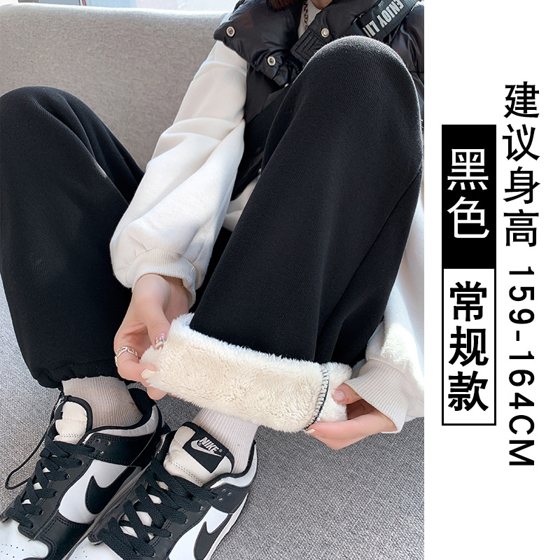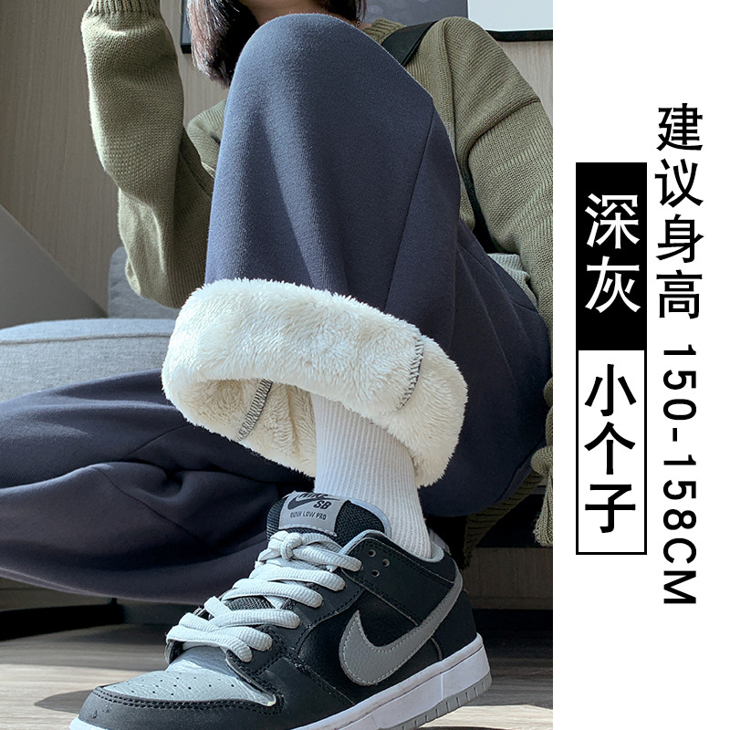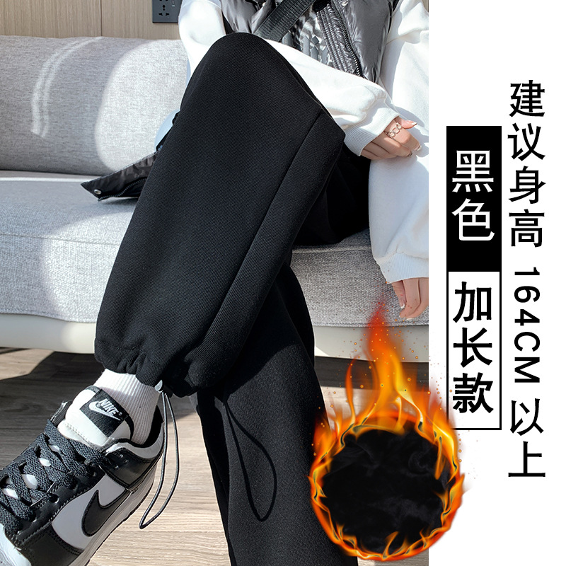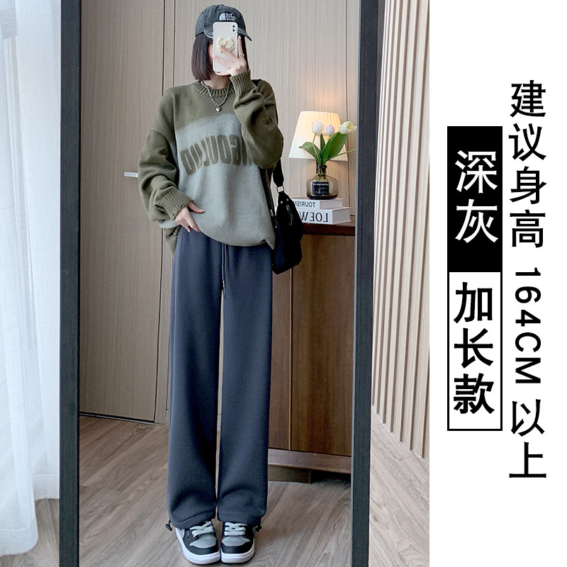 灰色羊羔绒运动裤女秋冬宽松束脚棉裤加绒加厚阔腿裤直筒休闲卫裤